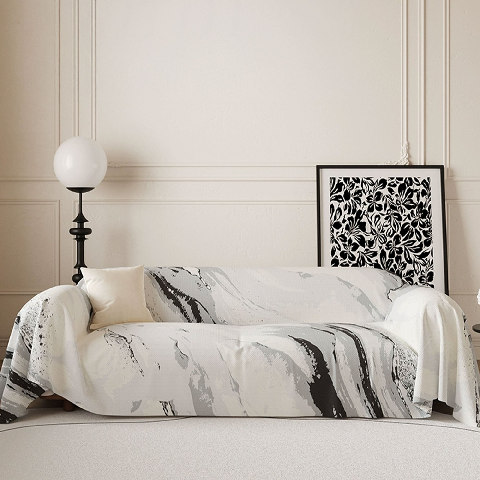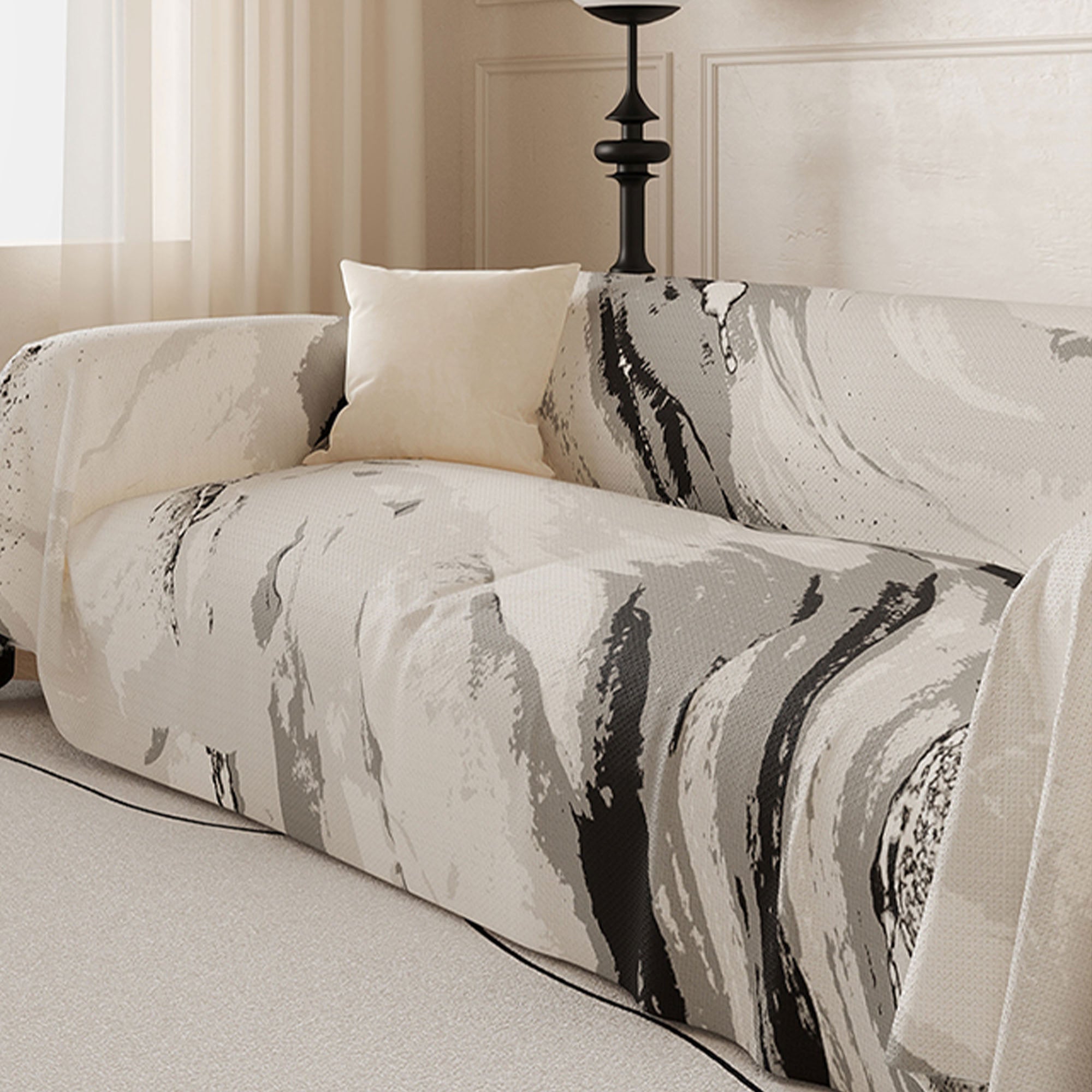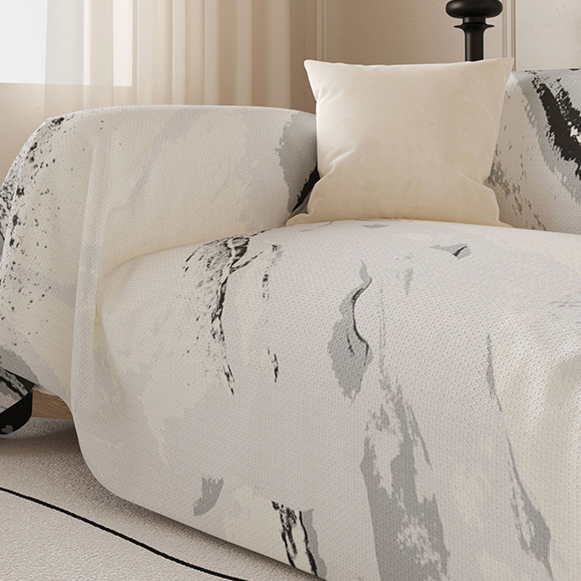 Förhöj ditt utrymme med konstnärlig lugn. Sofföverdraget Marble Drift Linen har ett svepande marmorinspirerat mönster som flyter obehindrat över dina möbler och blandar konst med funktionell design. Det är tillverkat av andningsbart linneimitationsmaterial och erbjuder en naturlig texturerad känsla samtidigt som det skyddar din soffa med modern elegans.