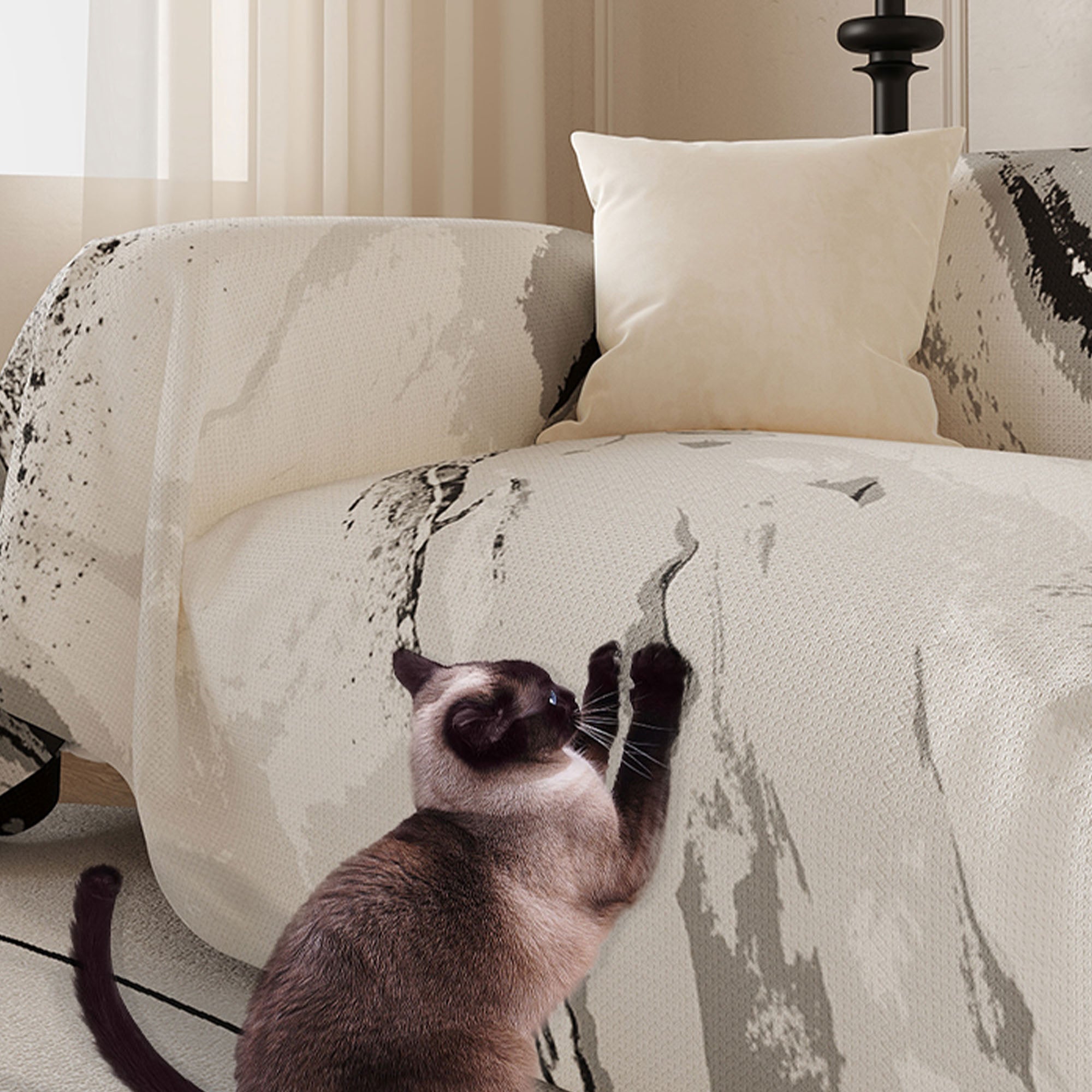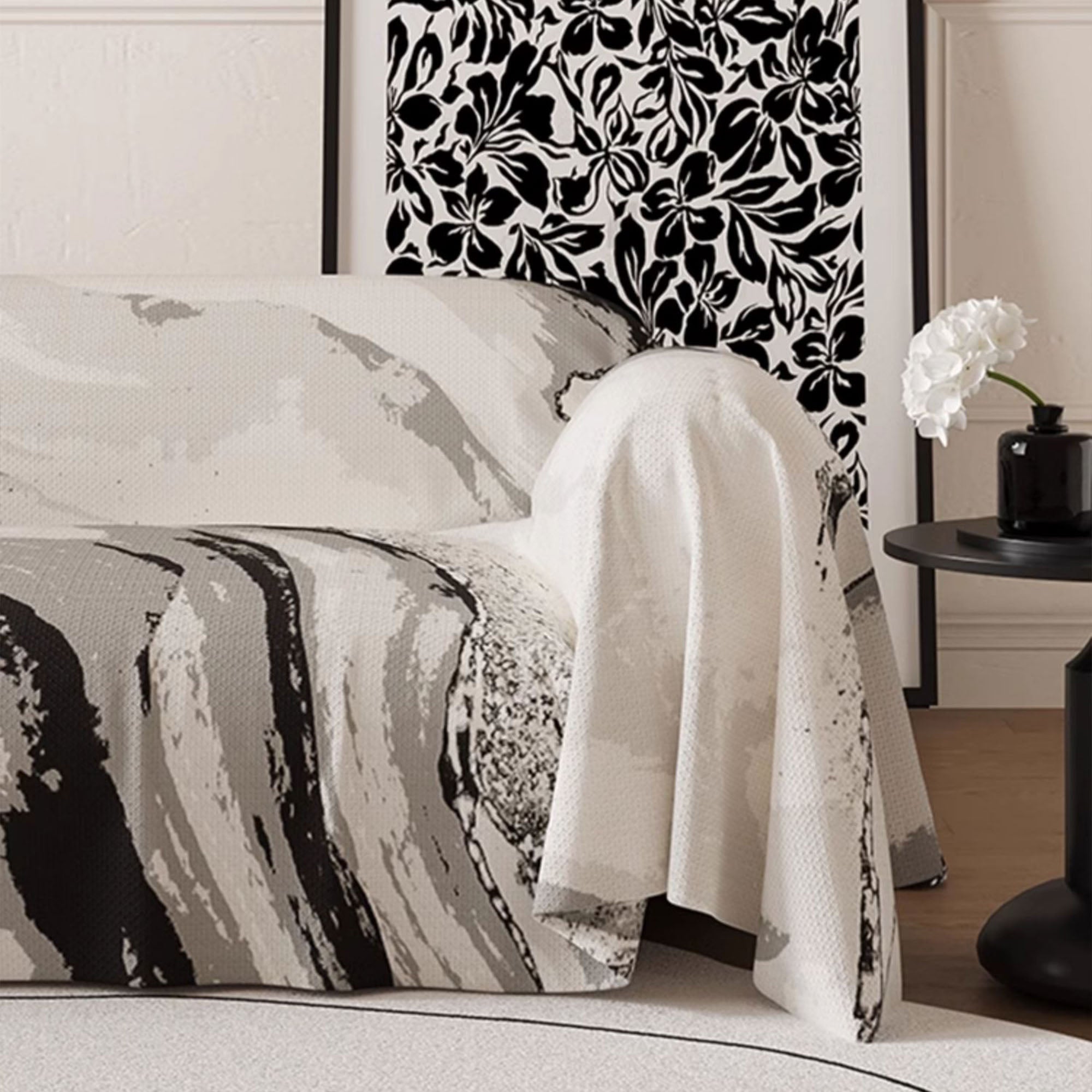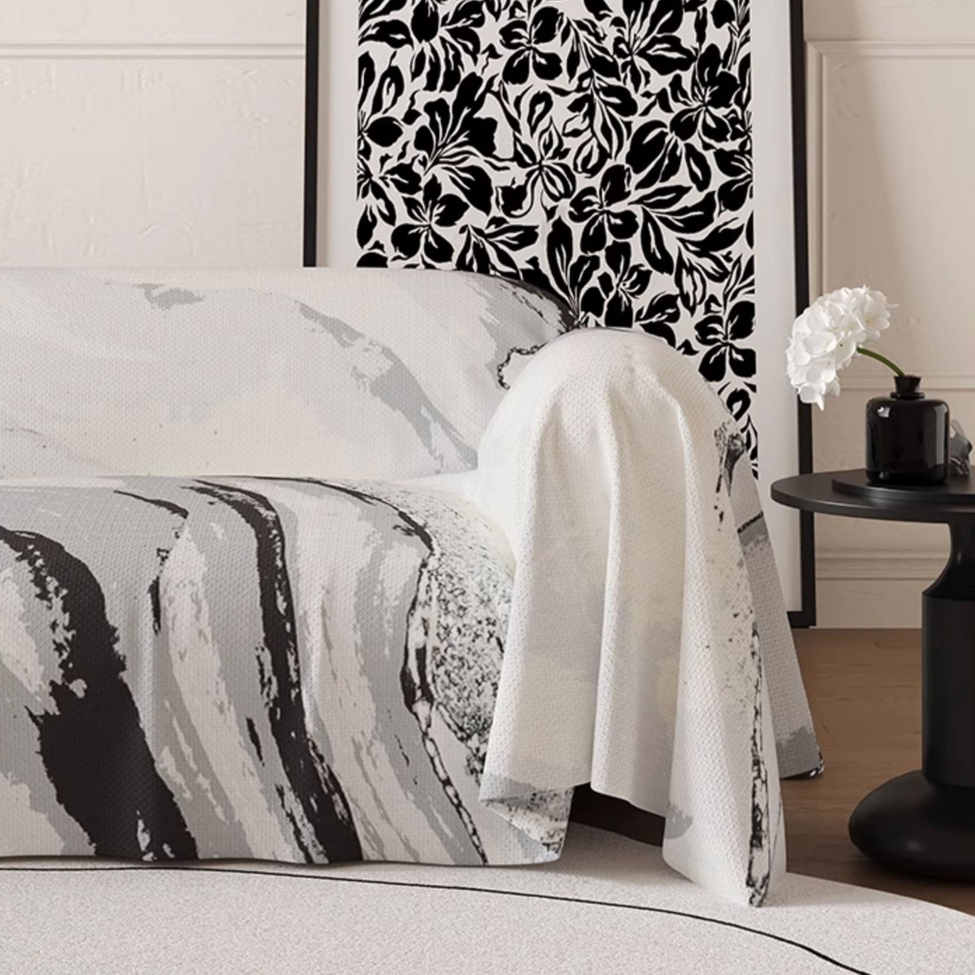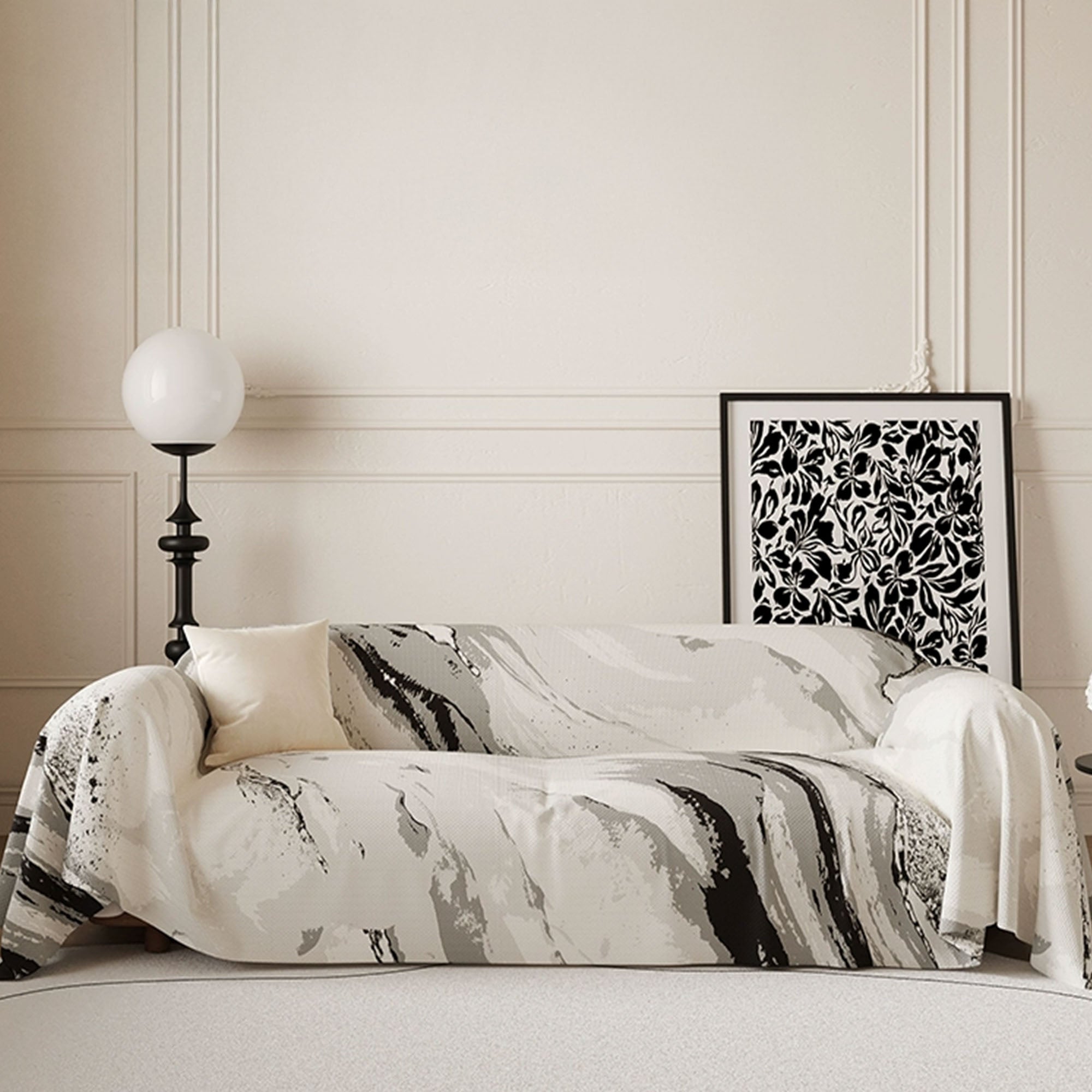 Förhöj ditt utrymme med konstnärlig lugn. Sofföverdraget Marble Drift Linen har ett svepande marmorinspirerat mönster som flyter obehindrat över dina möbler och blandar konst med funktionell design. Det är tillverkat av andningsbart linneimitationsmaterial och erbjuder en naturlig texturerad känsla samtidigt som det skyddar din soffa med modern elegans.