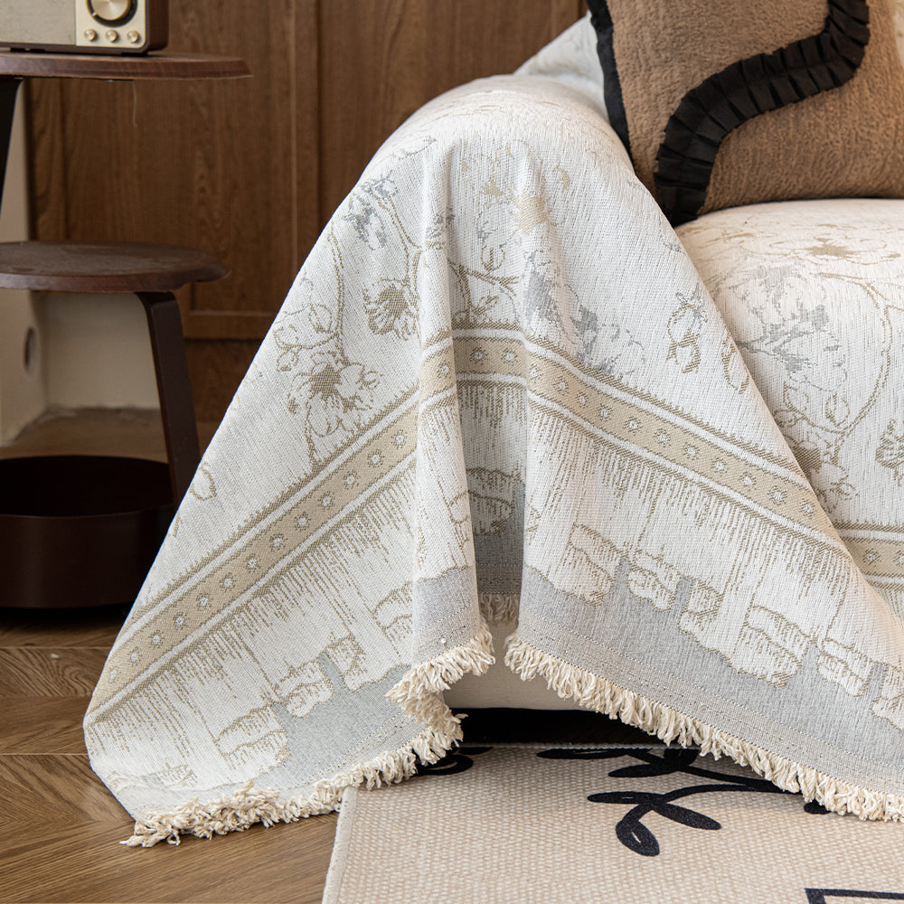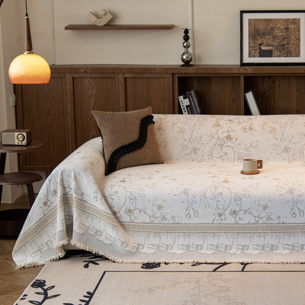 Ge ditt hem raffinerad elegans och mysig charm med vårt reptåliga sofföverdrag i Vintage Bloom Chenille. Designat med ett delikat blommigt retromönster ger detta överdrag en varm och tidlös estetik till alla bostadsutrymmen. Tillverkat av högkvalitativt chenilletyg erbjuder det en lyxigt mjuk känsla samtidigt som det ger ett pålitligt skydd för din soffa under alla årstider.