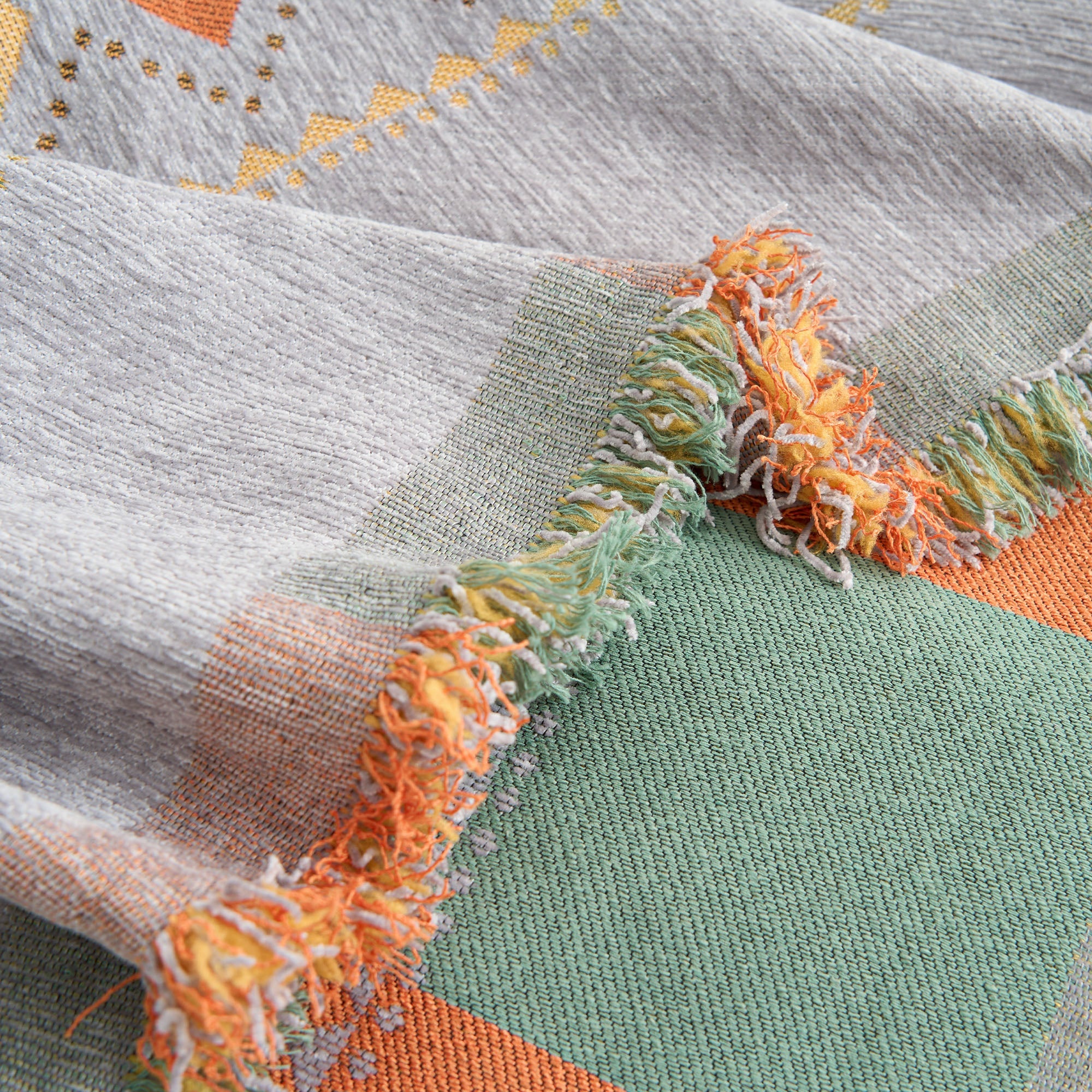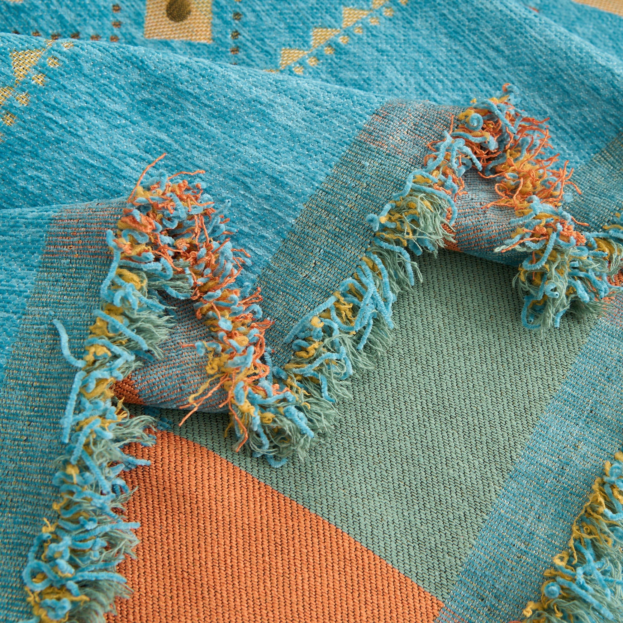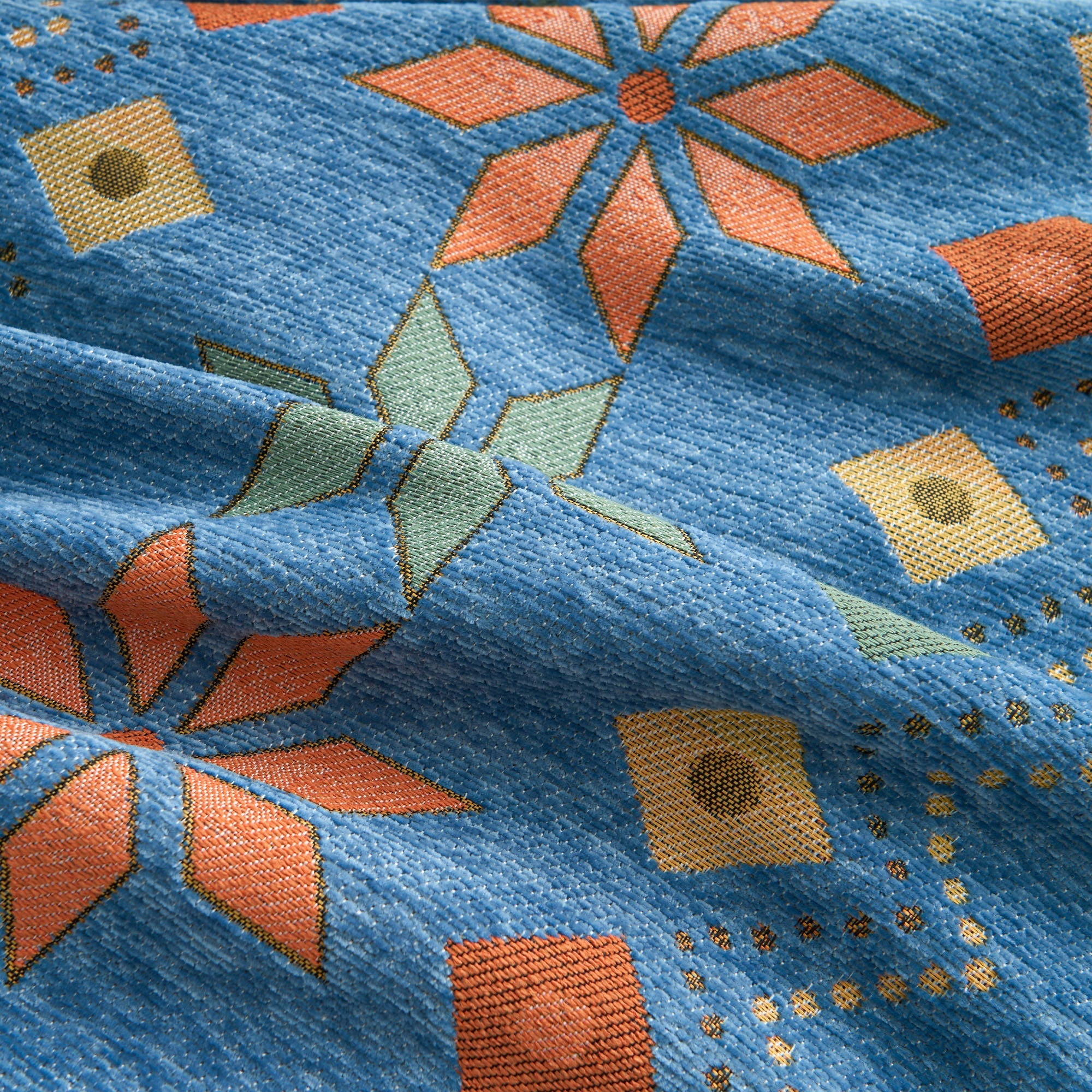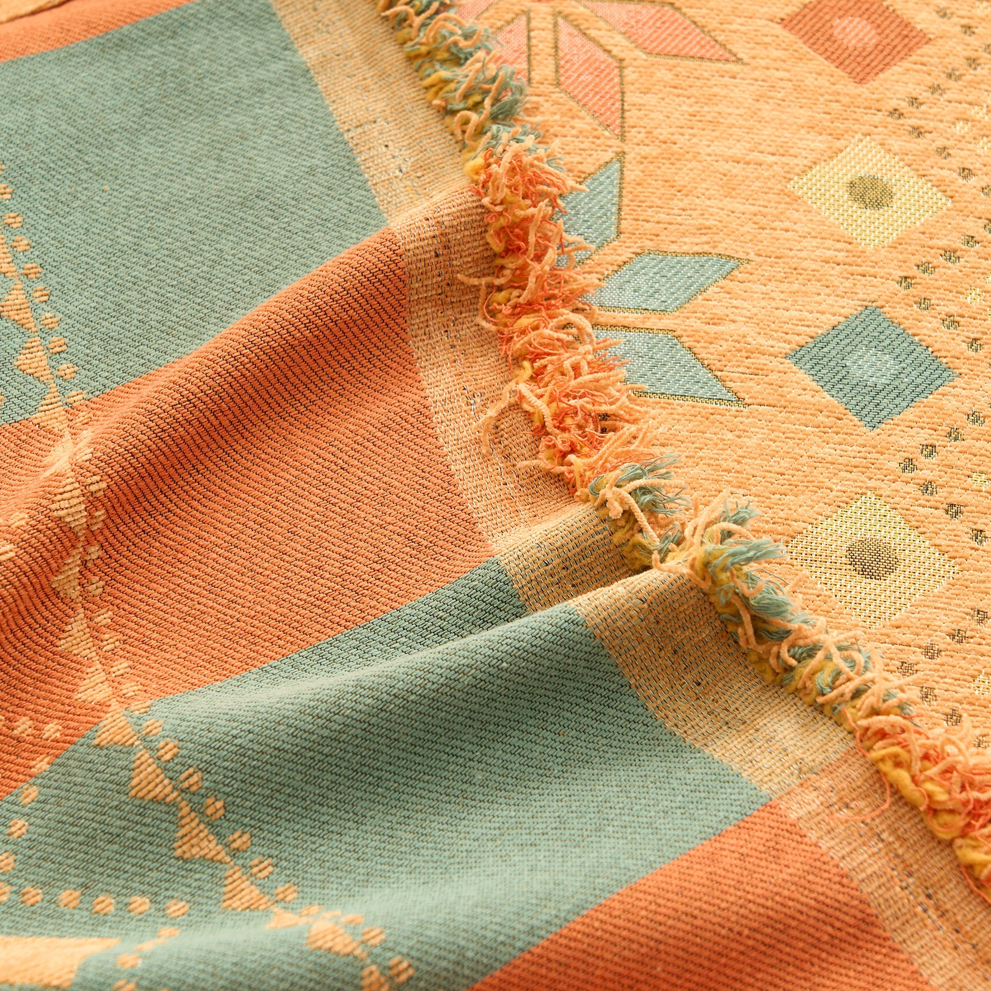 •Ljus geometrisk design: Med ett färgglatt nordiskt inspirerat geometriskt mönster som lyfter din inredning med en trendig, konstnärlig känsla.