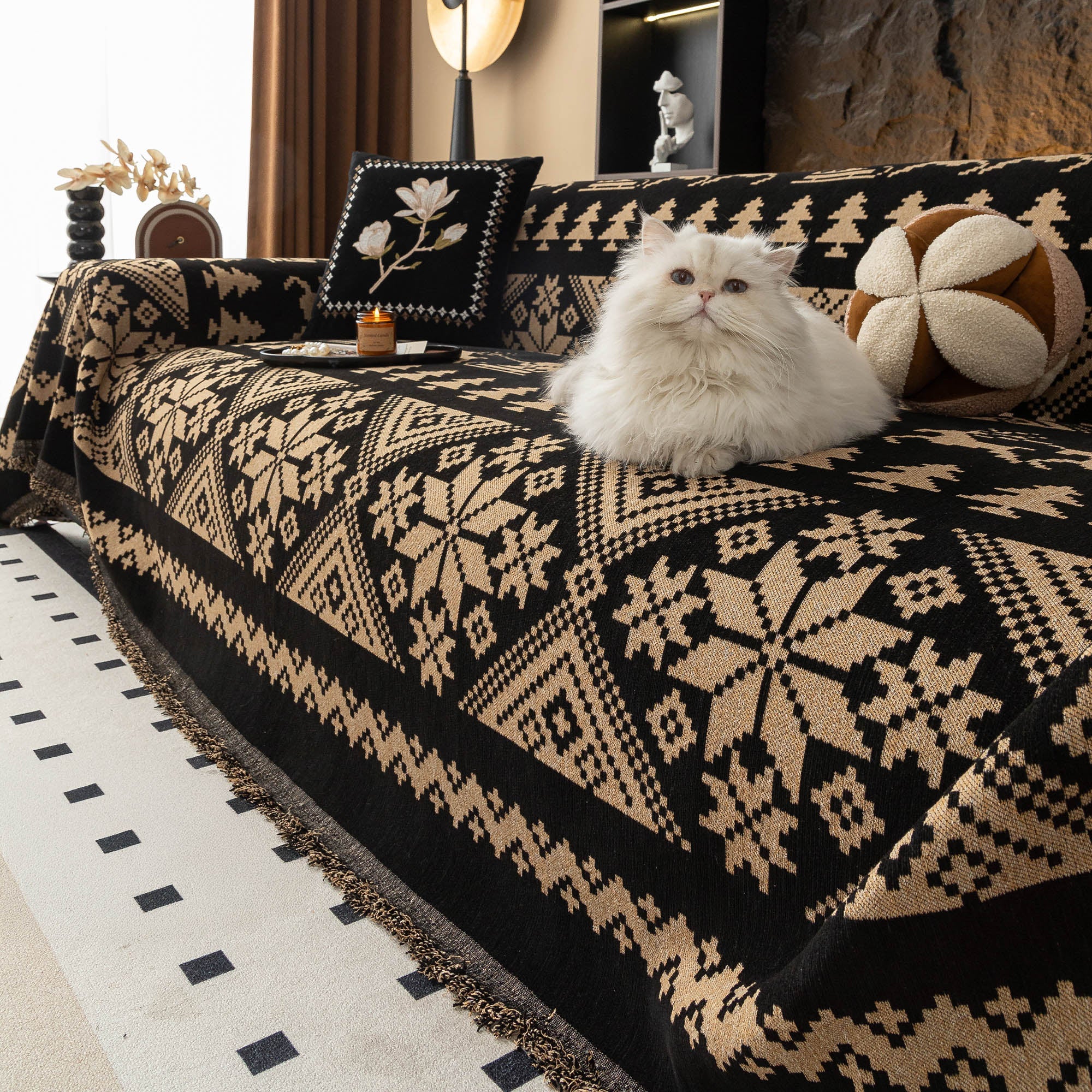 Nordiskt geometriskt mönster, andningsbart monokromatiskt sofföverdrag, mjukt och snyggt soffskydd för ett mysigt, modernt och hållbart hem