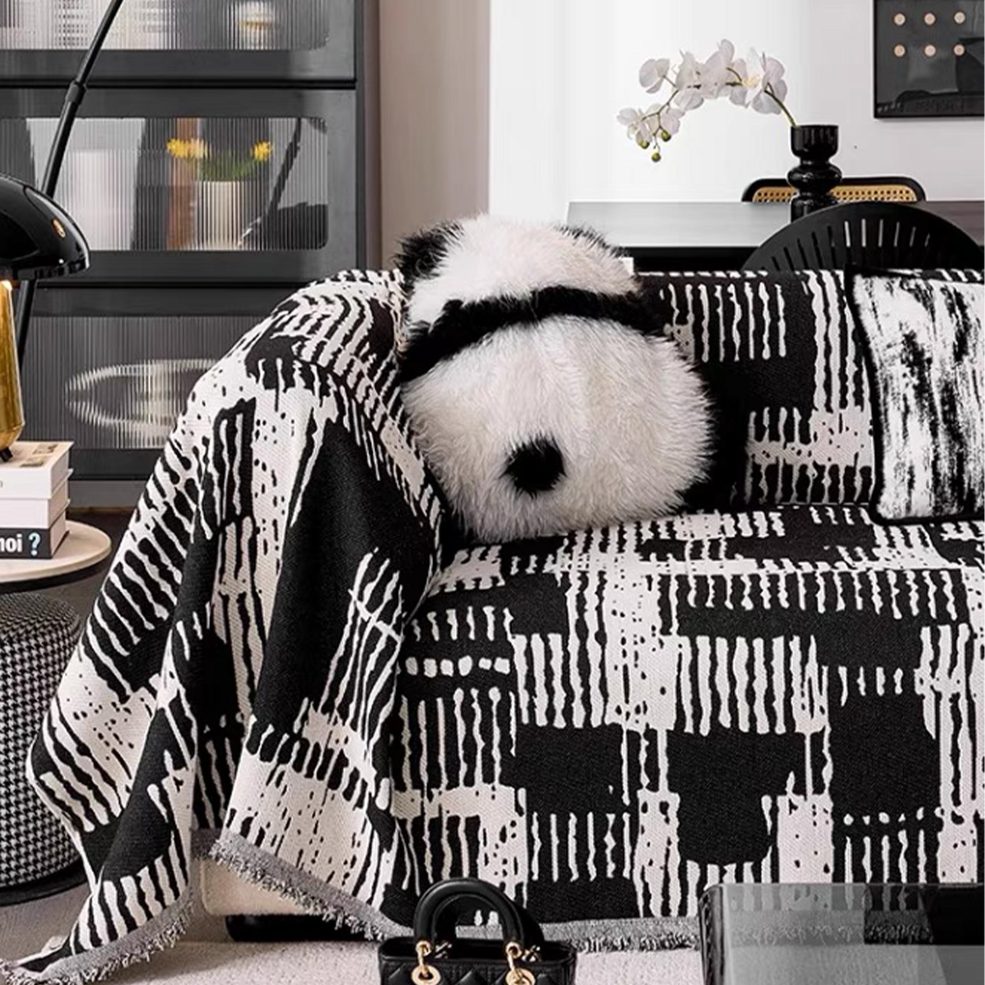Ge ditt vardagsrum ett djärvt uttryck med sofföverdraget Modern Abstract. Med slående svartvita penseldragsmönster uppgraderar överdraget din soffa direkt med en unik, modern känsla. Tillverkat av mjukt, slitstarkt tyg erbjuder det både komfort och stil, vilket gör det till ett perfekt val för moderna och minimalistiska interiörer.
