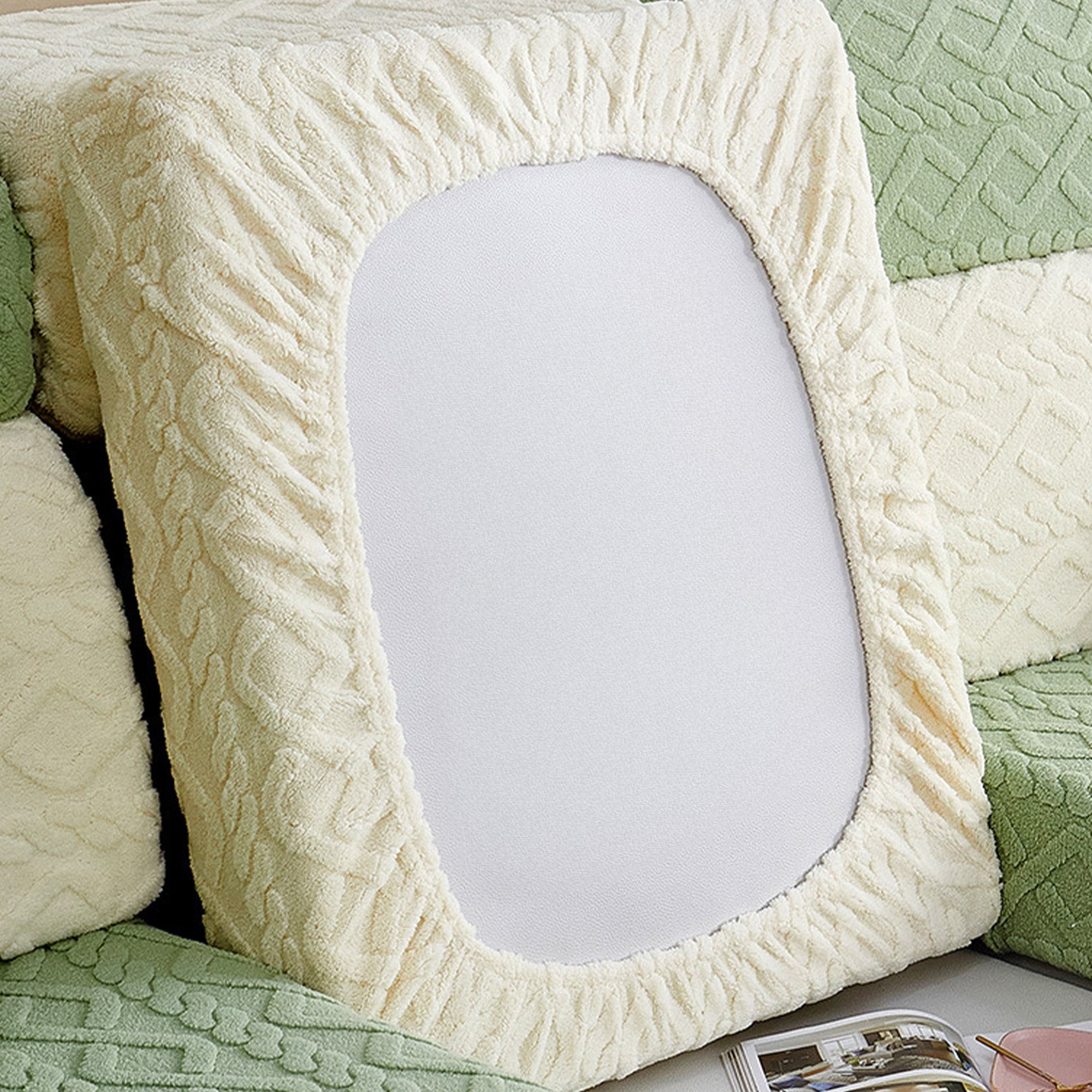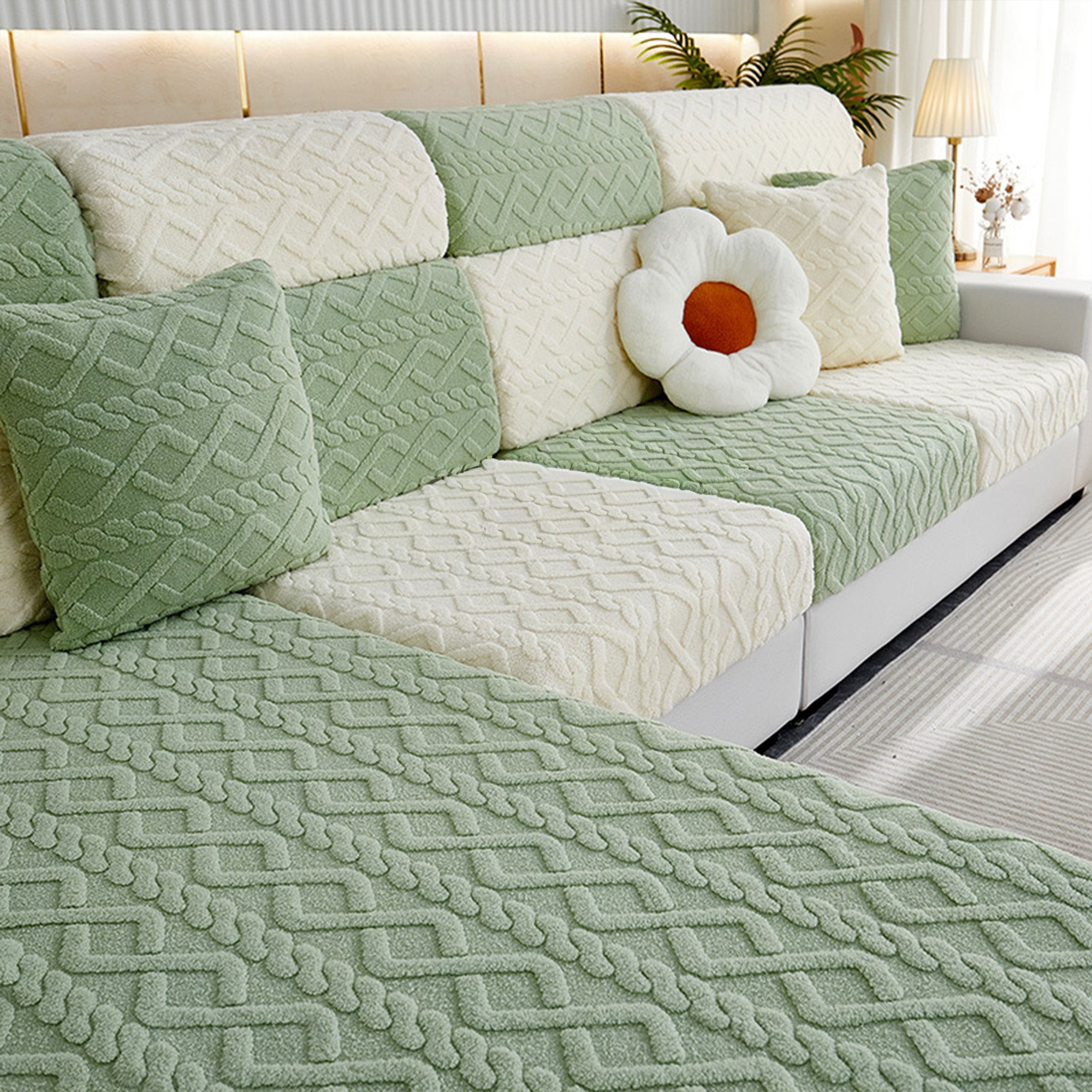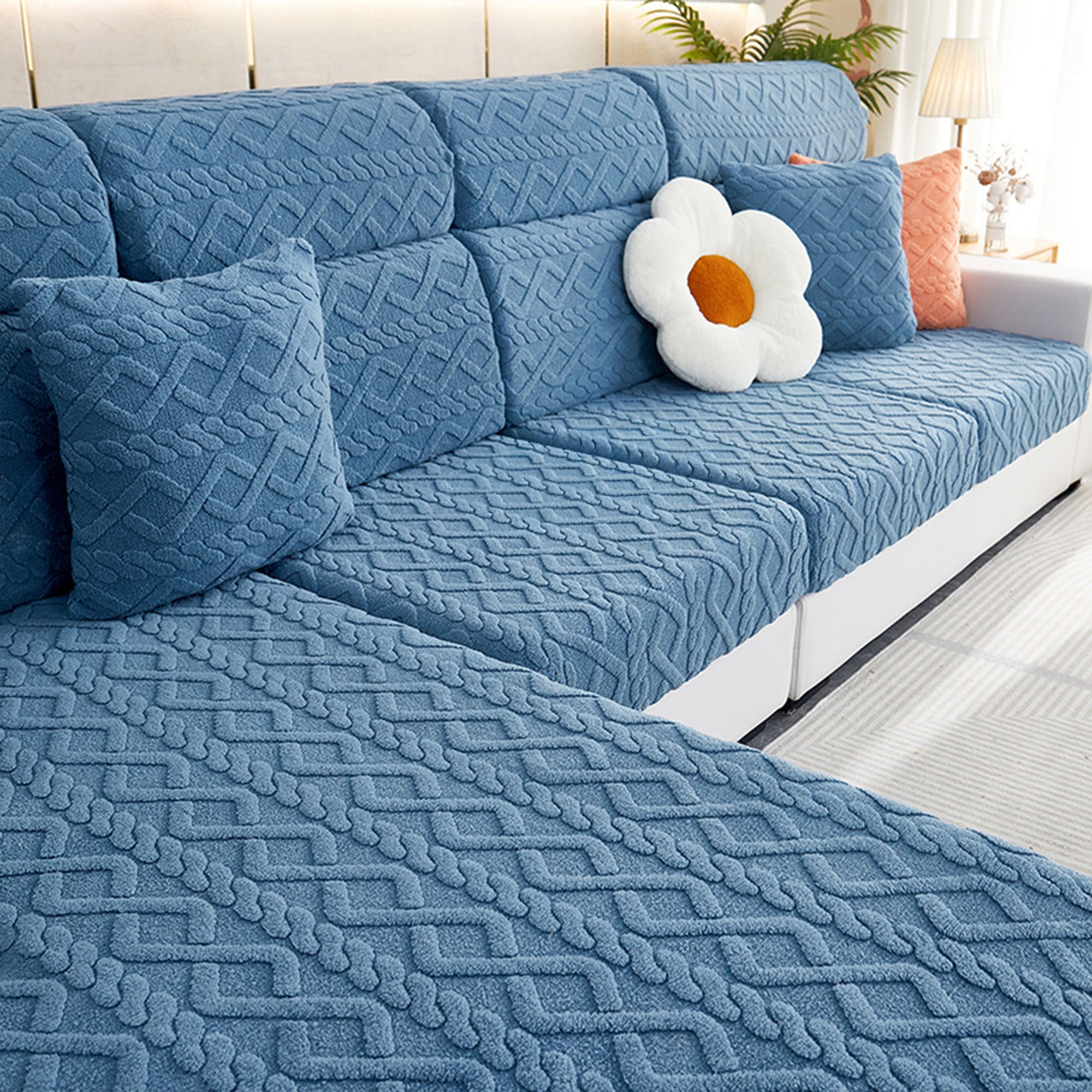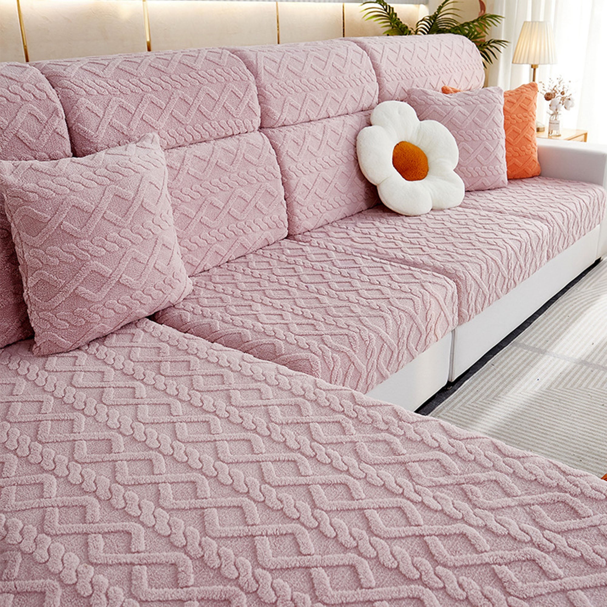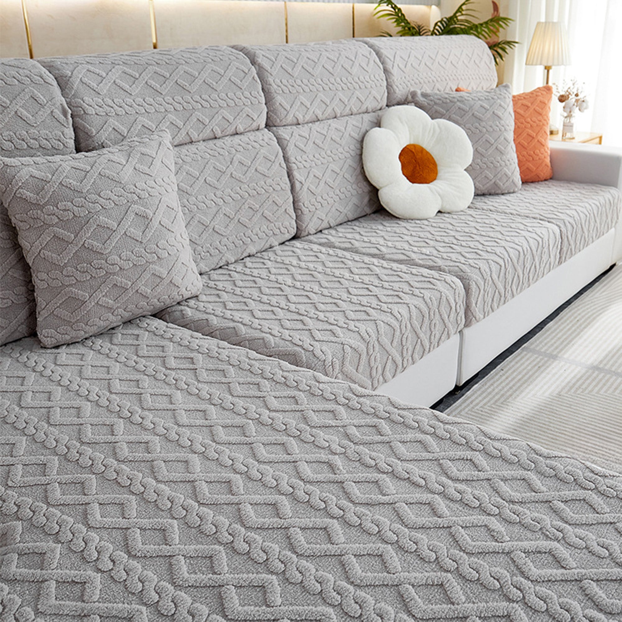 Skydda och fräscha upp din soffa på några sekunder med vårt Cozy Weave Milk-Velvet Stretch-sofföverdrag. Tillverkat med en plyschig, hudvänlig mjölksammetsstickning och präglad jacquardstruktur, ger det en mjuk känsla, ett raffinerat utseende och en rejäl hållbarhet. Det högelastiska omslaget och den dubbla halkfria designen håller varje möbel på plats – sitt, slappa eller hoppa och den kommer inte att röra sig. Husdjursvänligt och reptåligt, det motstår dagligt slitage så att du spenderar mindre tid på att städa och mer tid på att koppla av.