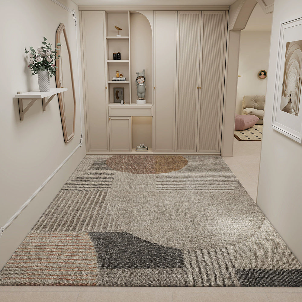 Fräscha upp din hall med dörrmattan Geo Harmony – moderna block och mjuka bågar i lugnande stentaupe ger en subtil karaktär utan att det rör sig om röran. Den är vävd med en högdensitets polyesteryta med kort lugg, döljer smuts, dammsuger på några sekunder och sitter kvar tack vare sin halkfria baksida – perfekt för livliga hem med husdjur och barn.