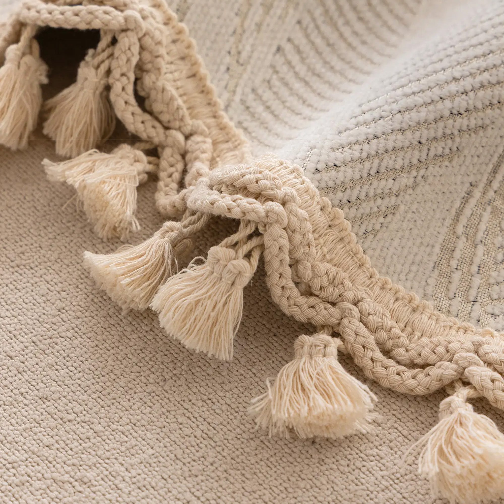 •Rolig pompom-kantdetalj för att lyfta din inredning.