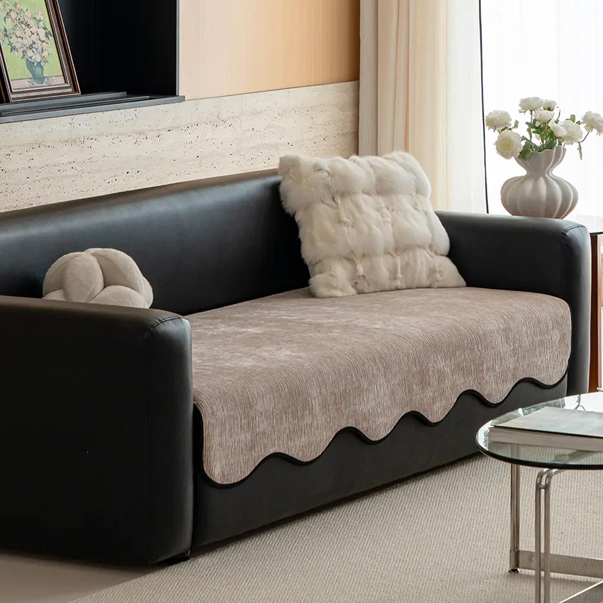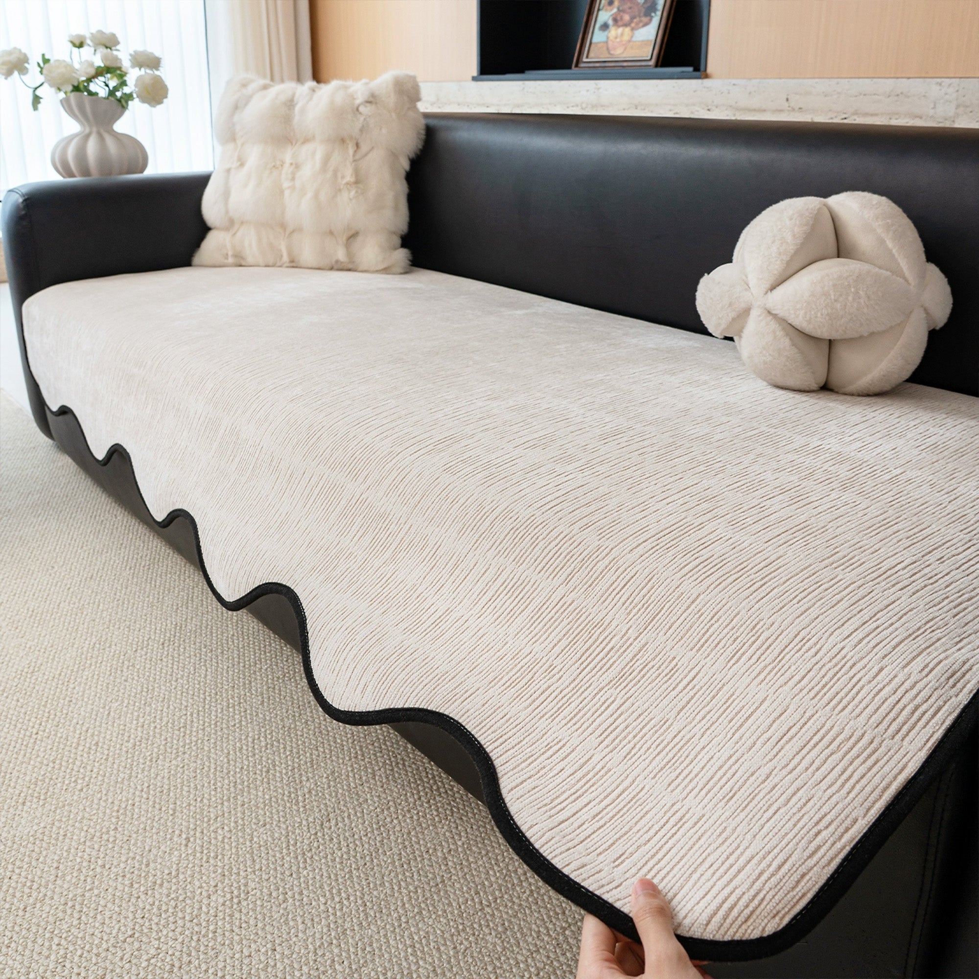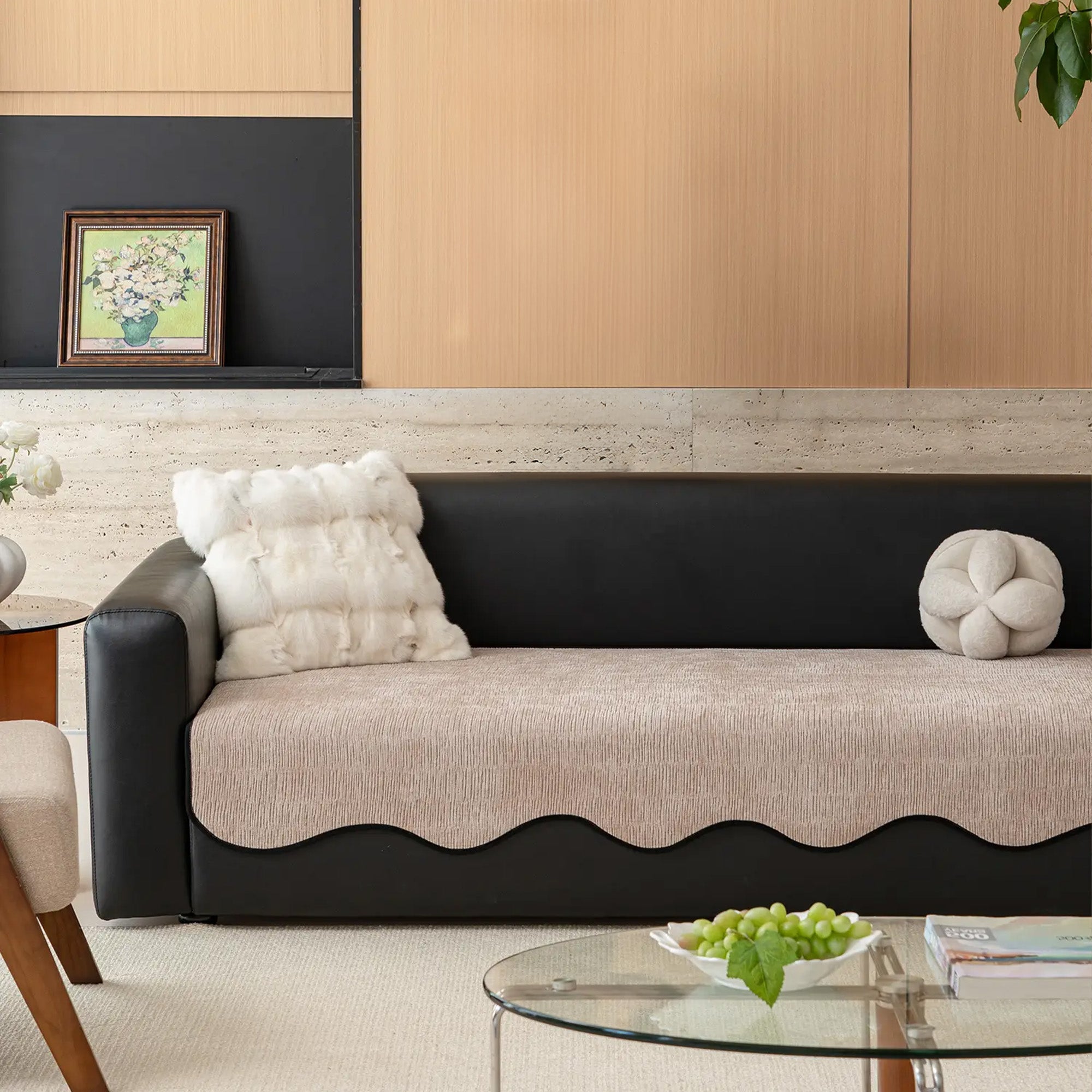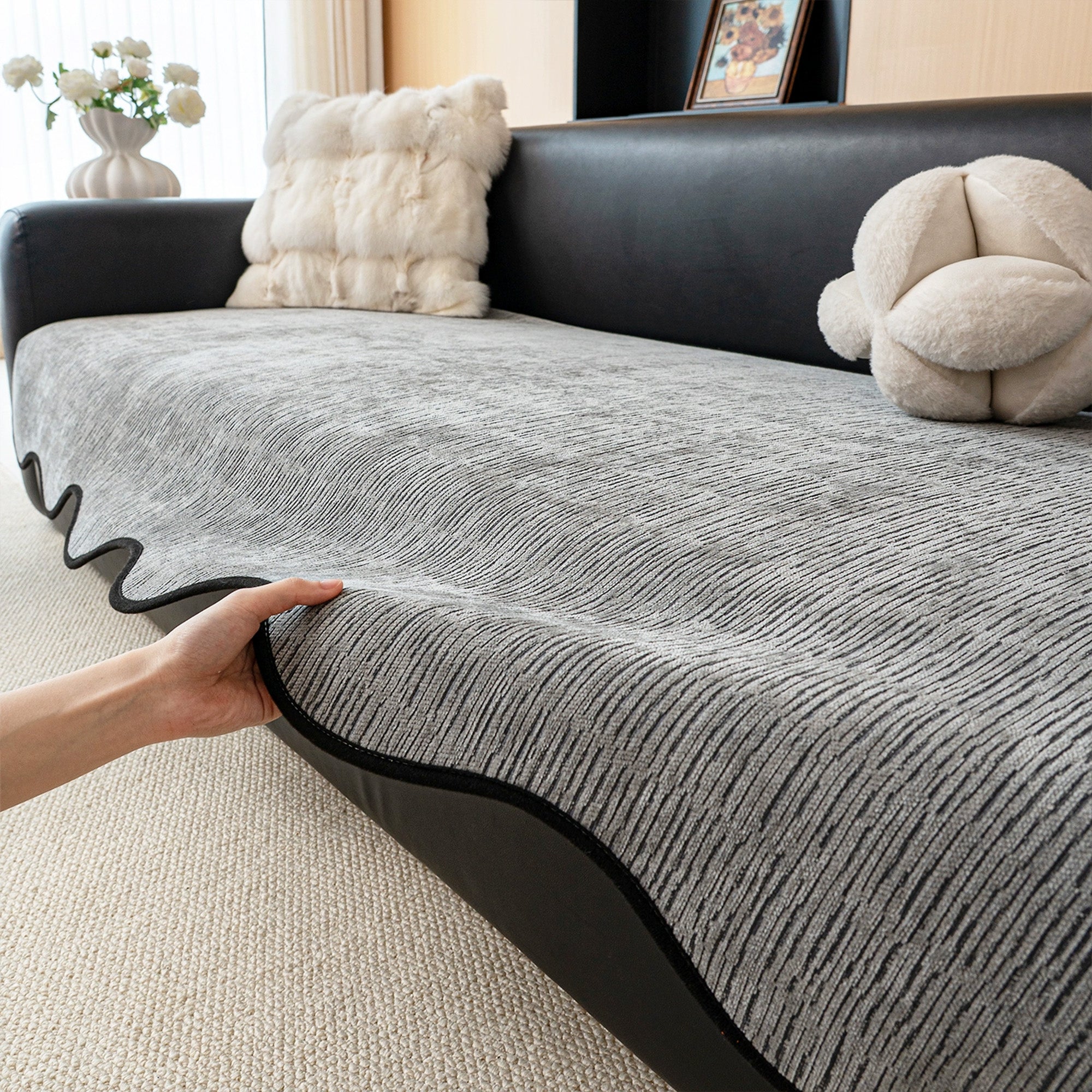 Förhöj ditt vardagsrum med sofföverdraget Wavy Edge Chenille Nonslip, en perfekt balans mellan modern charm och praktiskt skydd. Dess distinkta vågiga kant med djärva svarta kanter skapar en slående designaccent, medan det slitstarka chenilletyget ger en mjuk och mysig känsla. Designat med en halkfri baksida sitter överdraget säkert på plats, vilket gör det idealiskt för familjer och husdjursägare.