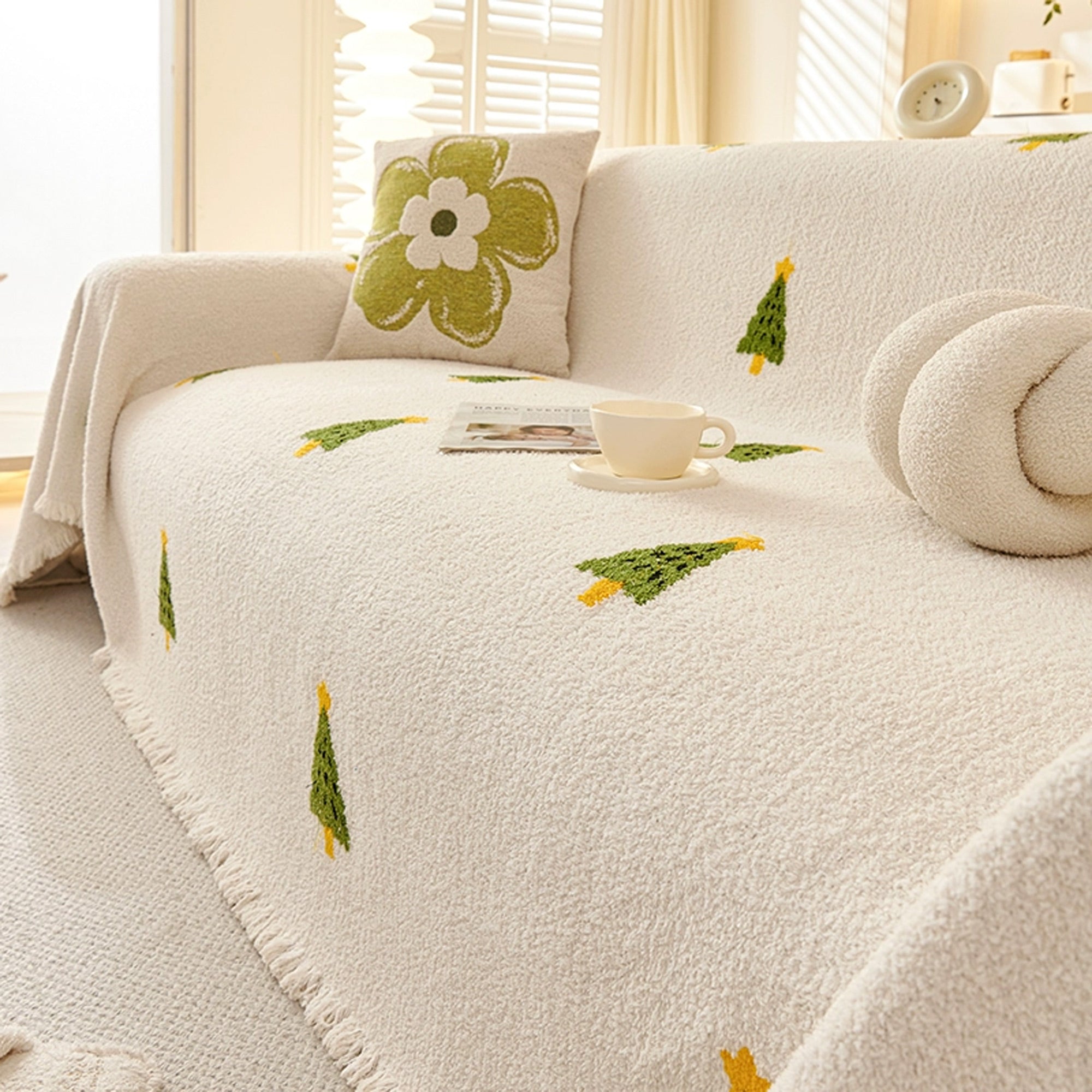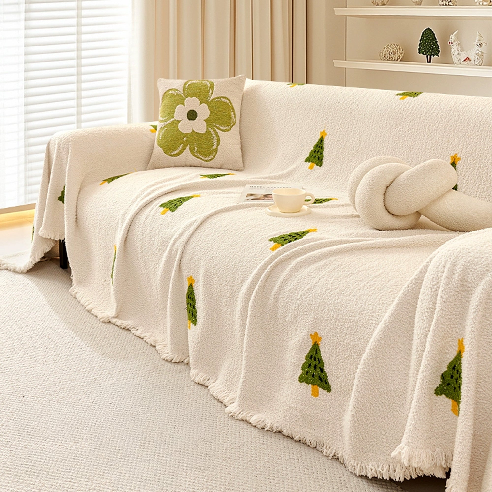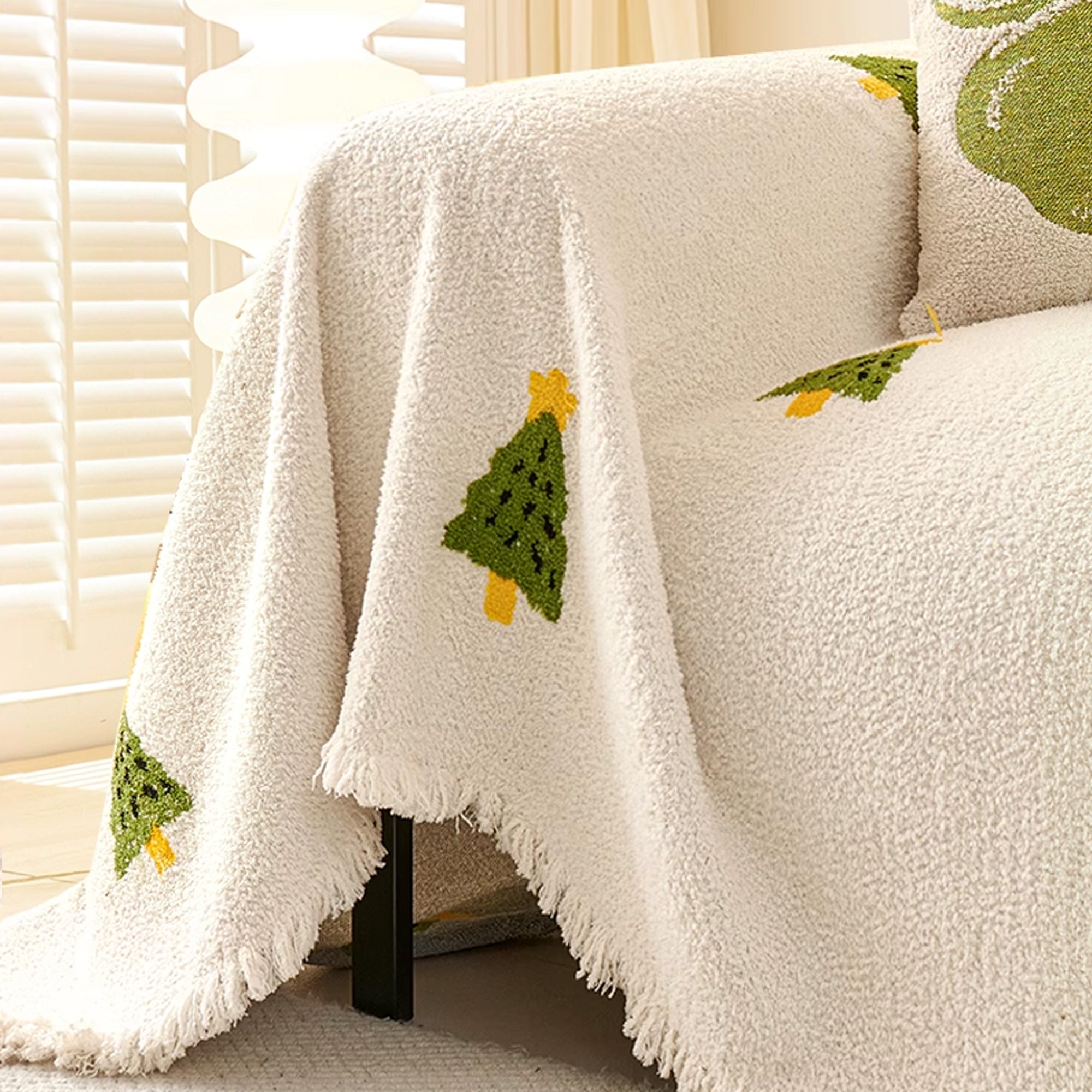 •Design: Sofföverdraget har ett grönt julgransmönster på en skarp vit bas. De gröna granarna framkallar den traditionella julstämningen och ger en naturlig, festlig touch till din inredning.