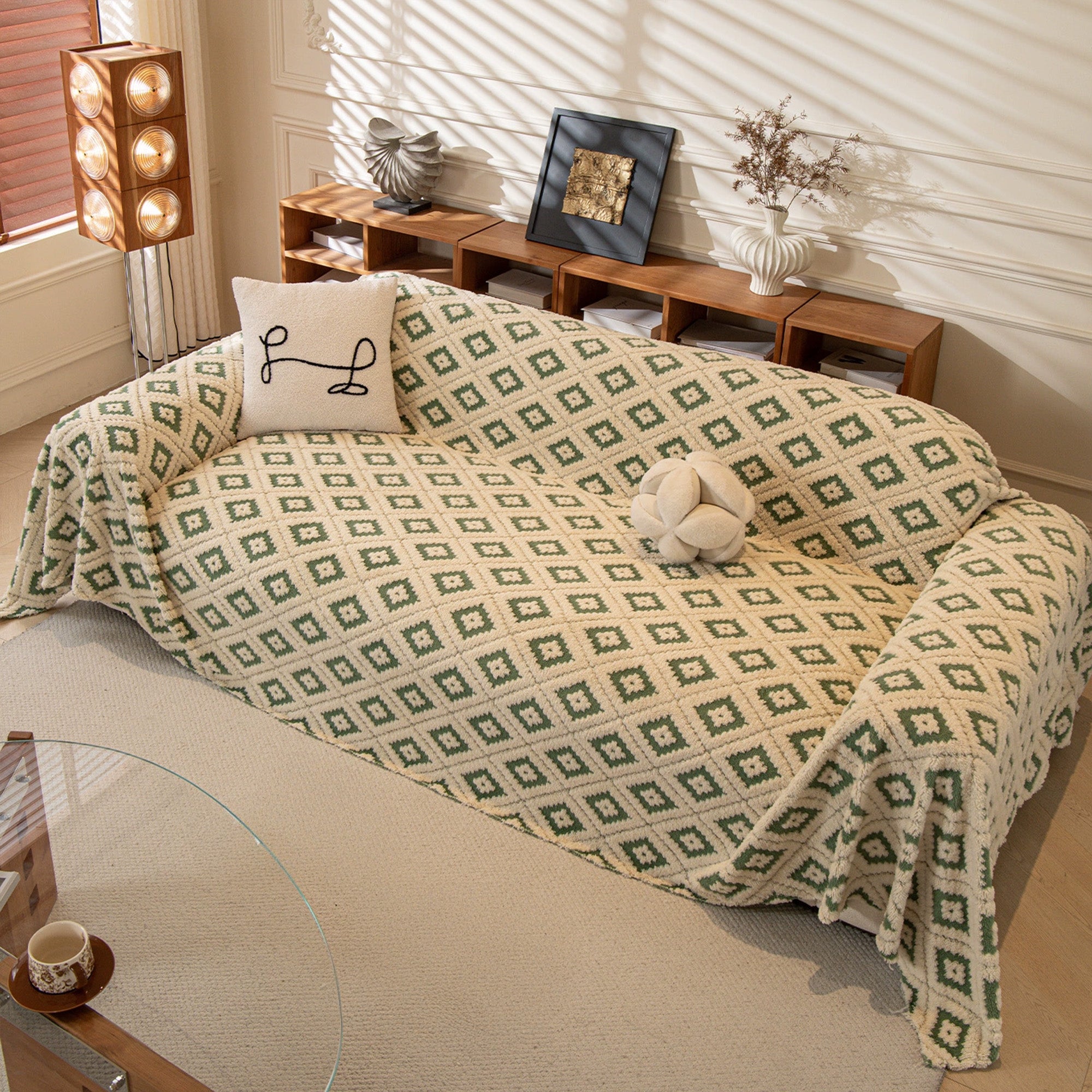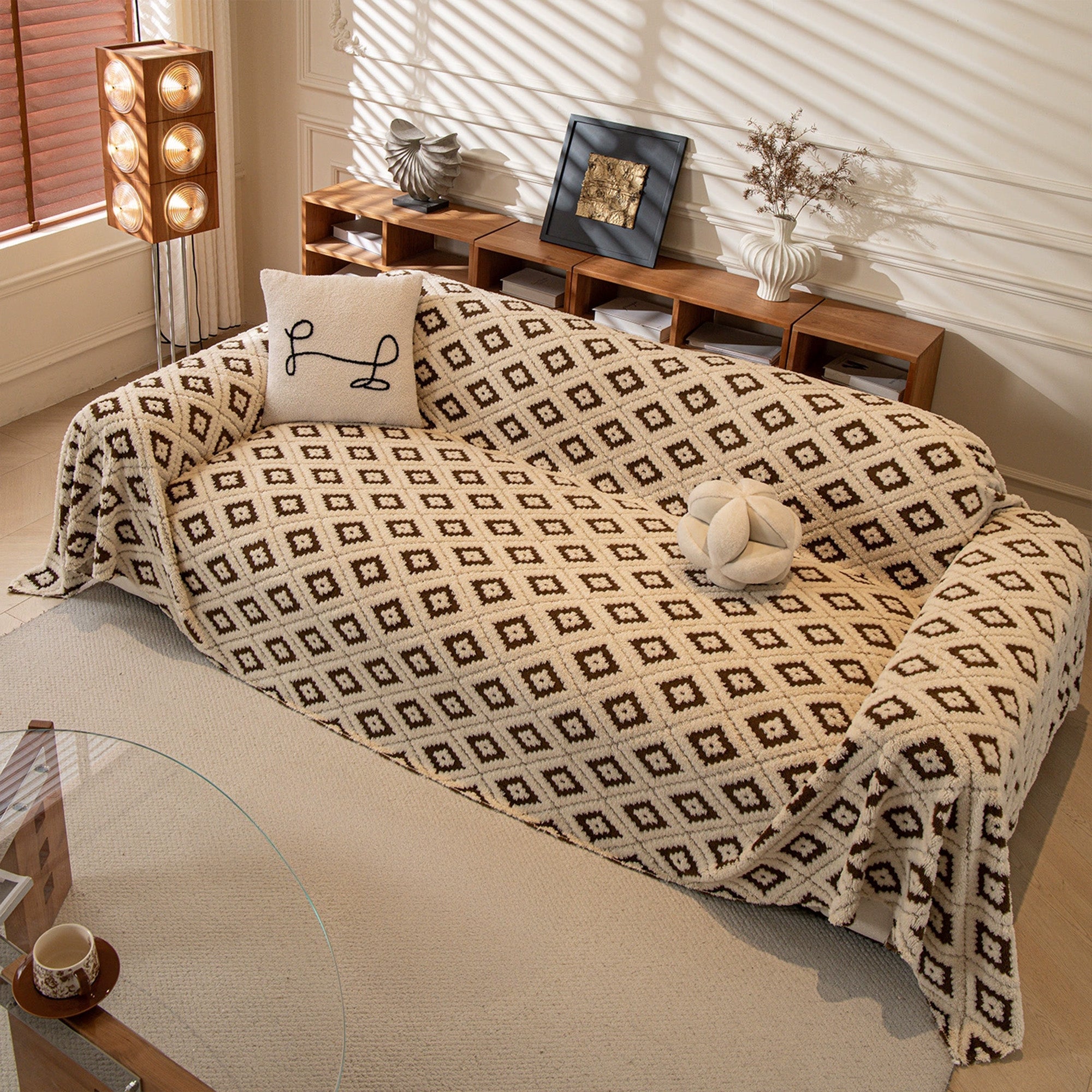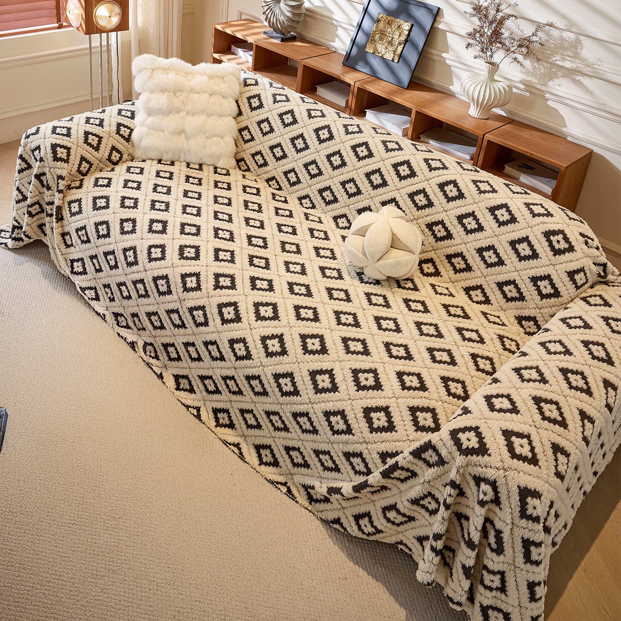 Svep in din soffa i plyschkomfort och modern stil med vårt Cozy Diamond Plush Nonslip-sofföverdrag. Det upphöjda diamant-jacquardtyget ger en rik textur, medan det tjocka, husdjursvänliga plyschtyget skyddar mot dagligt slitage, päls och repor. Mjukt vid beröring men ändå hållbart, det sitter på plats och lyfter omedelbart ditt utrymme.