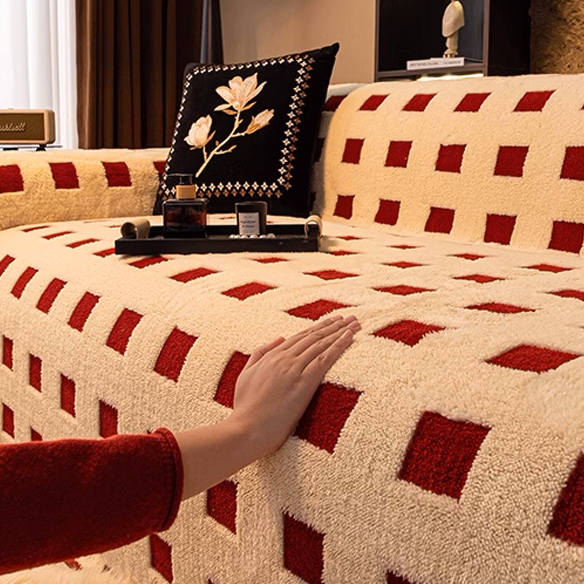 Plyschigt sofföverdrag med geometrisk fyrkantig design för komfort och sofistikering i alla vardagsrum