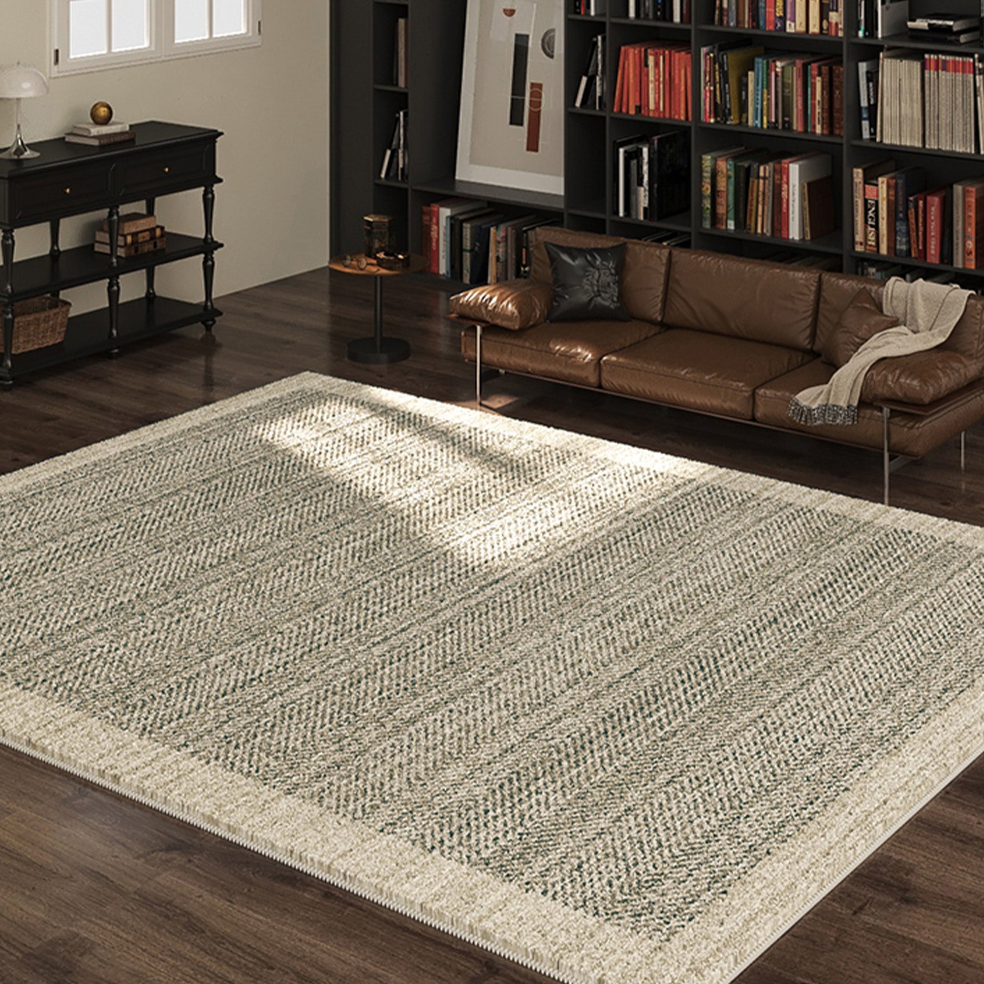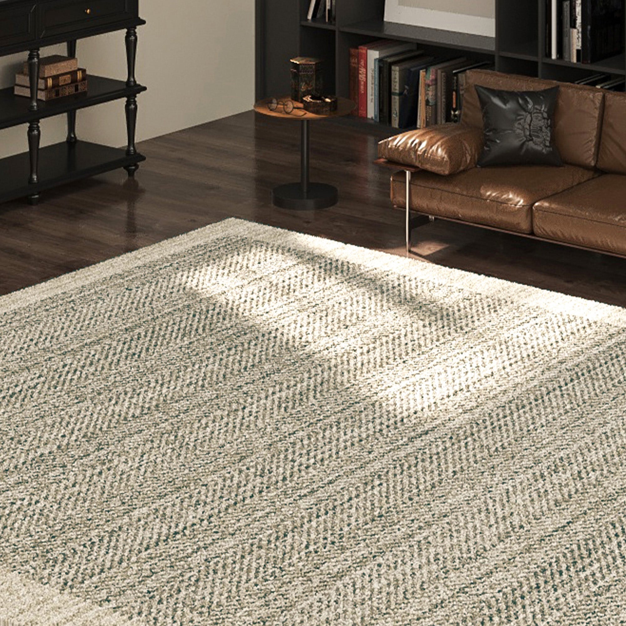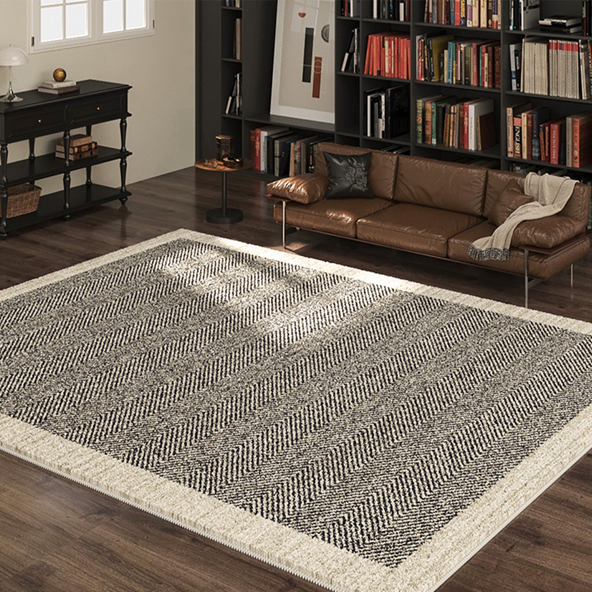 Ge ditt utrymme en touch av sofistikering med denna lättrengjorda, eleganta, spillsäkra, husdjursvänliga vardagsrumsmatta för stora rum. Med ett tidlöst svart och krämfärgat fiskbensmönster är denna matta perfekt för dig som söker en subtil men ändå elegant accent. Dess mångsidiga design kompletterar både modern och klassisk inredning, vilket gör den till ett idealiskt val för alla rum.