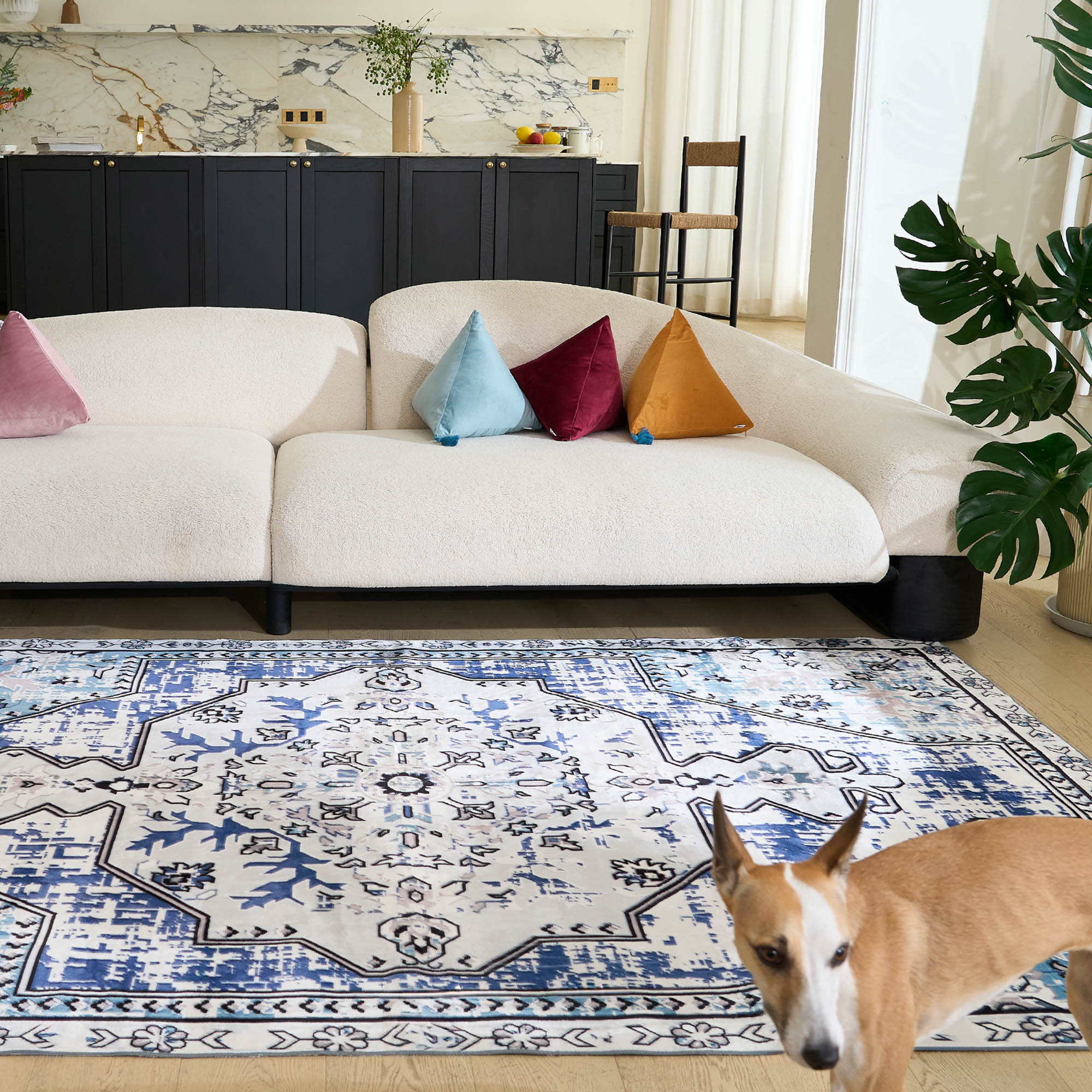 Lättrengjord matta i marockansk boho-stil, plyschig vardagsrumsmatta, djurvänlig - Slutförsäljning