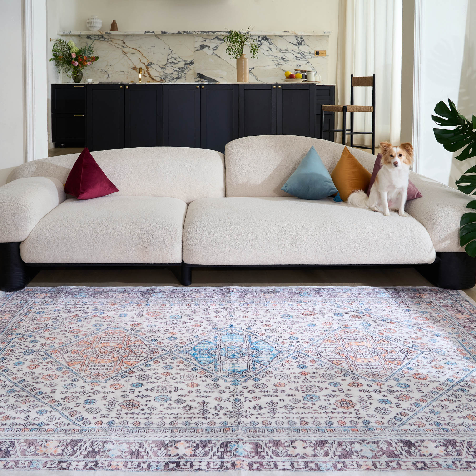Släpp lös en ny nivå av sofistikering i ditt hem med vår vattentäta lätta Marrakech Charm-matta! Designad med både stil och funktionalitet i åtanke, är denna matta det perfekta tillskottet för djurälskare som vill behålla ett elegant och djurvänligt hem. Oavsett om det är ditt vardagsrum, sovrum eller hall, ger denna matta en touch av elegans samtidigt som den garanterar ultimat komfort för dig och dina lurviga vänner. Dess mysiga känsla är perfekt för både husdjur och människor, vilket gör den till en favoritplats för dina lurviga vänner att ta en tupplur medan du kopplar av med dem.