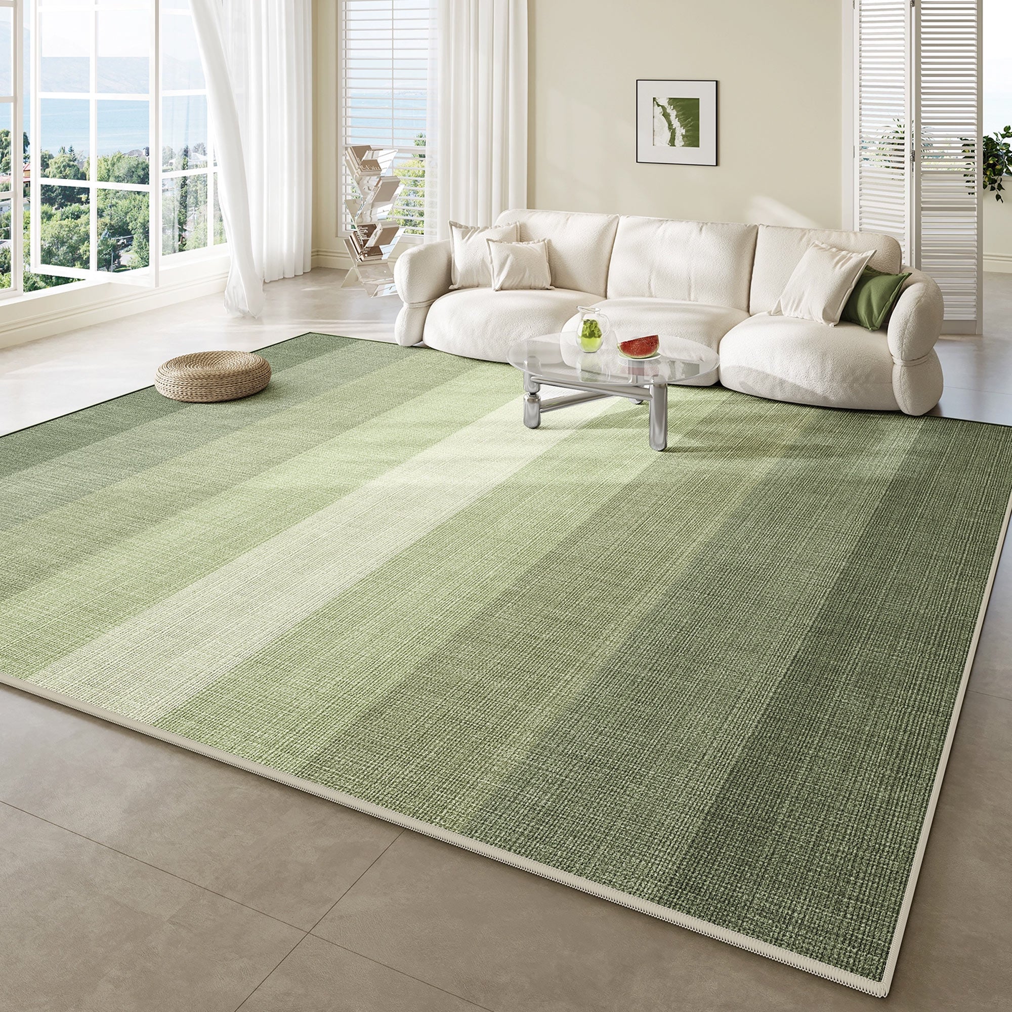 Låt den grönrandiga mattan med tonade ränder ge ditt utrymme en touch av lugn – där elegans möter stillhet! Få in en frisk fläkt i ditt hem med den grönrandiga mattan med tonade ränder! Med en lugnande gradient av gröna ränder som övergår från ljust till mörkt, skapar denna matta en fridfull och jordnära atmosfär i alla rum. Dess enkla men eleganta design passar vackert ihop med både modern och naturinspirerad inredning, vilket gör den till ett mångsidigt tillskott till ditt vardagsrum, sovrum eller kontor. Mattan är tillverkad av högkvalitativa material och är mjuk, slitstark och lättskött.