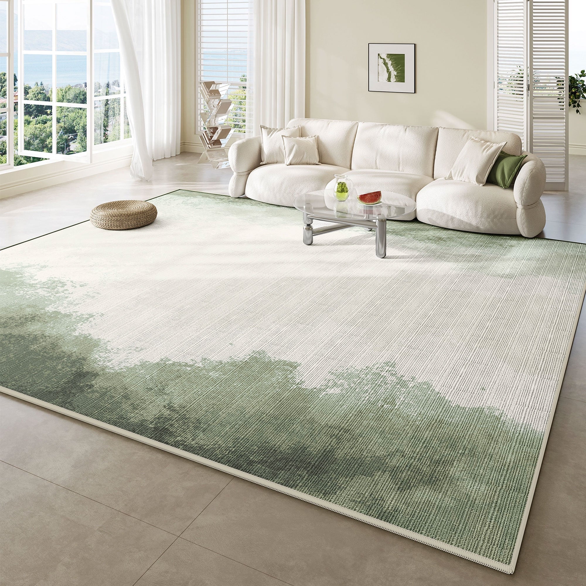 Lättrengjord matta Verdant Whispers Spillsäker Husdjursvänlig minimalistisk vardagsrumsmatta