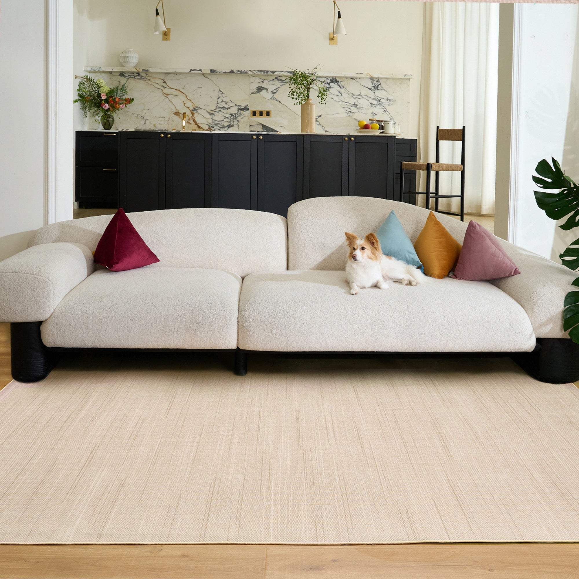 Lätt att rengöra, tvättbar, naturliga vävda ränder, slitstark, djurvänlig, spillsäker, avtagbar, halkfri dyna, vardagsrumsmatta