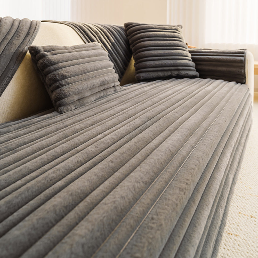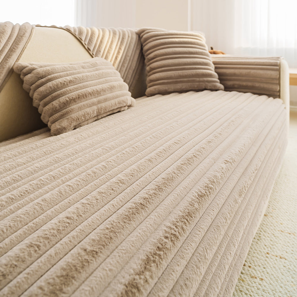 Omfamna värme och stil i höst och vinter med vårt plyschiga sofföverdrag i halkfri konstkaninpäls. Detta överdrag är designat för de mysiga månaderna och är tillverkat av tjockt, ultramjukt konstkaninpälstyg, vilket ger en touch av lyx och komfort till ditt vardagsrum. Det texturerade, plyschiga tyget ger inte bara en fyllig, varm känsla utan säkerställer också hållbarhet och ett pålitligt skydd för din soffa.