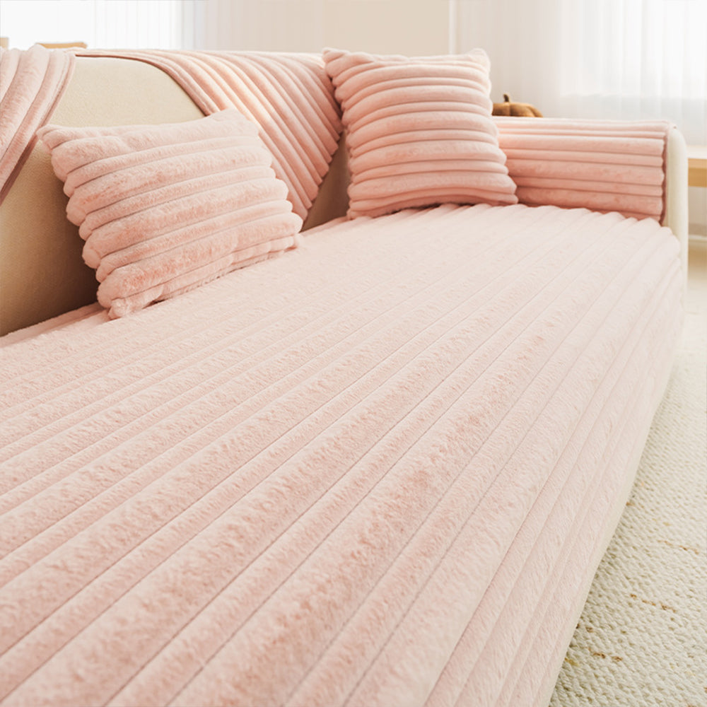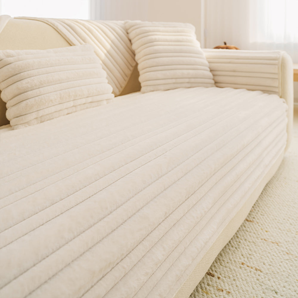 Halkfritt sofföverdrag i plyschig konstkaninpäls