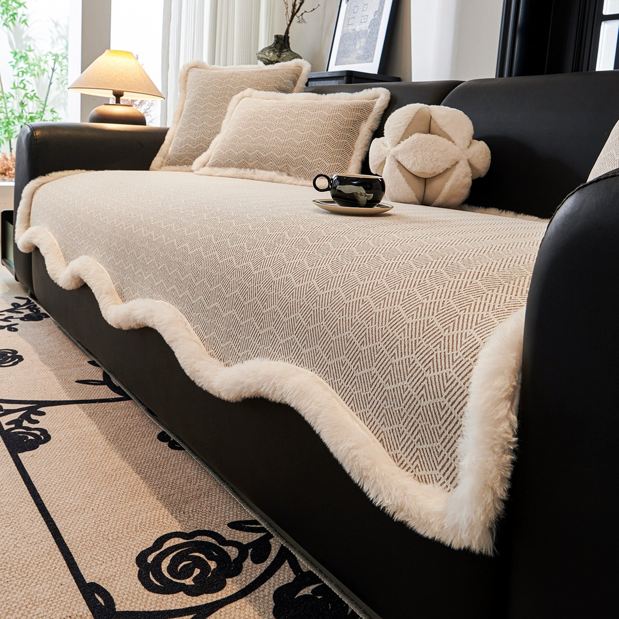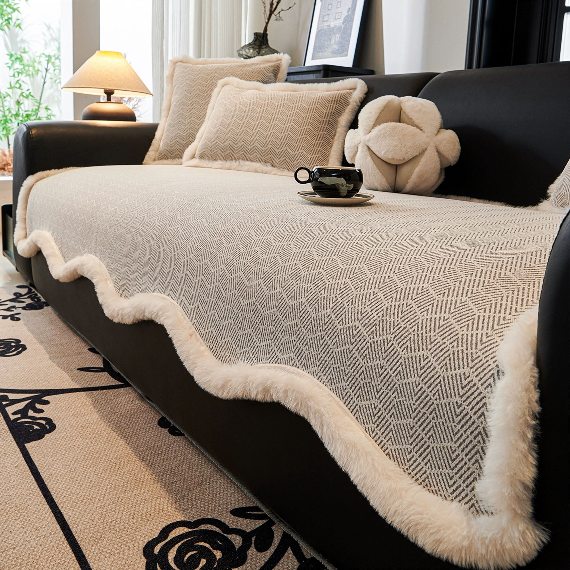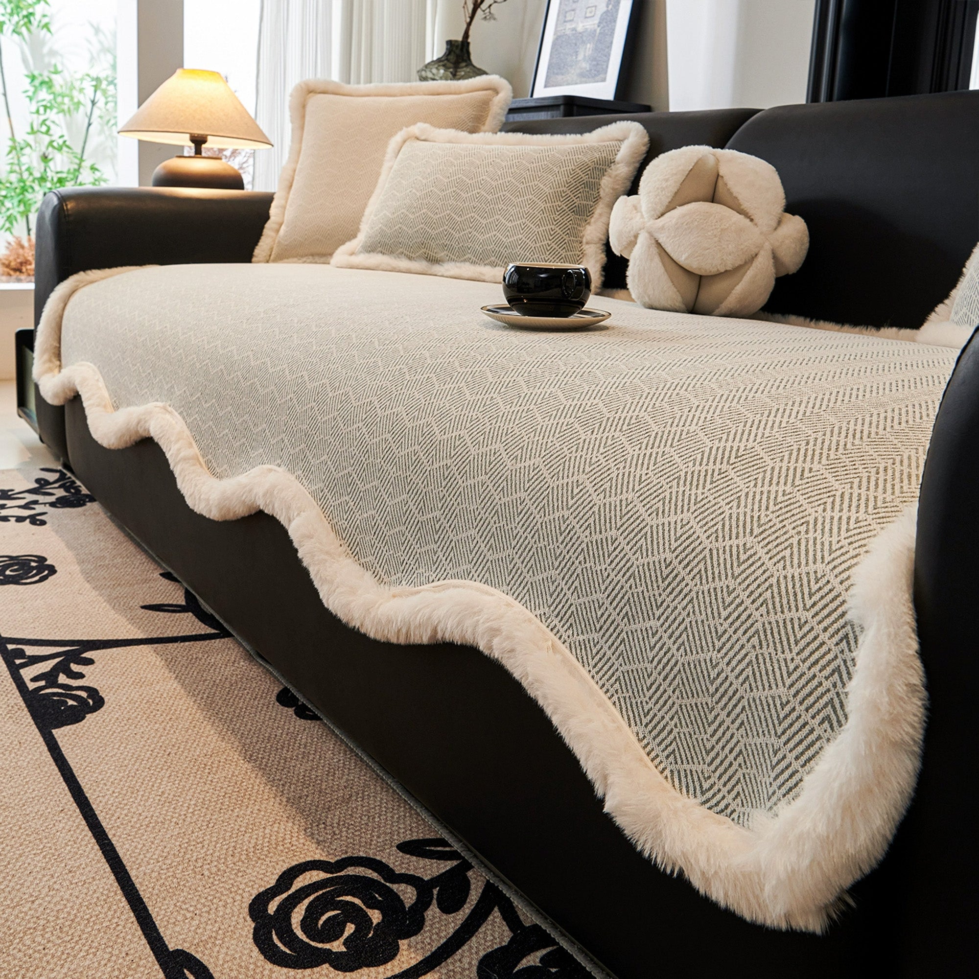 Ge ditt vardagsrum mysig lyx och elegant skydd med sofföverdraget Plush Weave Faux Fur-Trim. Den eleganta vävda texturen passar vackert ihop med den mjuka fuskpälskanten och skapar en elegant men ändå inbjudande look. Detta överdrag är designat för både estetik och praktisk användning och skyddar din soffa från dagligt slitage, spill och husdjurspäls, samtidigt som det förbättrar din heminredning.