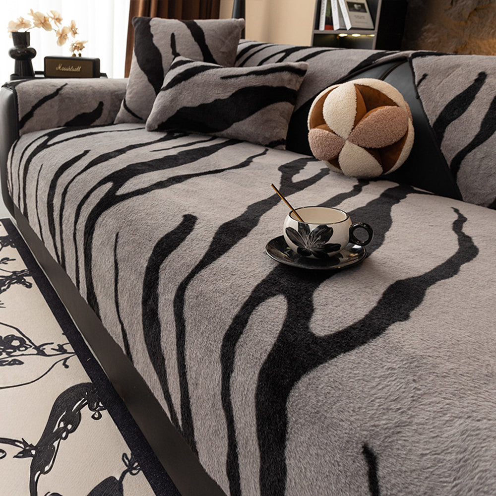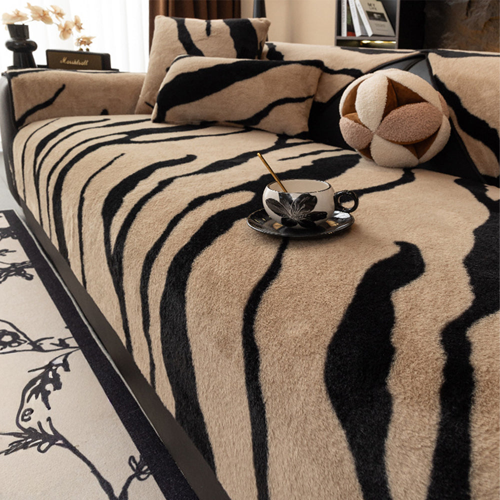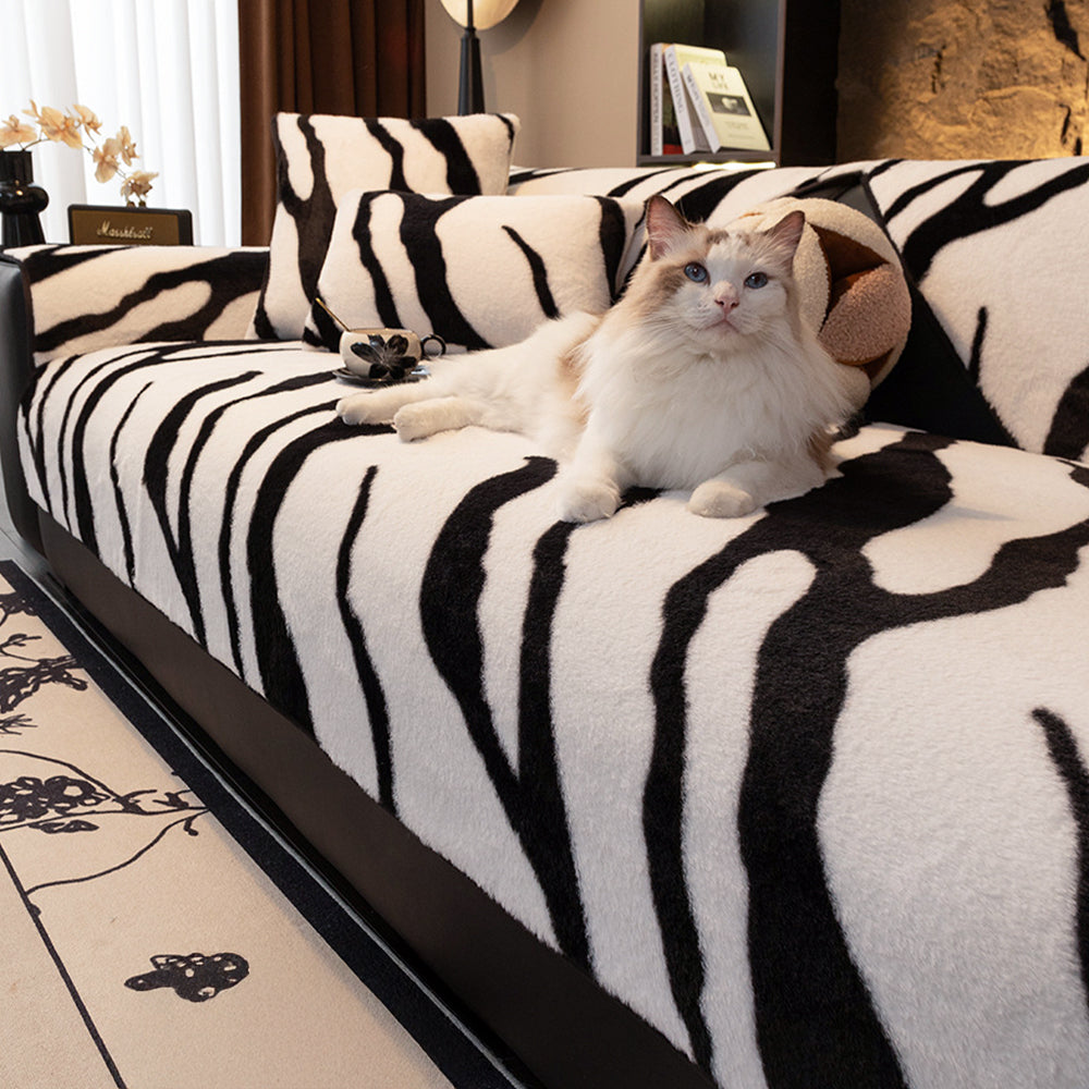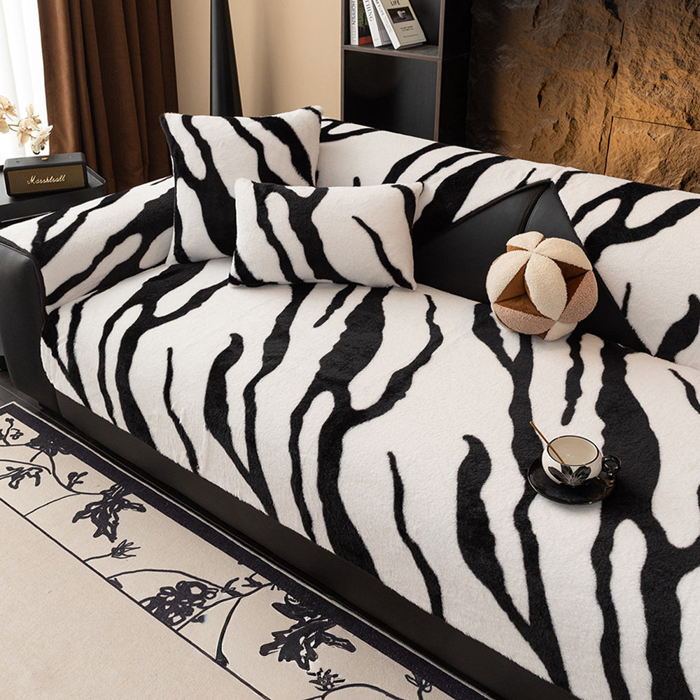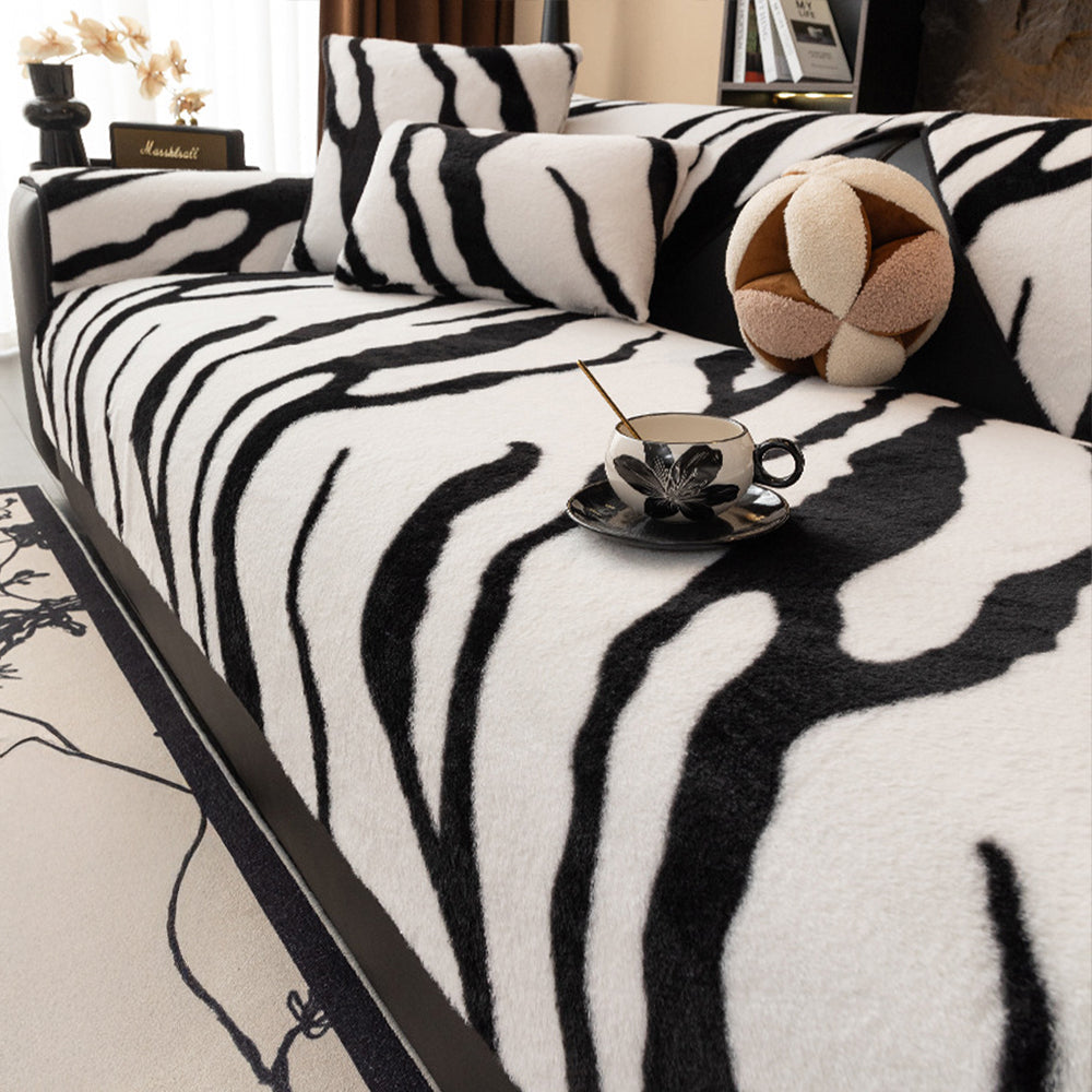 Zebramönster i fuskpäls, halkfritt sofföverdrag