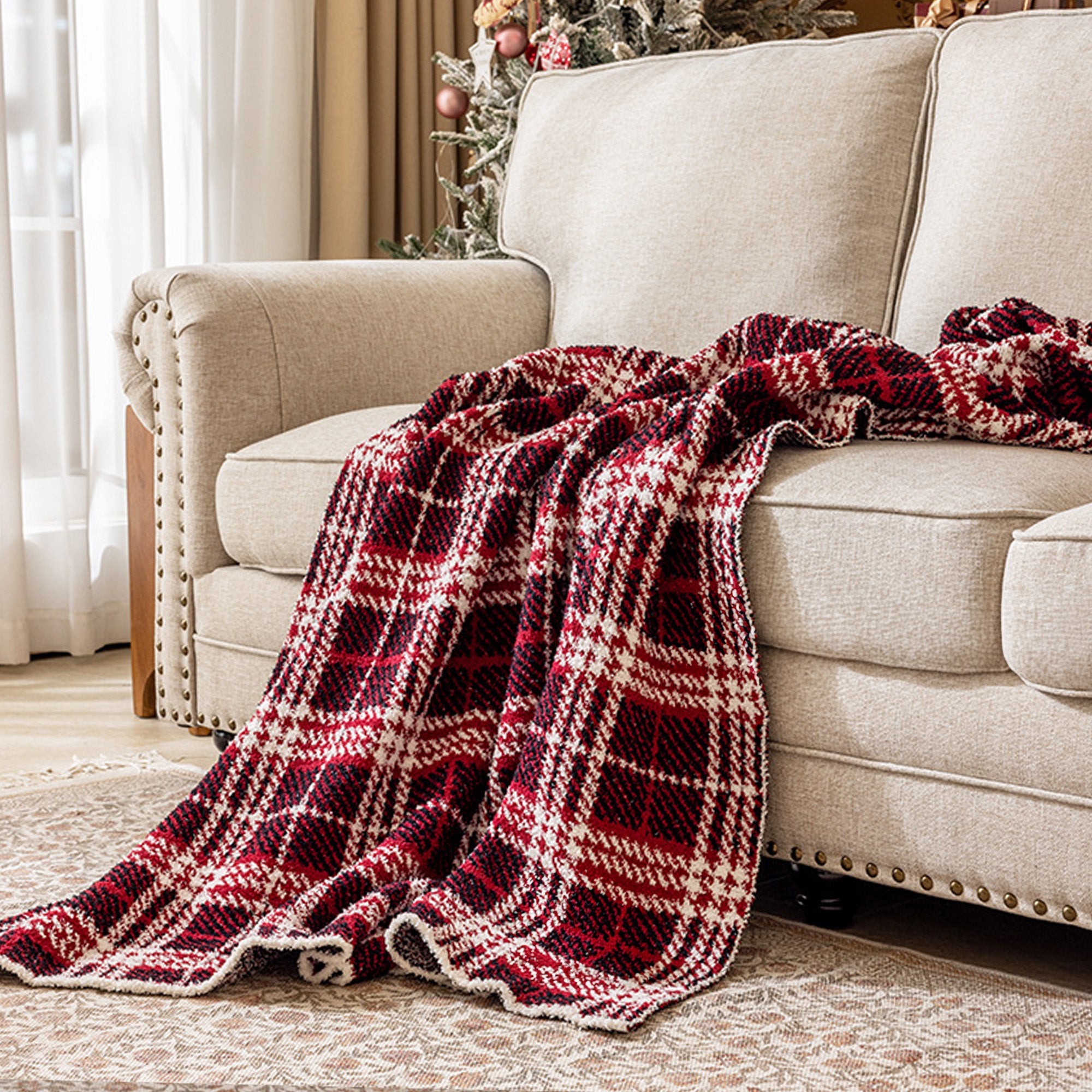 Det finns inget som kombinationen av klassisk stil och oöverträffad komfort, och Classic Buffalo Plaid Sherpa Throw levererar båda i överflöd. Med sin djärva rödvita rutmönster och ultramjuka sherpafoder är detta pläd det perfekta tillskottet till ditt vardagsrum eller sovrum för mysiga stunder under kyliga dagar.