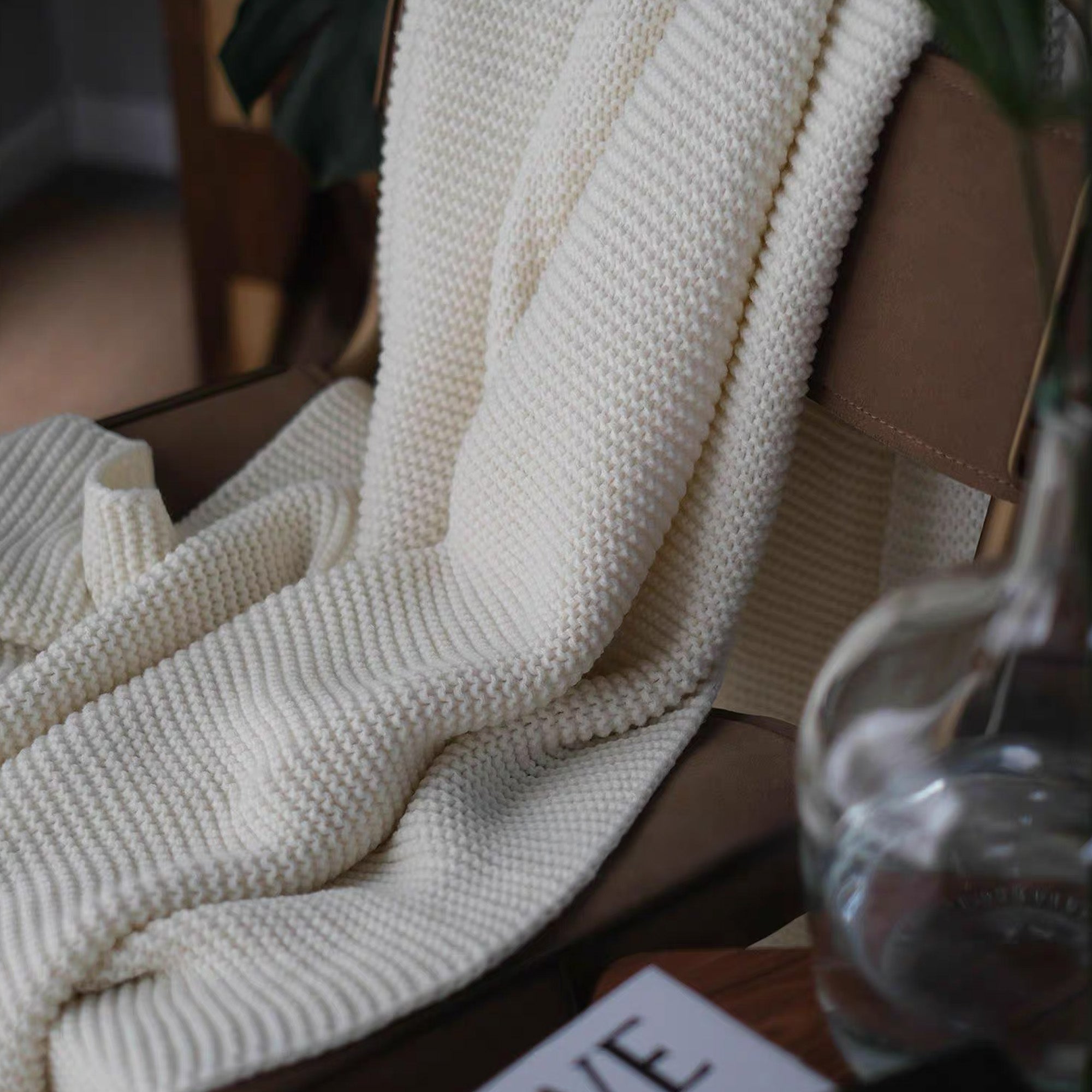 •Tjock, grov stickning för ultimat mysighet.