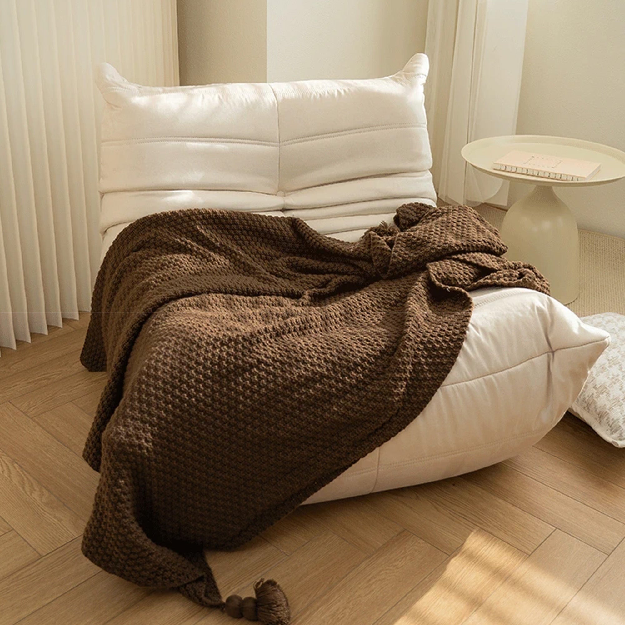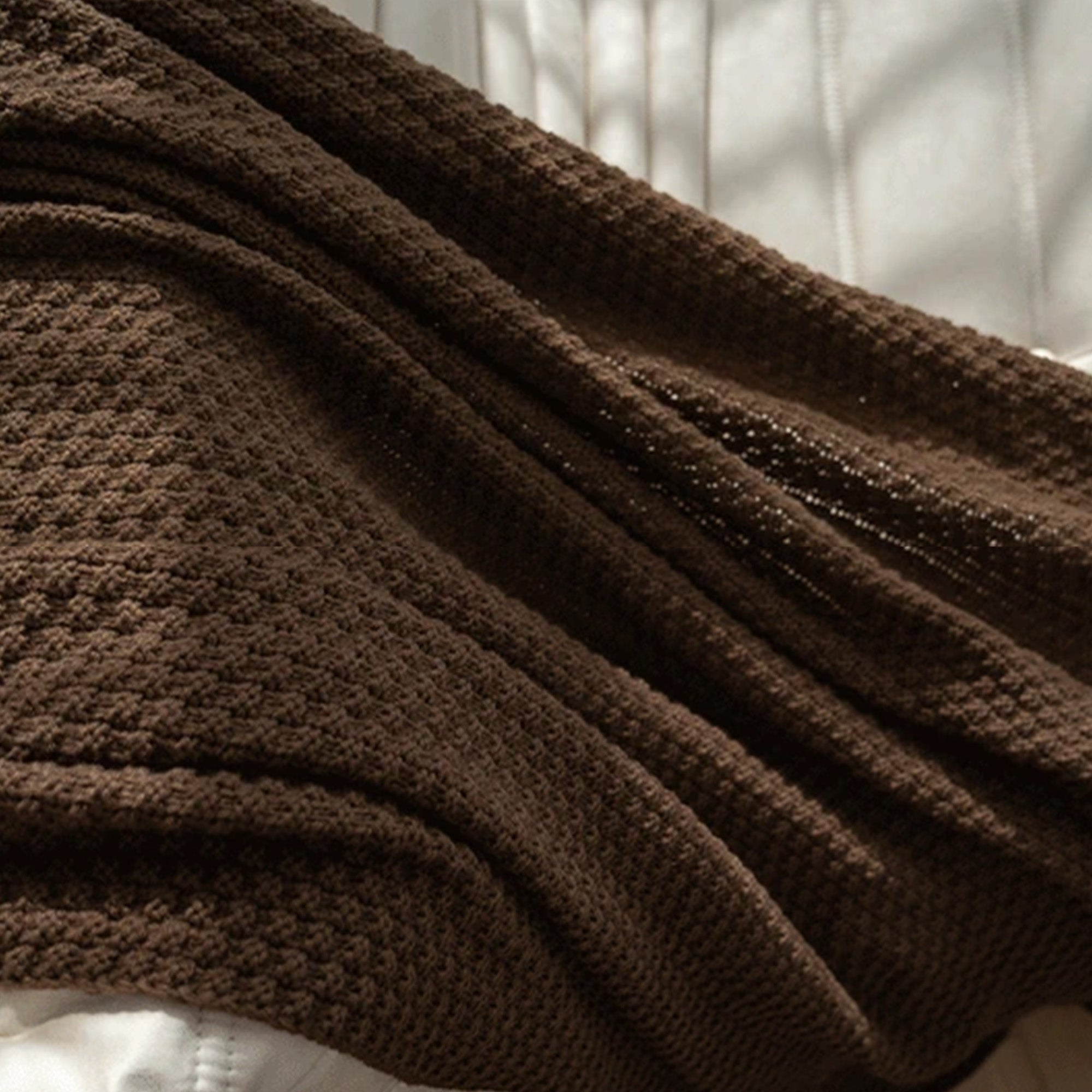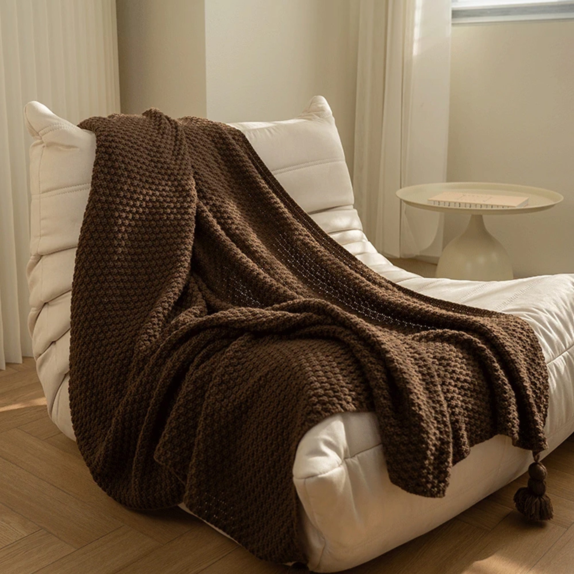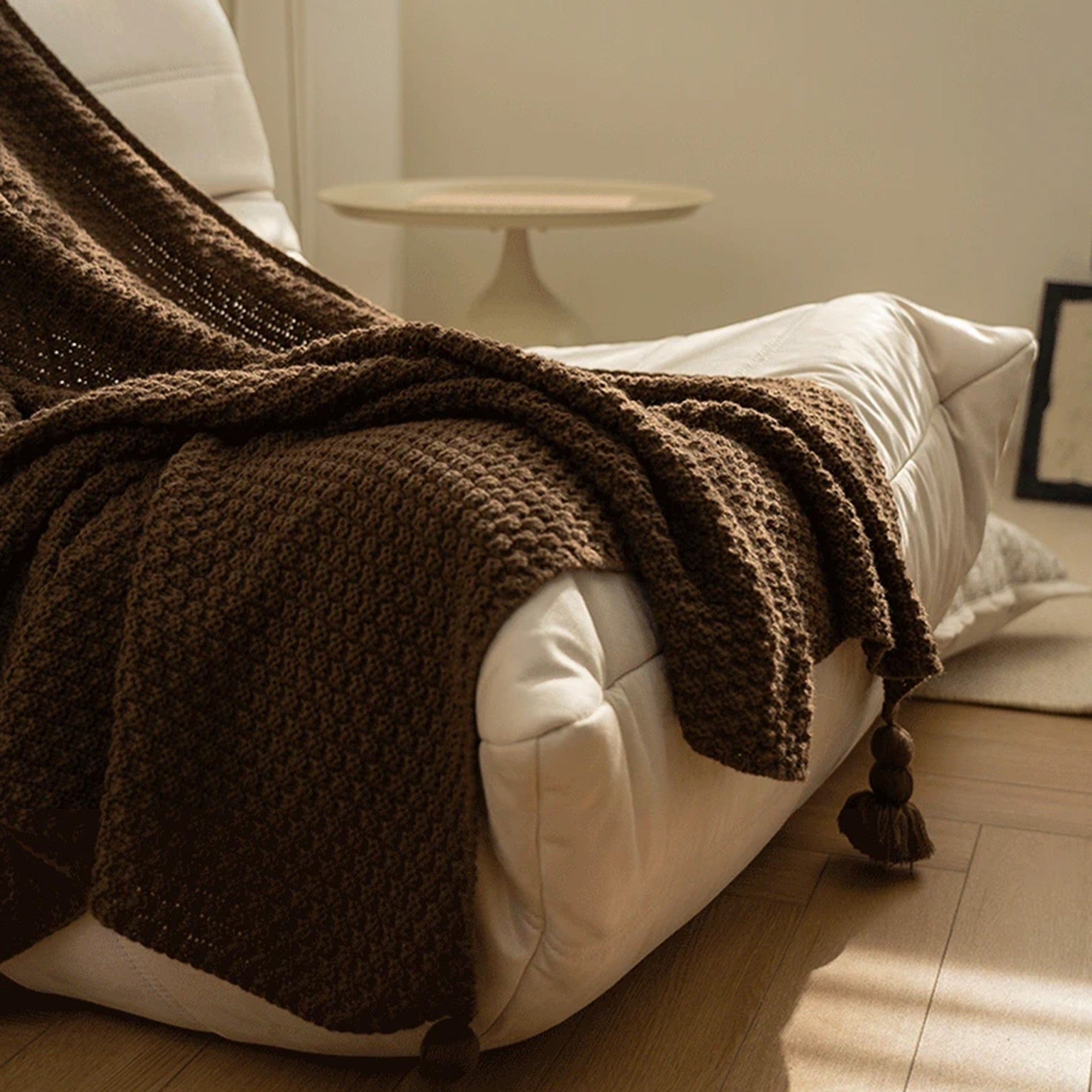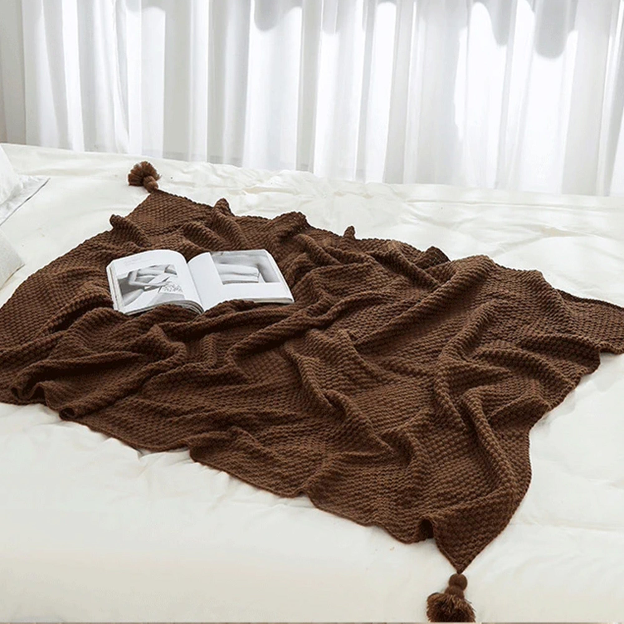 Svep in dig i lyx med vår Norwe Home Waffle Knit Throw Blanket, perfekt för att ge värme och en touch av elegans till vilket rum som helst. Dess rika bruna ton och mysiga, texturerade stickning gör den till ett inbjudande tillskott till din soffa eller favoritläshörna. Med mjuka tofsdetaljer är denna filt lika snygg som den är tröstande, redo att förhöja din avkopplingstid.