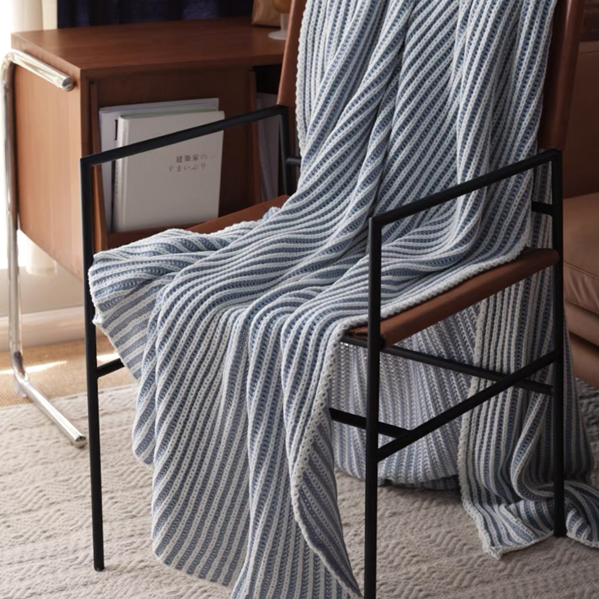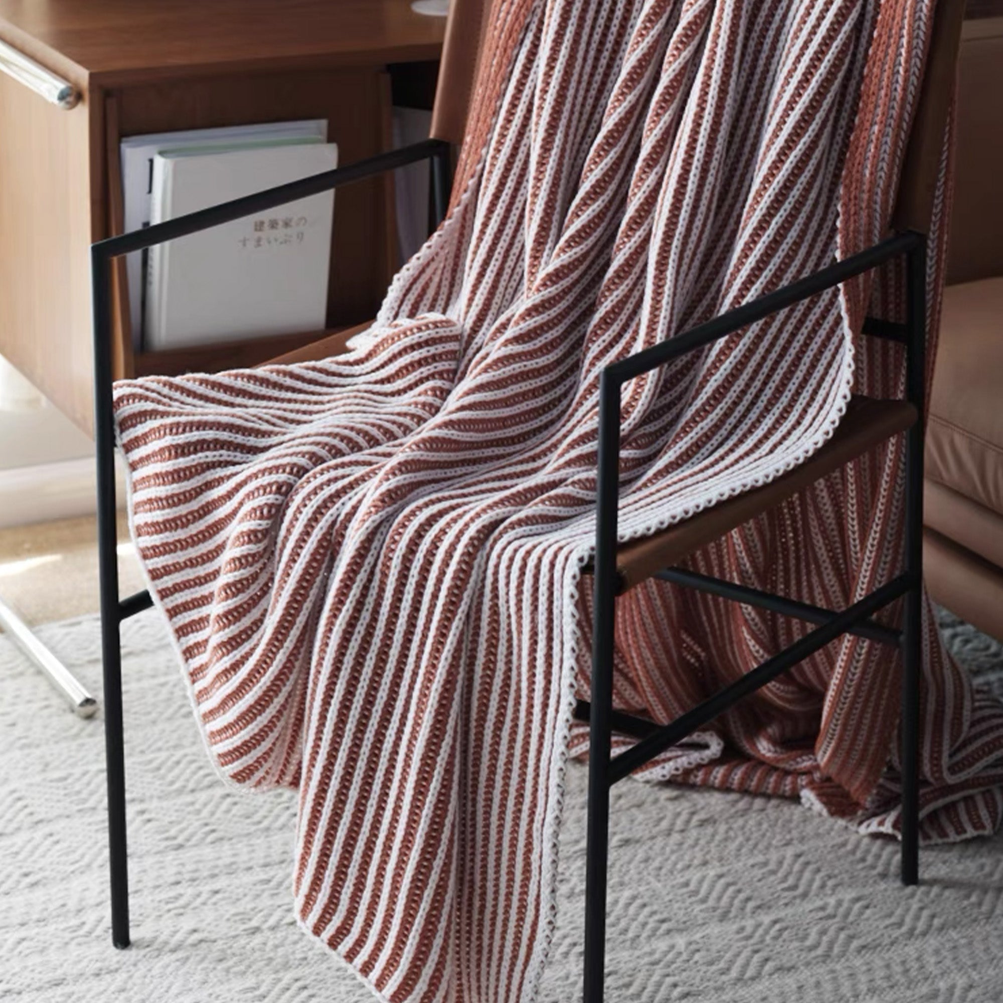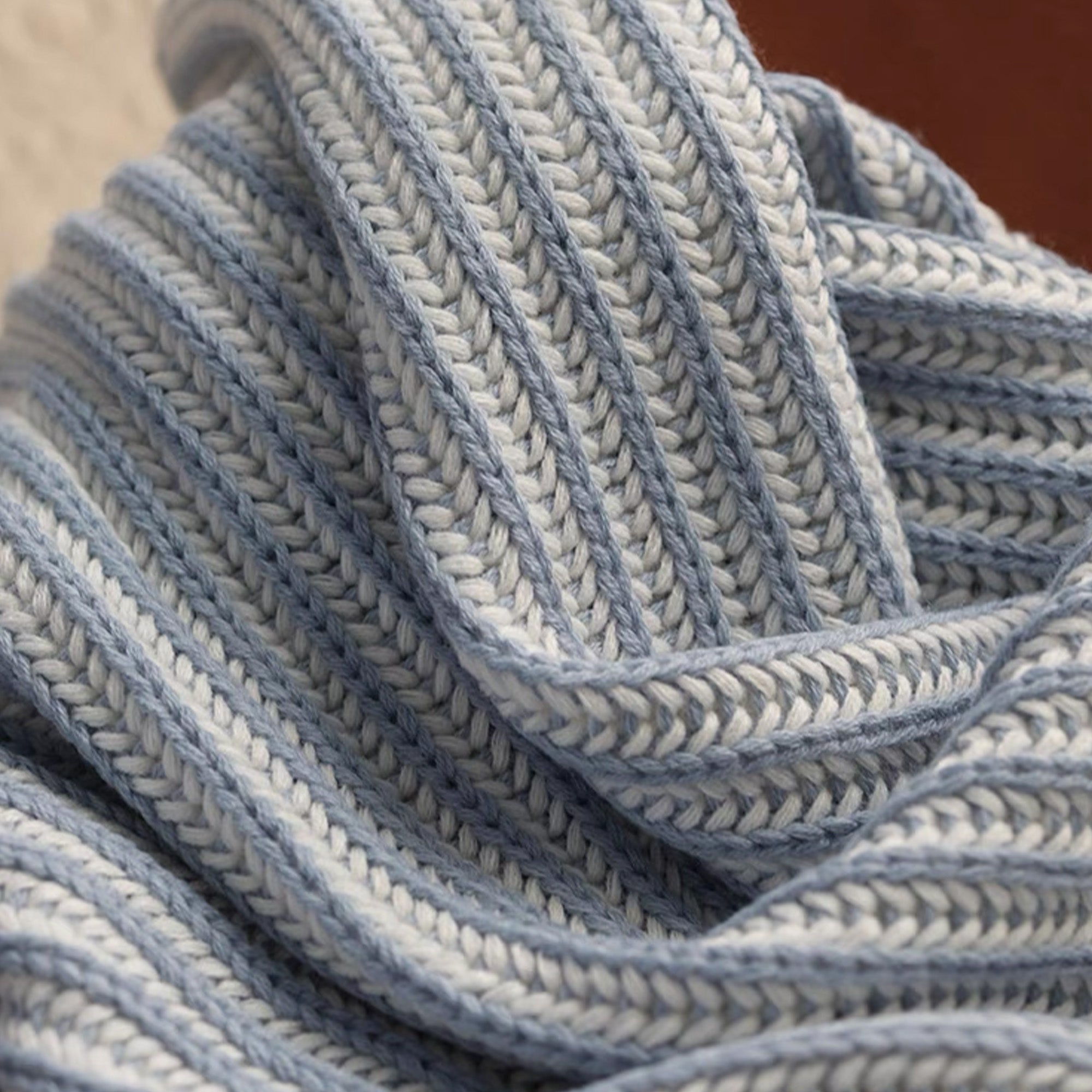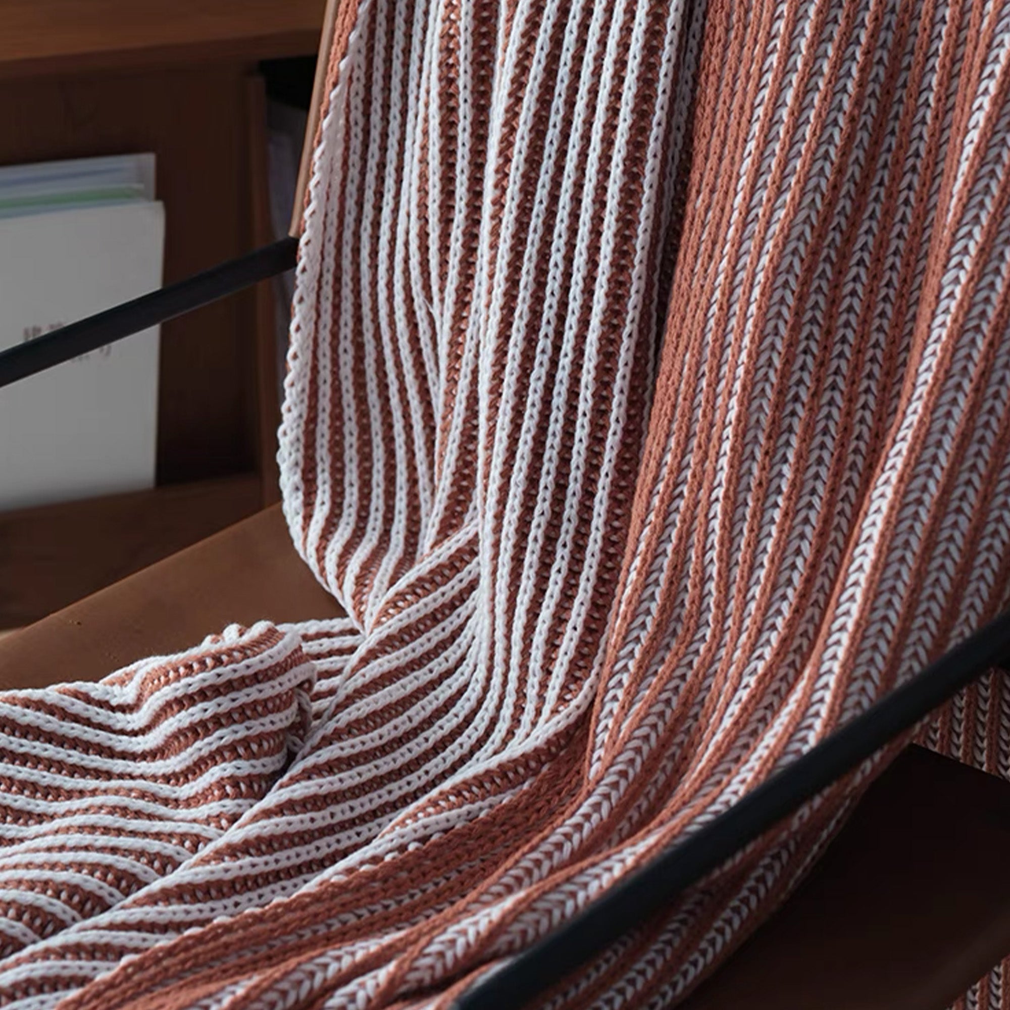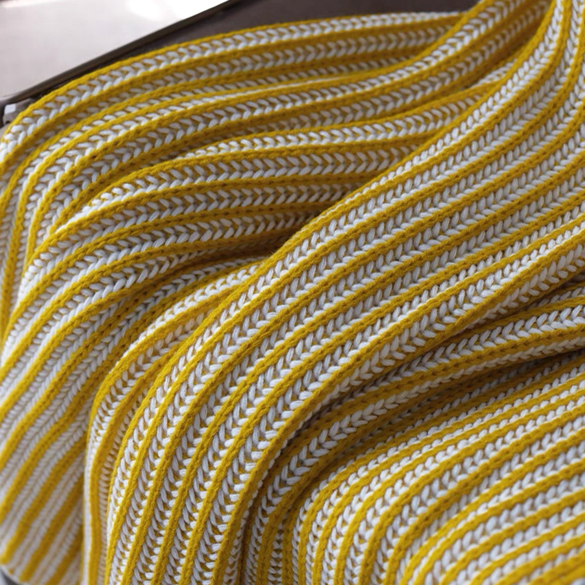 Ljusa upp ditt utrymme med värmen från vår mysiga ribbstickade filt. Denna färgstarka filt har ett unikt tvåfärgat randigt mönster som ger en glad färgklick till vilket rum som helst. Tillverkad av högkvalitativt, mysigt stickat tyg, perfekt att mysa upp under svalare dagar eller drapera över din favoritfåtölj för en elegant accent.