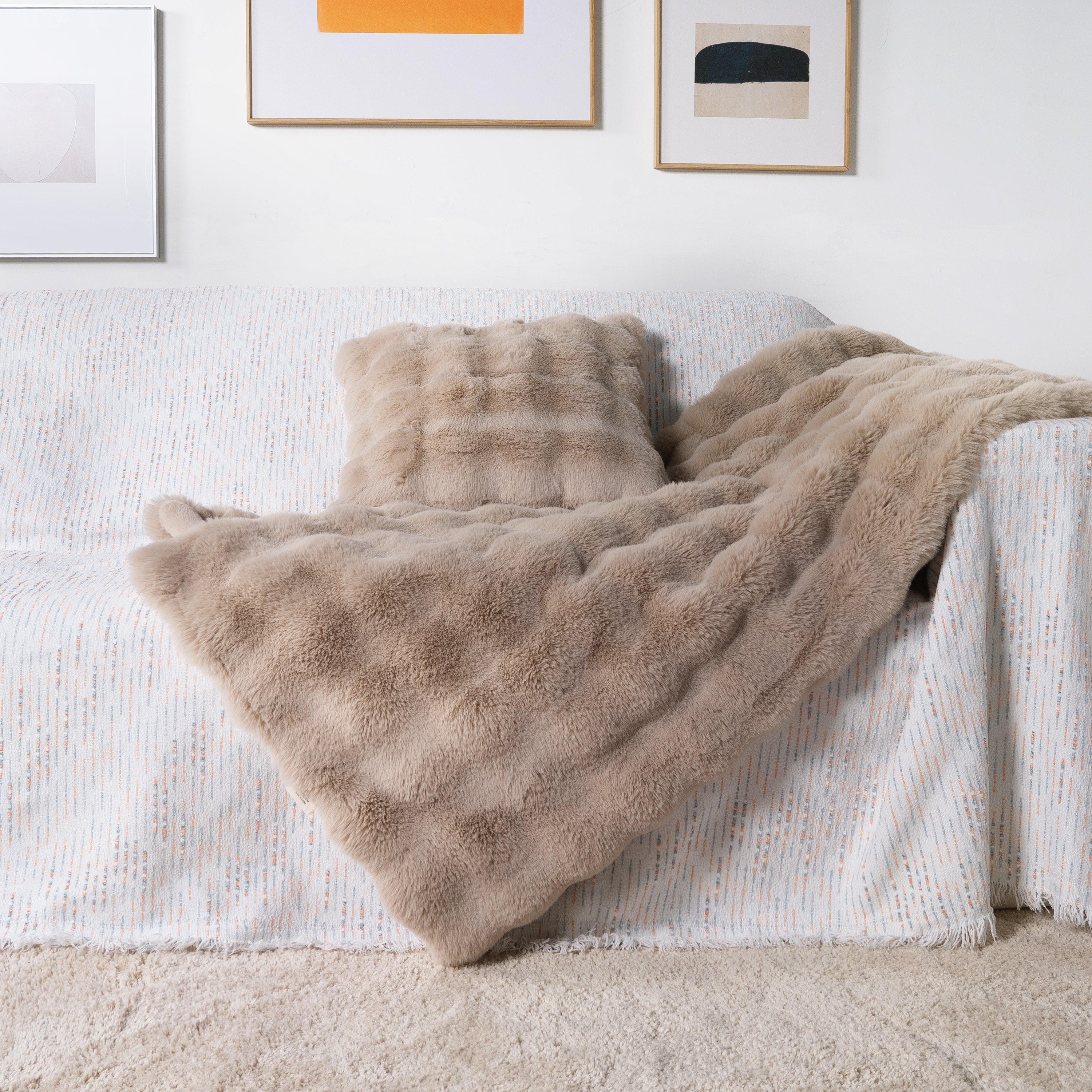 Set med överkast och örngott i fuskpäls - Slutförsäljning