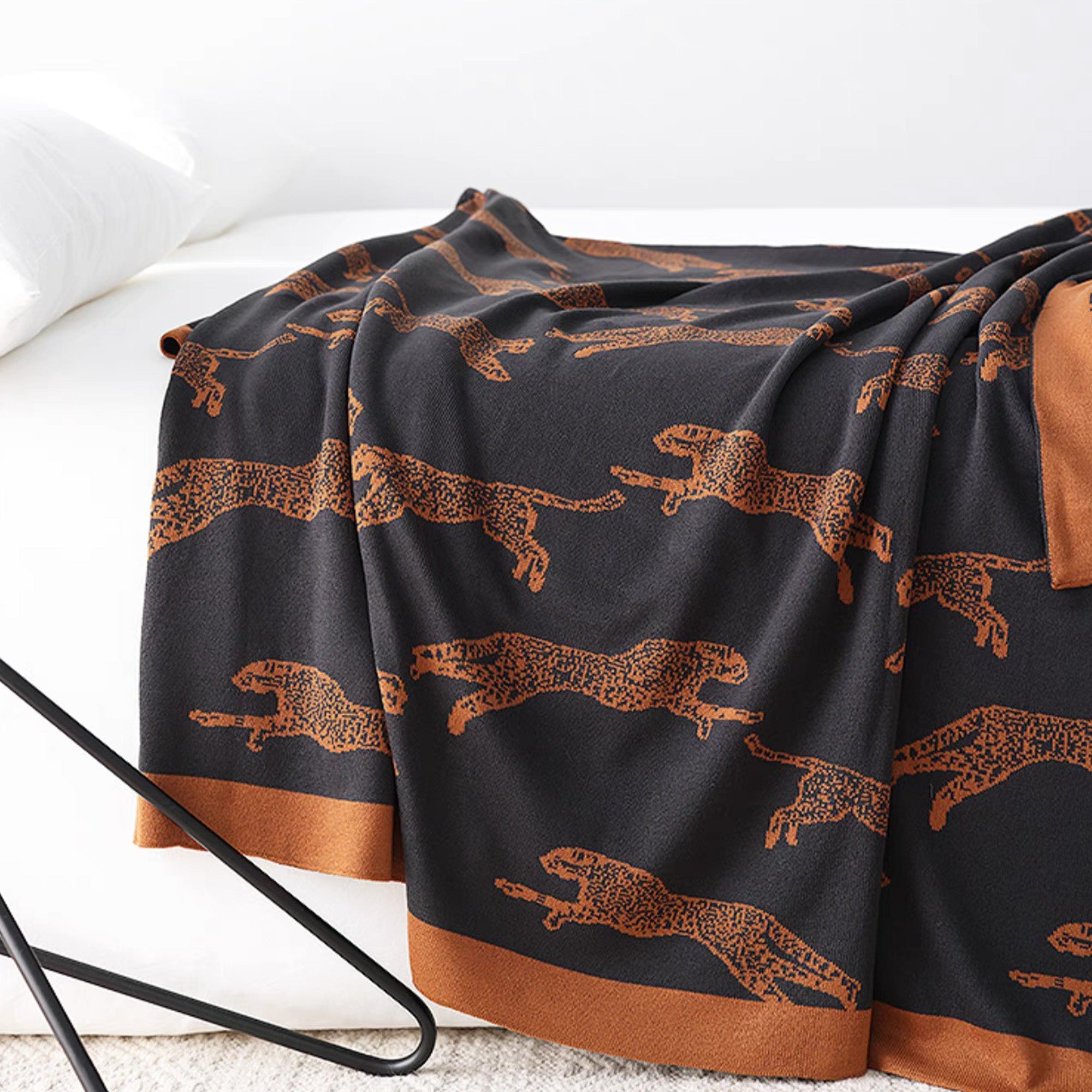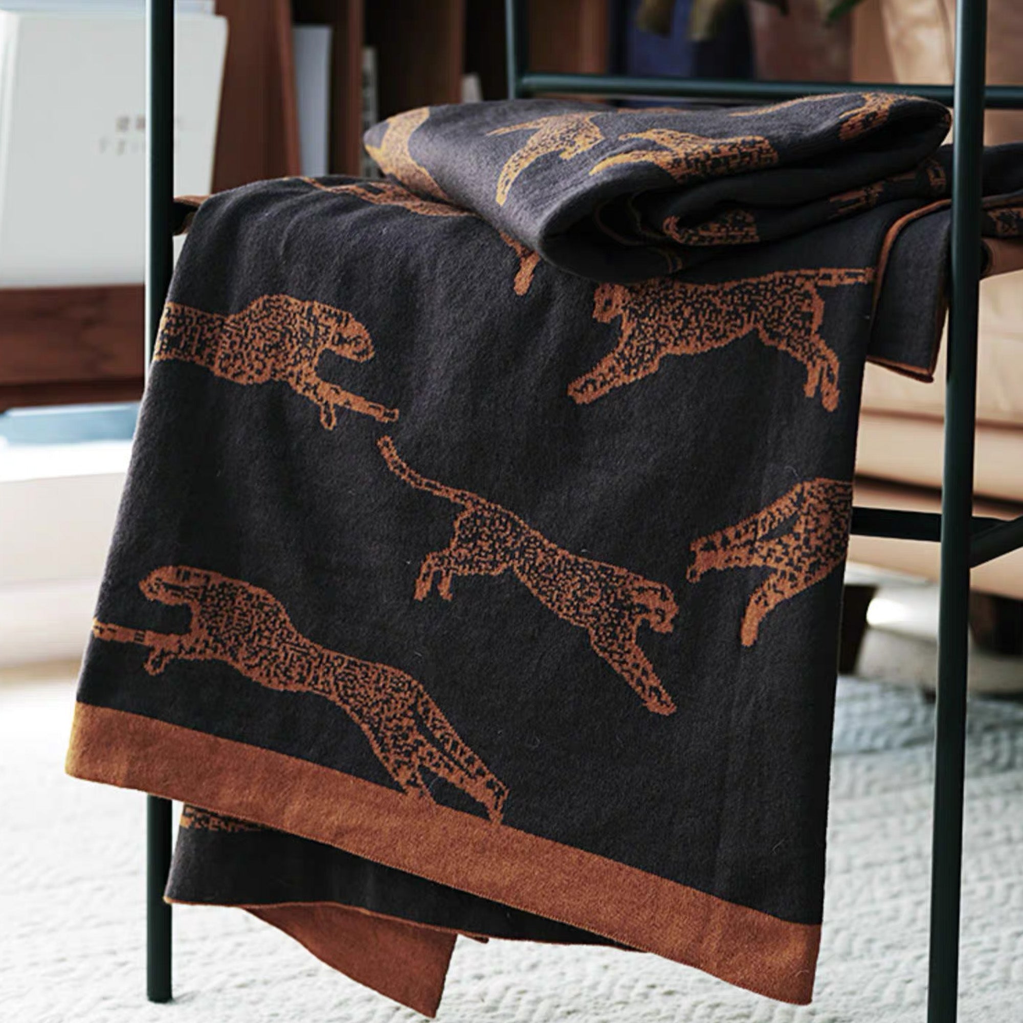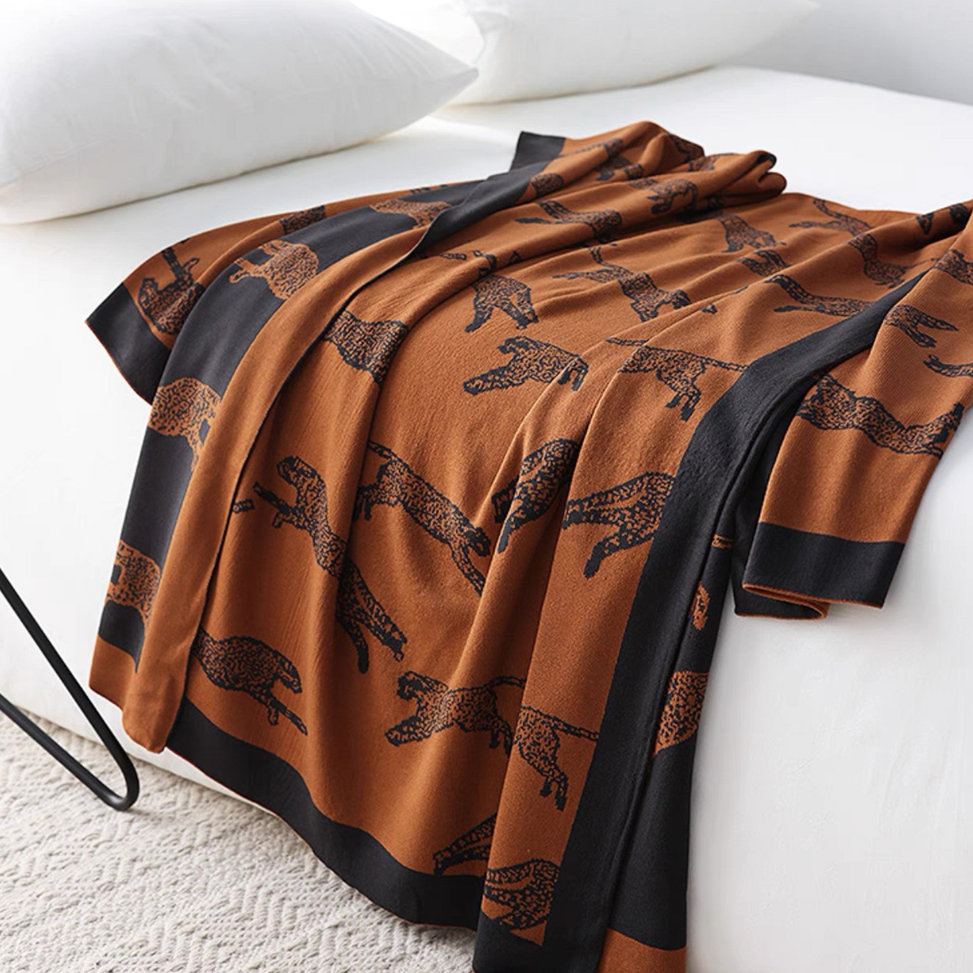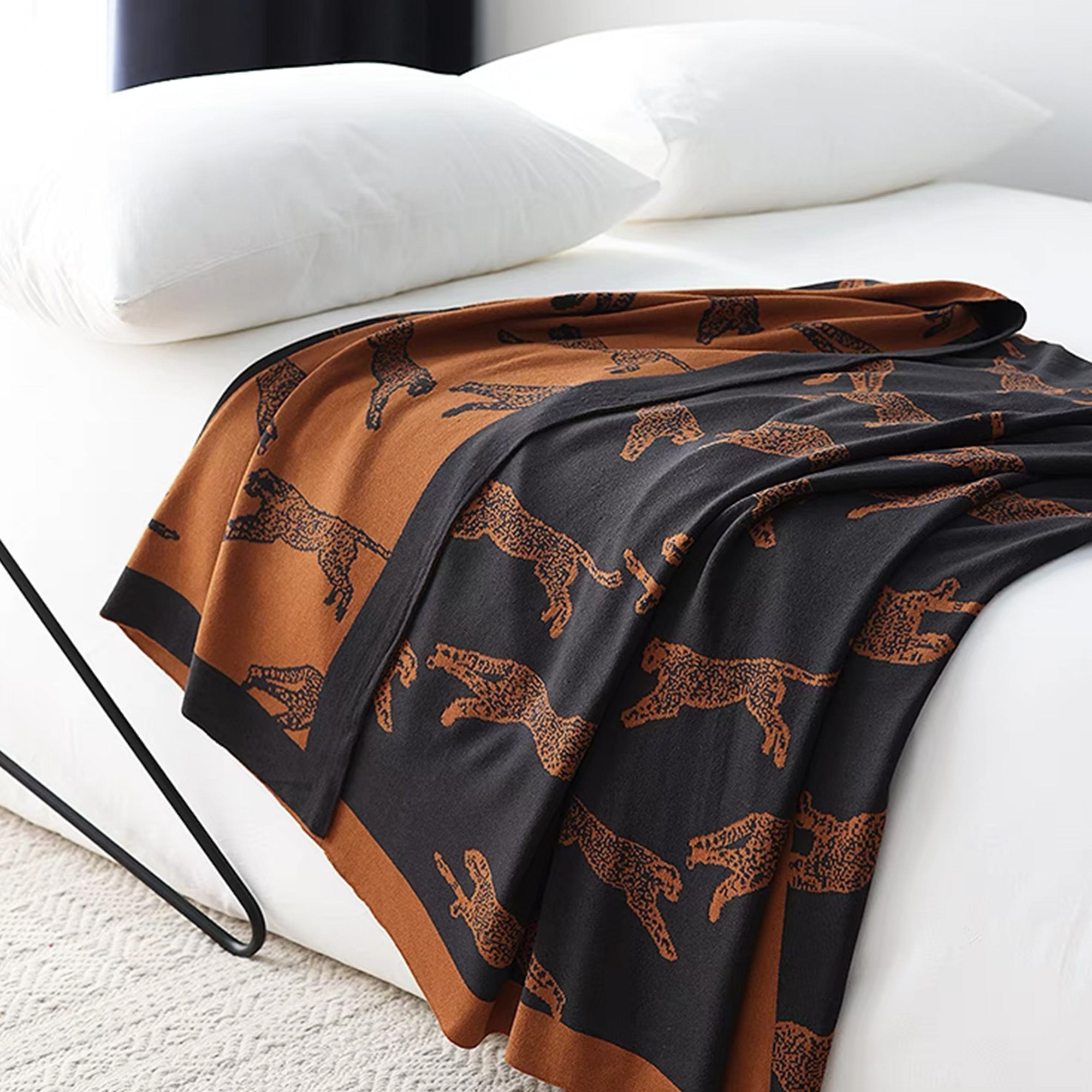 Få in en touch av vildmark i ditt hem med den lyxiga gepardmönstrade filten. Denna djärva filt har ett slående leopardmönster i varma jordnära toner, perfekt för att ge personlighet och stil till vilket utrymme som helst. Tillverkad av mjukt, högkvalitativt tyg, erbjuder den både komfort och visuell tilltalande effekt, vilket gör den till en idealisk accent för din soffa, säng eller läshörna.