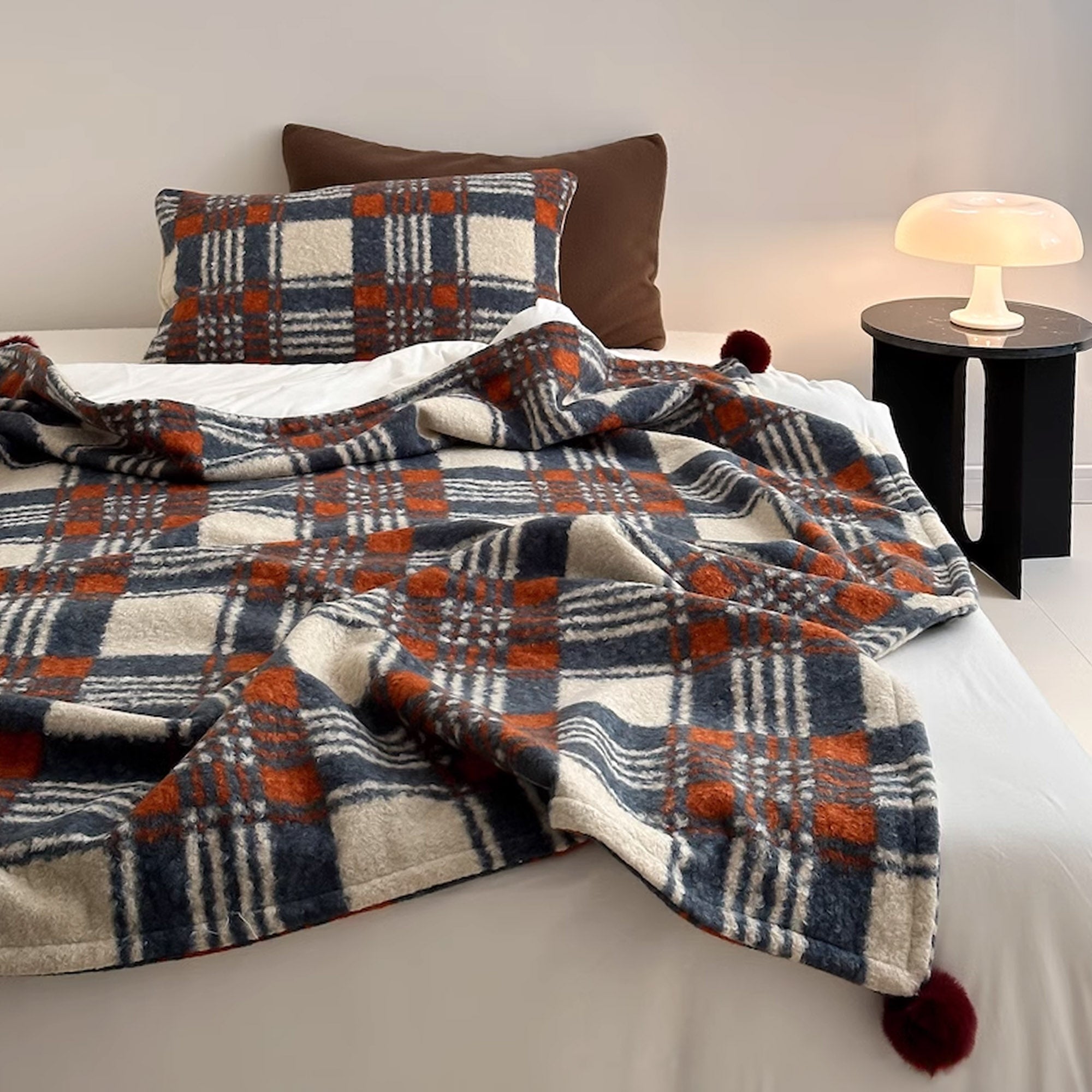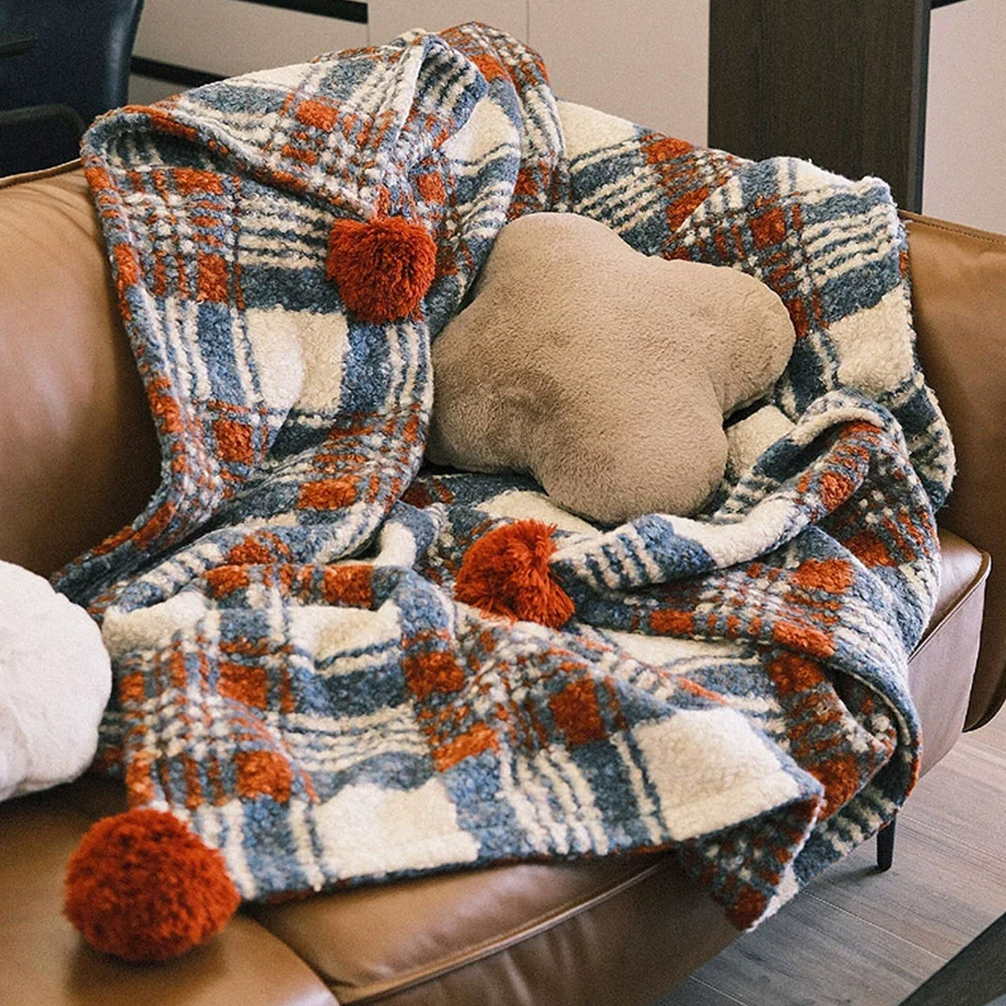 Gör dig redo att mysa med stil med vår lyxiga vintagefilt med mjuk touch. Perfekt för kyliga kvällar eller för att bara ge ditt utrymme en touch av elegans. Denna filt kombinerar tjockt, ultramjukt tyg med en tidlös rutig design. Den varma blandningen av jordnära färger och lekfulla pompomdetaljer ger en touch av vintagecharm till ditt vardagsrum eller sovrum. Tillverkad för både komfort och stil, är den ultimata filten att krypa upp i soffan, drapera över din favoritfåtölj eller lägga till ett extra lager i din säng. Omfamna vintern med värme, sofistikering och lite nostalgisk känsla.