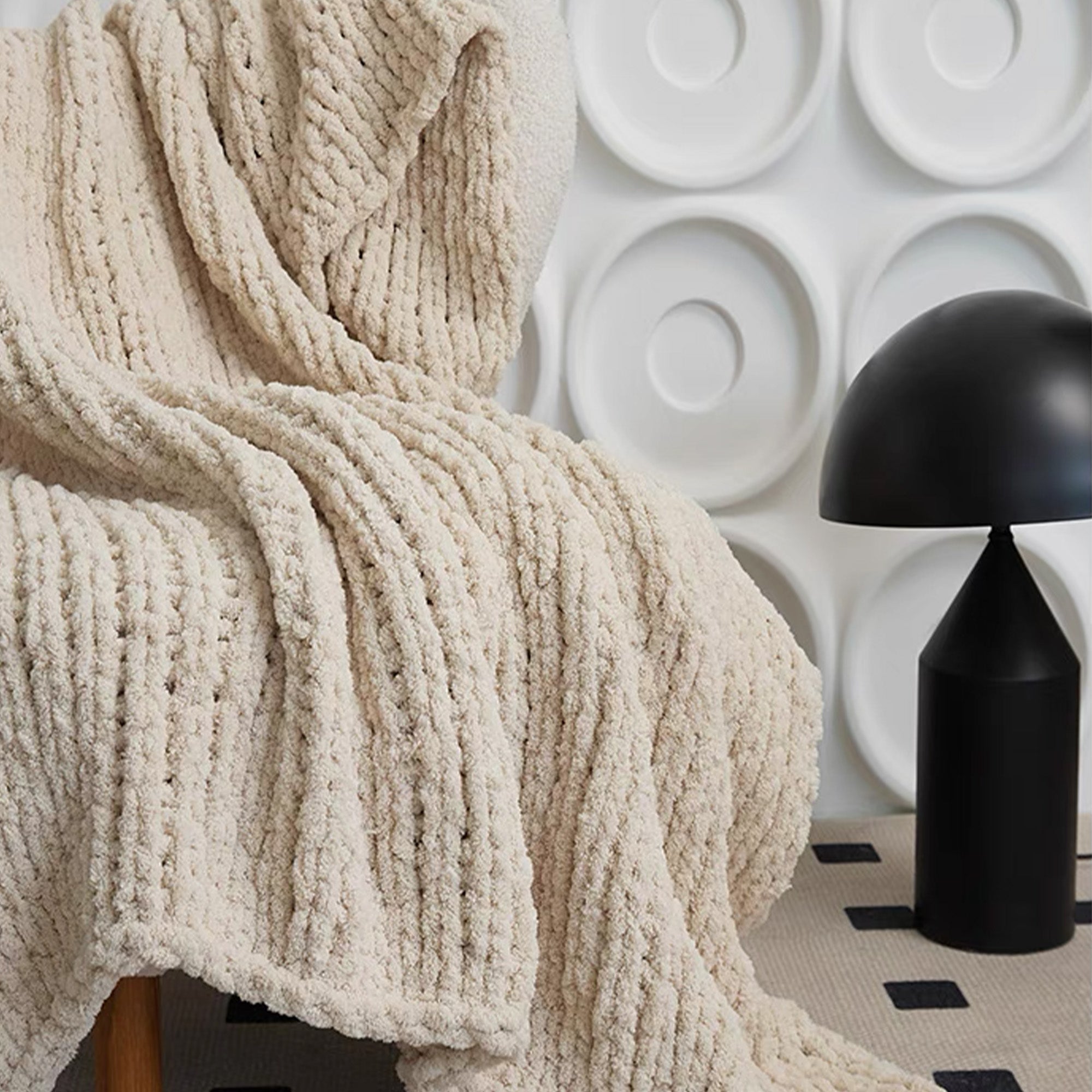 Svep in dig i den inbjudande värmen hos vår ribbade chenillefilt, designad för ren avkoppling och komfort. Denna filt är perfekt för att ge textur och mysighet till vilket rum som helst, med en plyschig känsla som gör den svår att motstå. Oavsett om du kryper ihop dig med en bok eller lägger till en touch i soffan, är detta pläd ditt val för mjuka, eleganta lager-på-lager-klädnader.