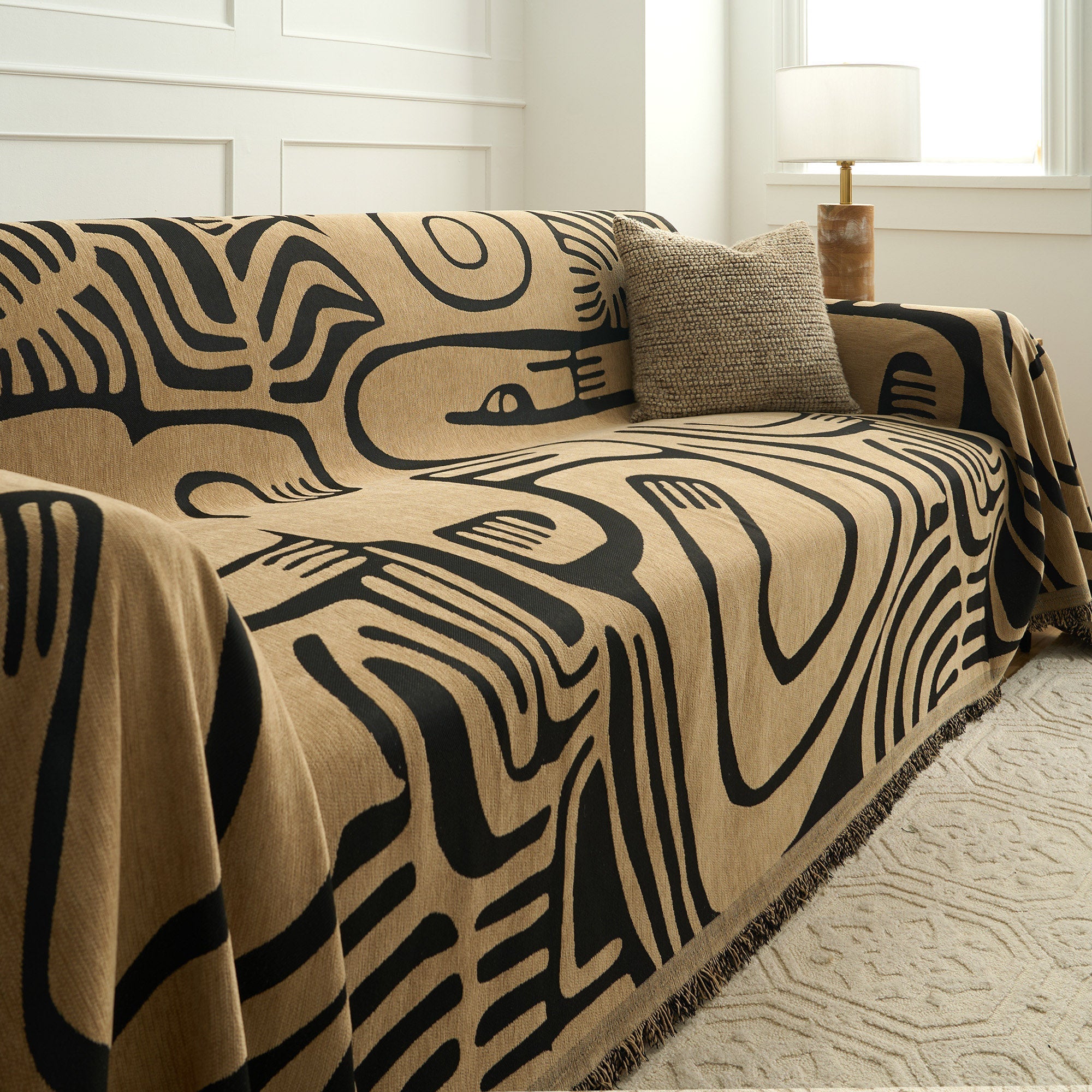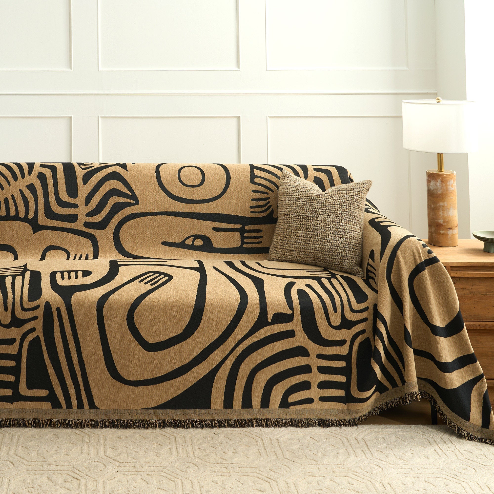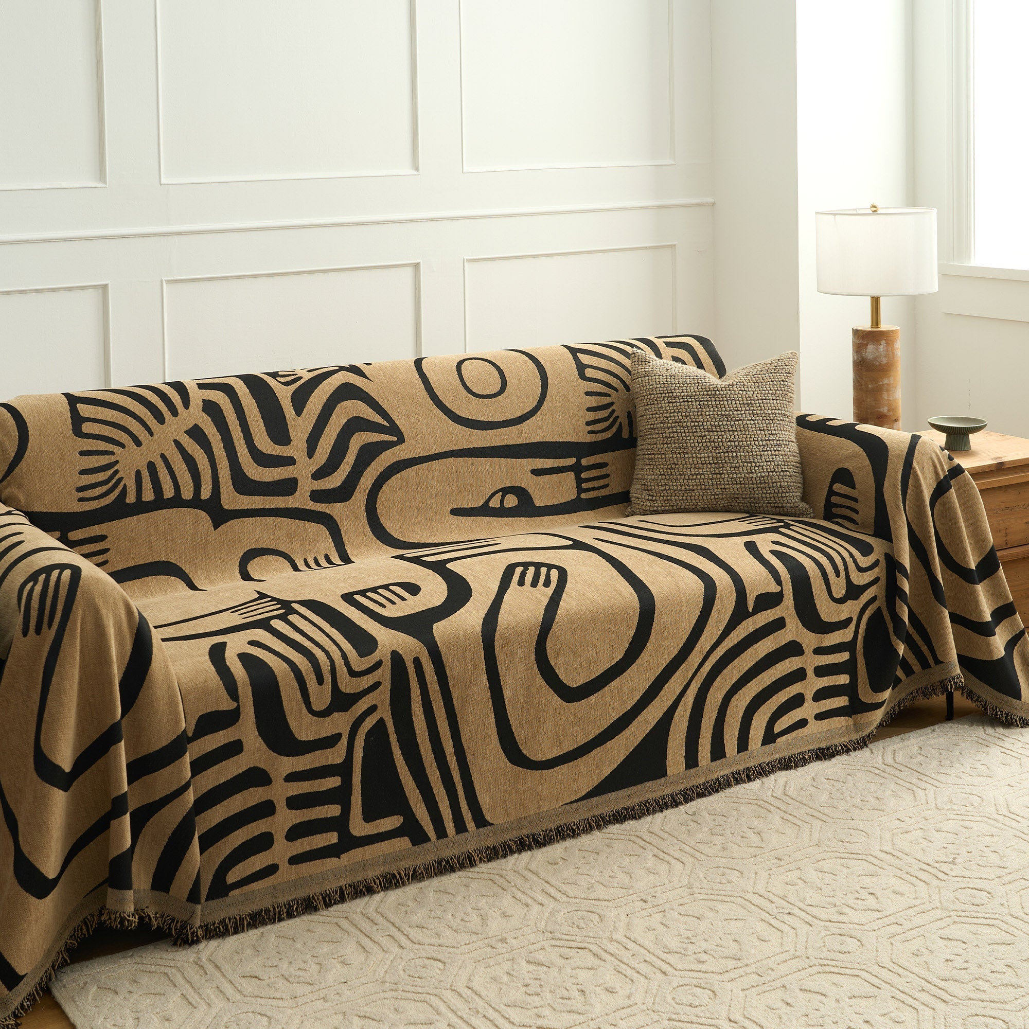 Ge ditt vardagsrum en konstnärlig touch med det moderna tribal-sofföverdraget. Med djärva, abstrakta mönster i naturliga och svarta toner ger detta överdrag en organisk, tribal-inspirerad känsla till din inredning. Tillverkat av högkvalitativt, mjukt tyg skyddar det inte bara din soffa utan förstärker även den estetiska dragningskraften i alla rum. Perfekt för moderna, bohemiska och eklektiska utrymmen.