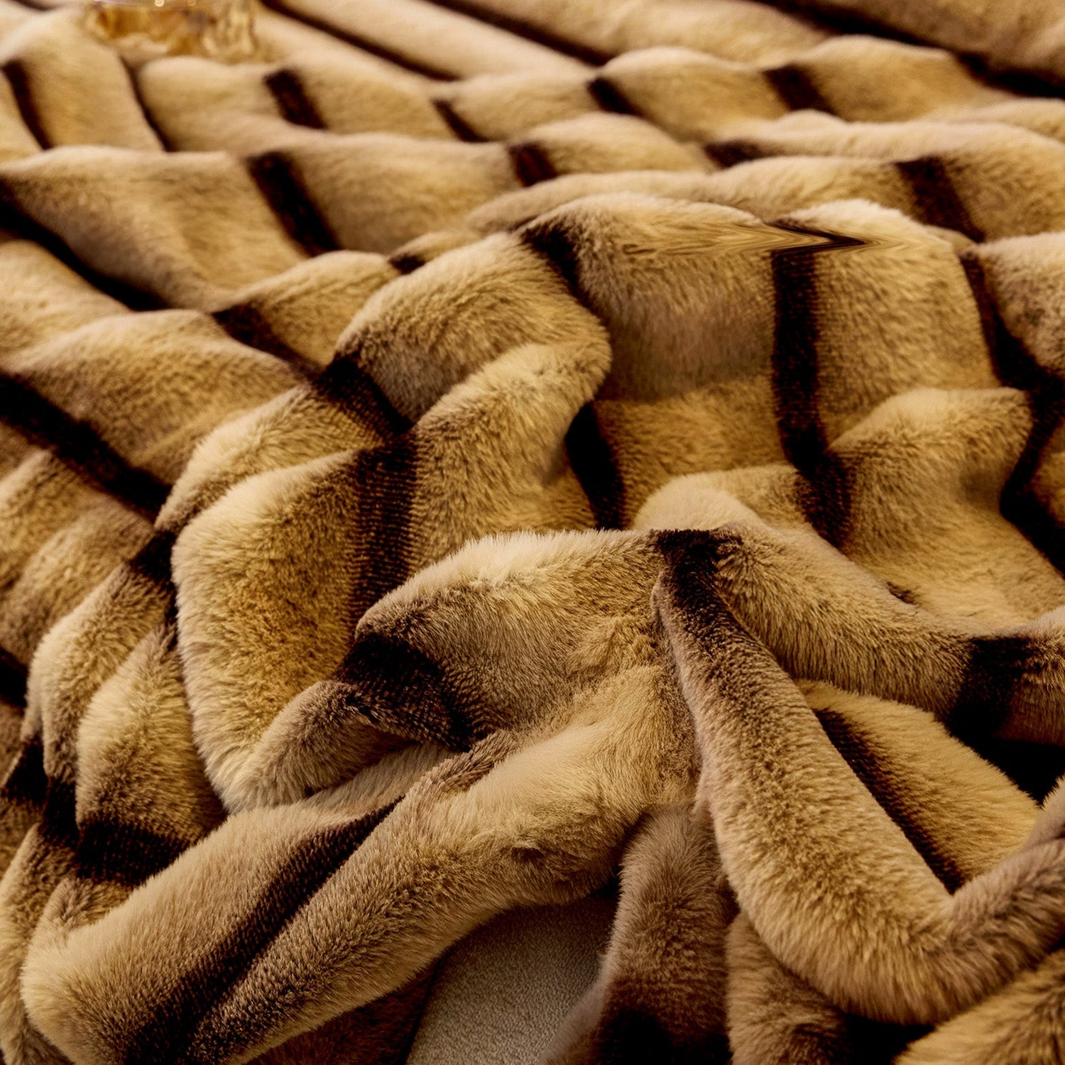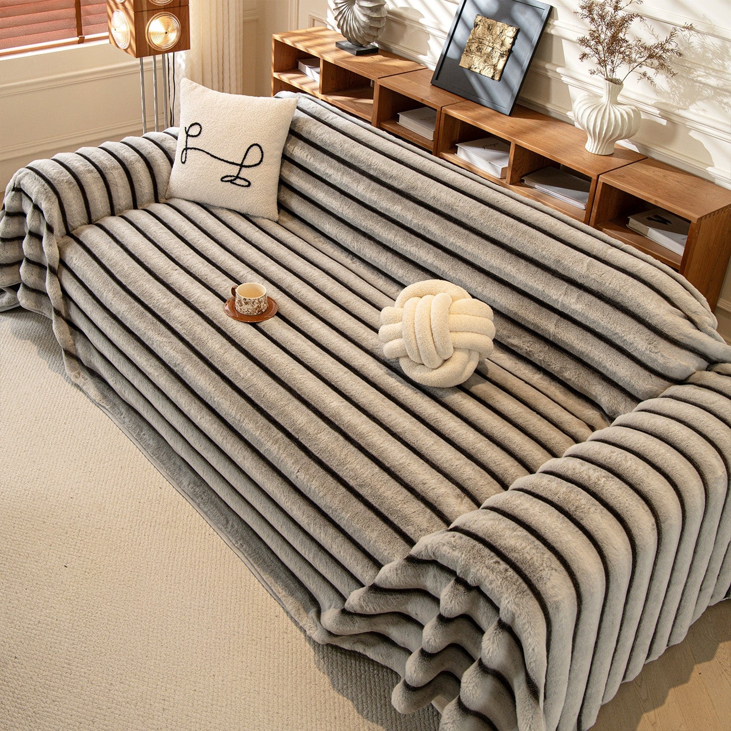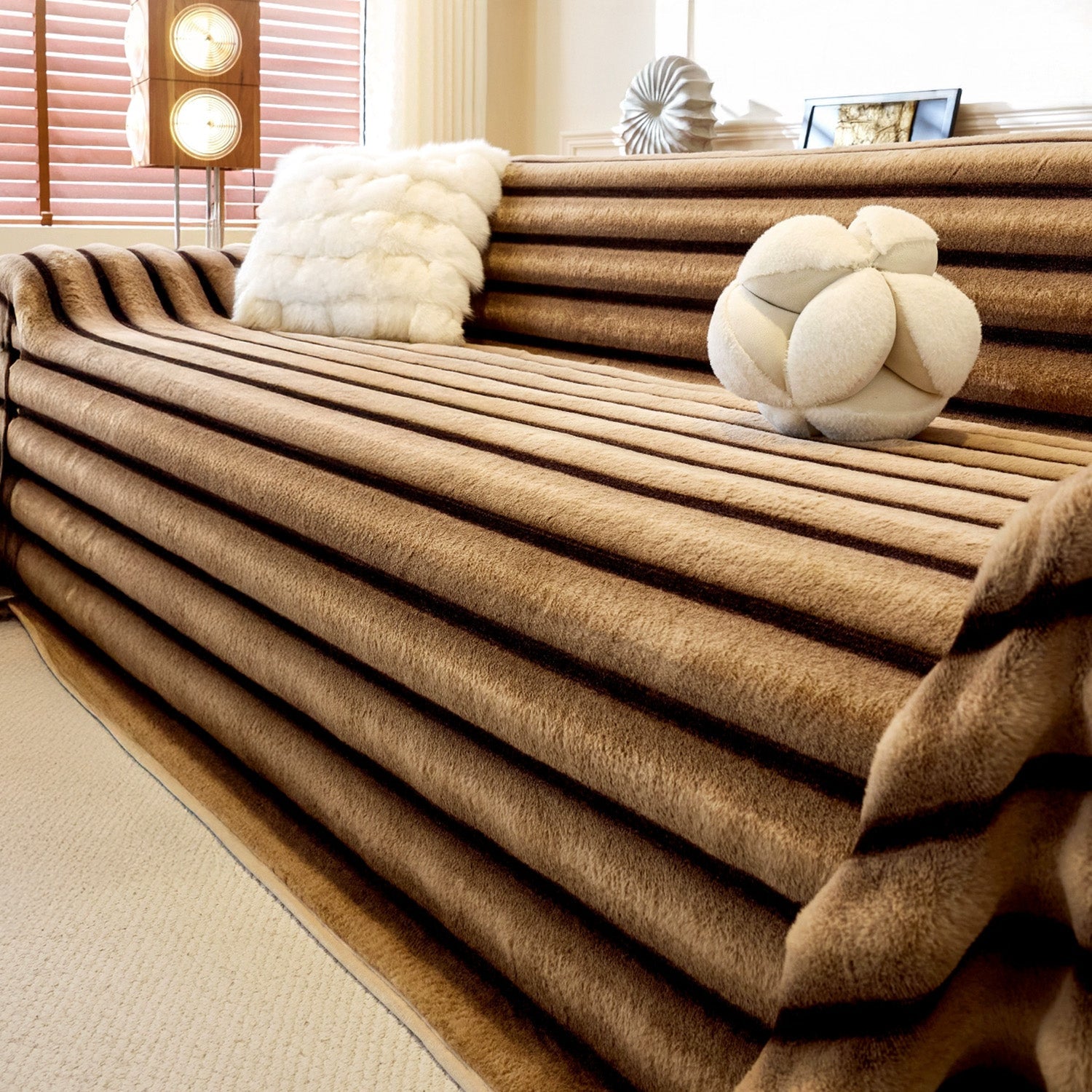 Extra stort lyxigt randigt sofföverdrag i fuskpäls