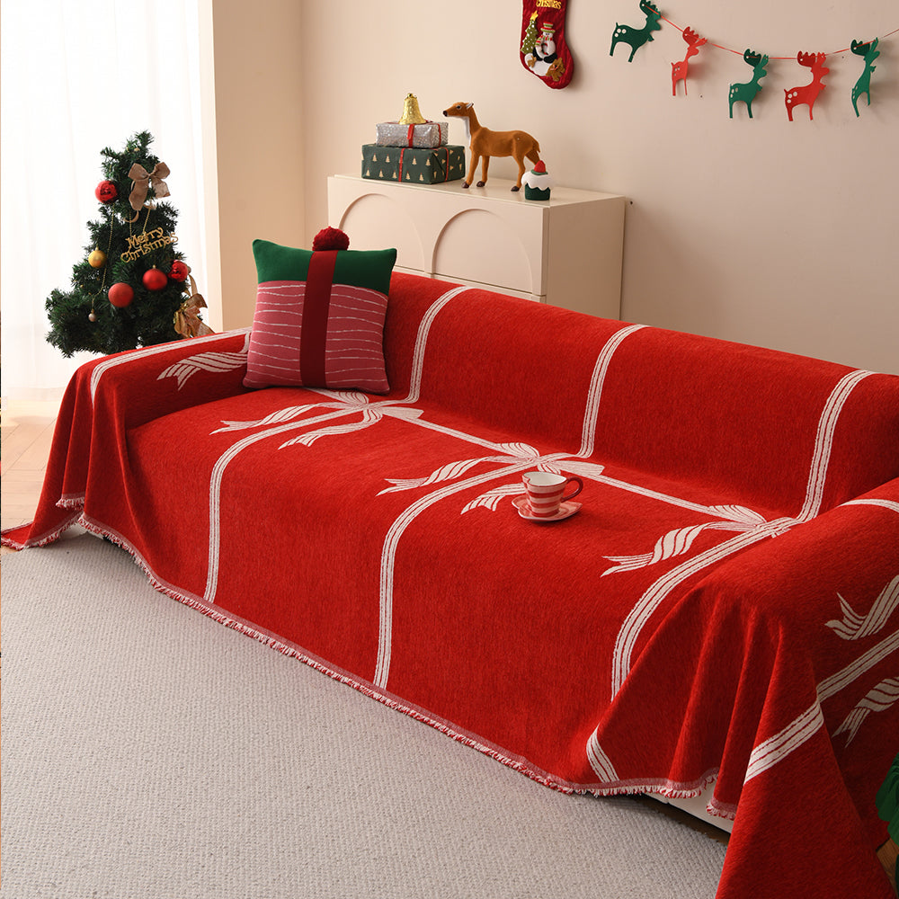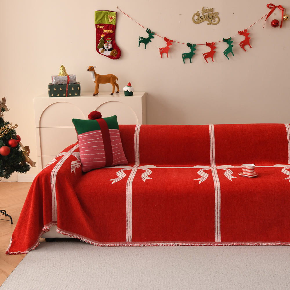 Ge ditt hem festlig värme och elegans med vårt reptåliga sofföverdrag i Festive Ribbon Chenille. Designat med ett charmigt bandinspirerat julmotiv förvandlar detta överdrag omedelbart ditt vardagsrum med julstämning. Tillverkat av mjukt, slitstarkt och husdjursvänligt chenilletyg erbjuder det både komfort och pålitligt skydd mot fläckar, husdjurspäls och repor.