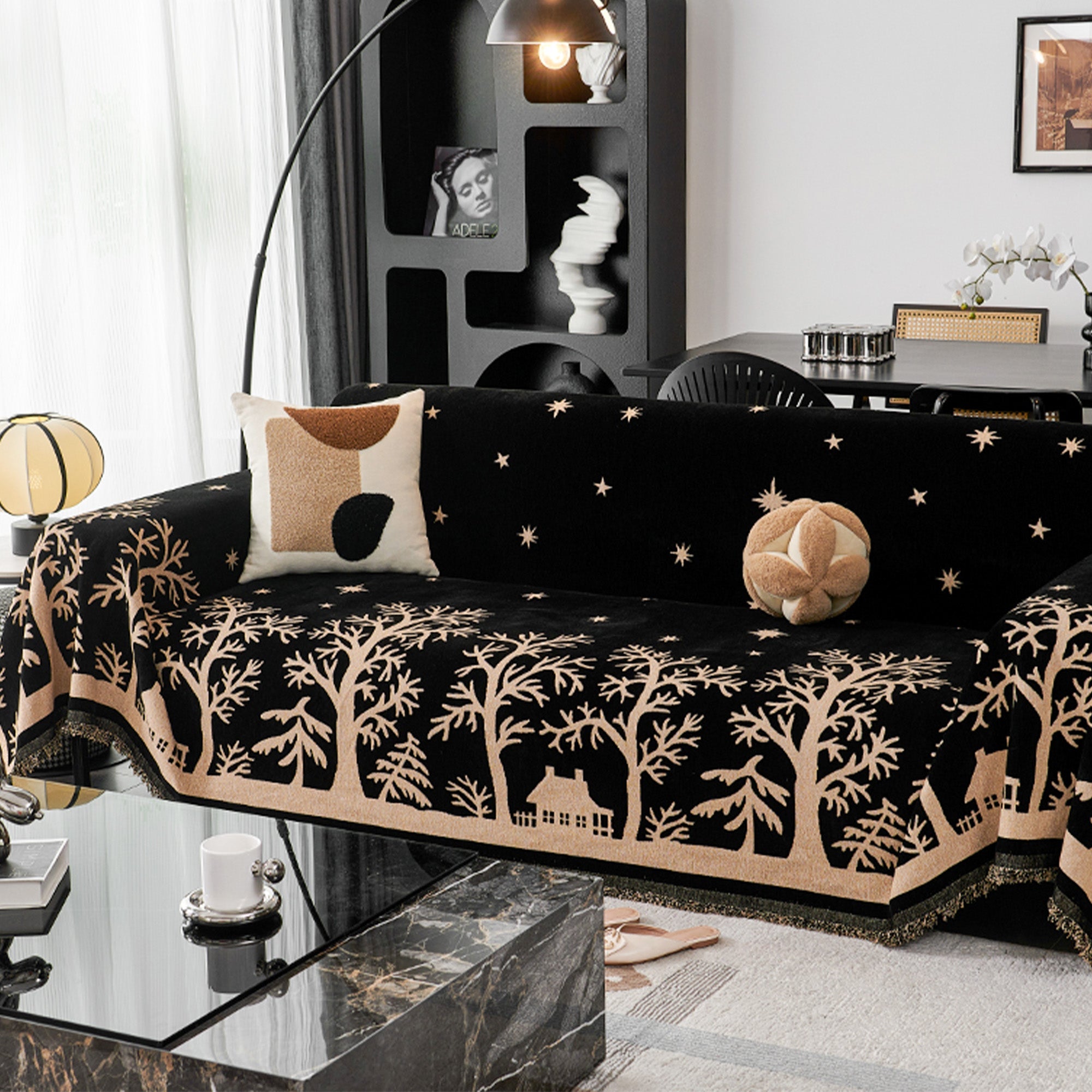 Förvandla din soffa till ett skogsunderland med sofföverdraget Forest Night Sky. Detta sofföverdrag är utformat för att blanda konstnärlighet och praktiskhet och är den ultimata lösningen för att skydda dina möbler samtidigt som det ger en touch av elegans. Med en lugn skogssilhuett under en stjärnhimmel skapar överdraget en lugnande atmosfär i alla vardagsrum.