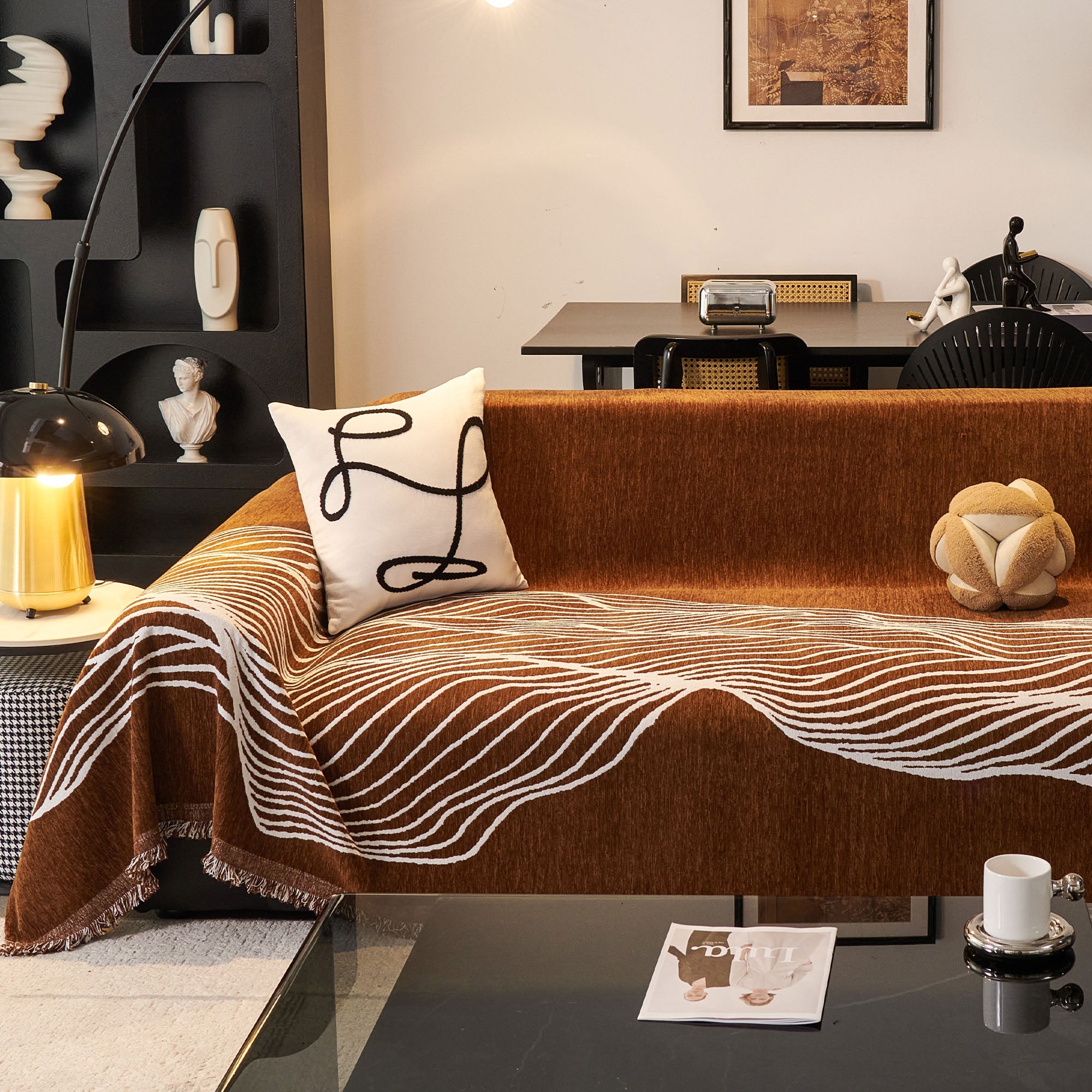 Sofföverdraget Waveline Harmony hämtar inspiration från vågornas mjuka rörelser och sveper in dina möbler i mjuk, böljande elegans. Med sin rika textur och minimalistiska design ger det en varm, modern touch som känns både raffinerad och inbjudande.