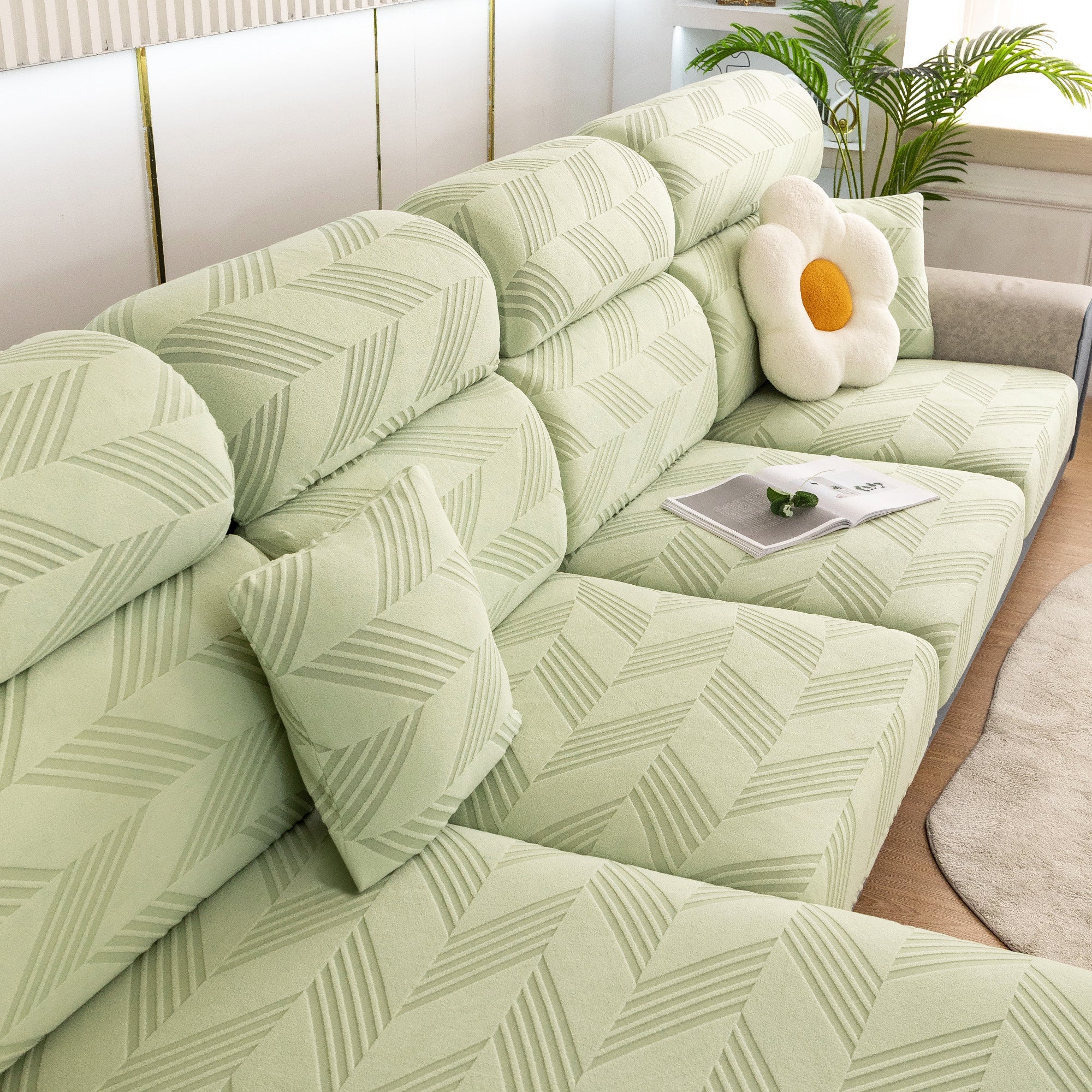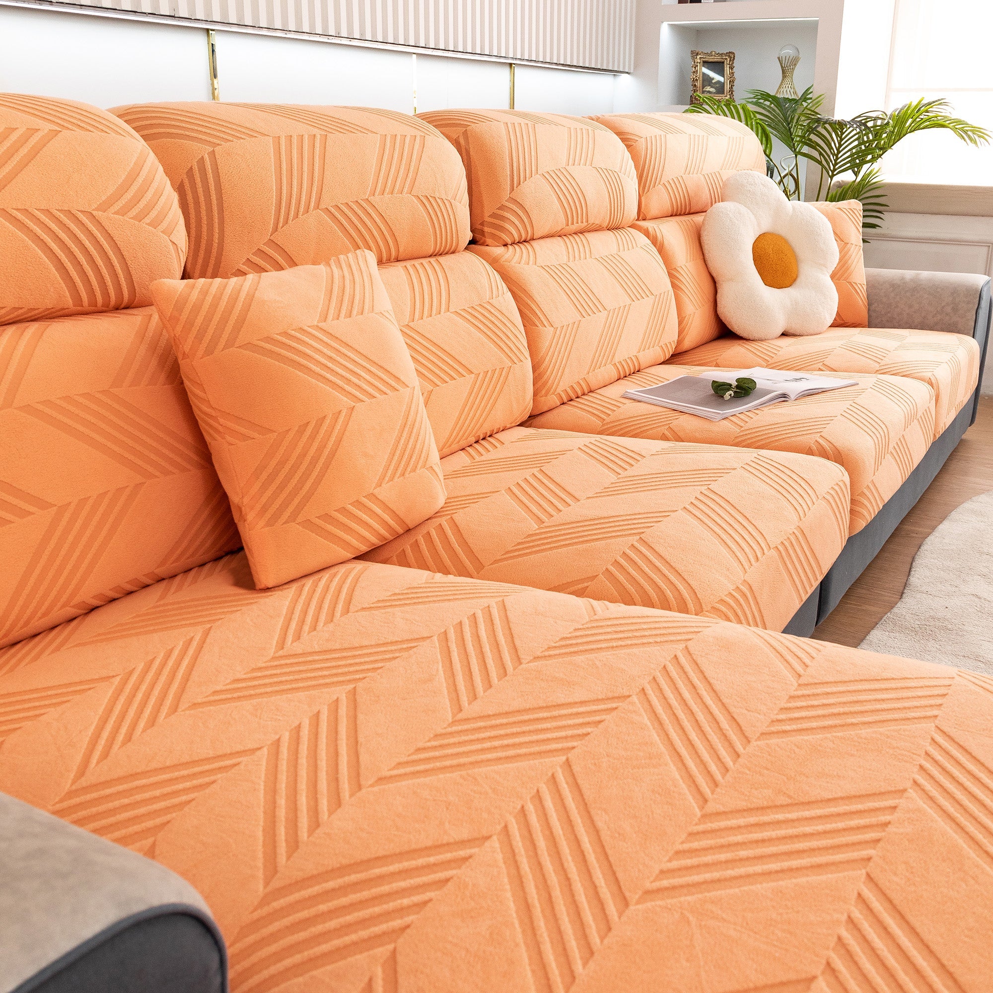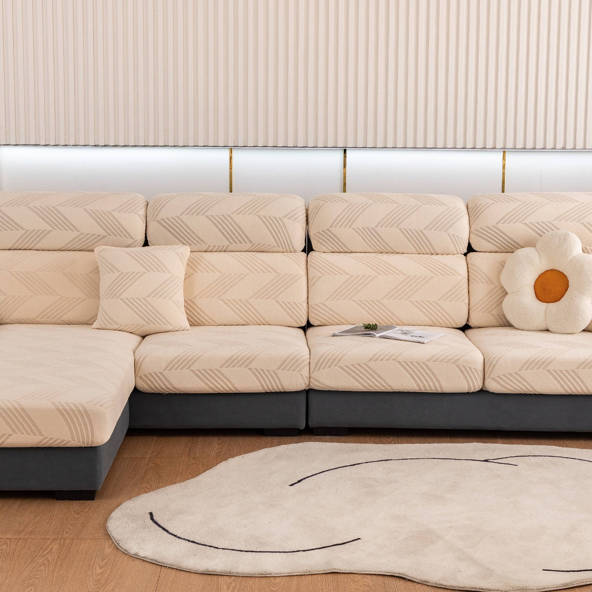 Skydda din soffa bekvämt och elegant med vårt helt nya ChevronEase Jacquard Stretch-sofföverdrag – tillverkat med hantverksskicklighet, designat för verkliga livet. Oavsett om dina husdjur hoppar, slappar eller klöser, ger detta heltäckande överdrag enkelt skydd med en förfinad estetik.