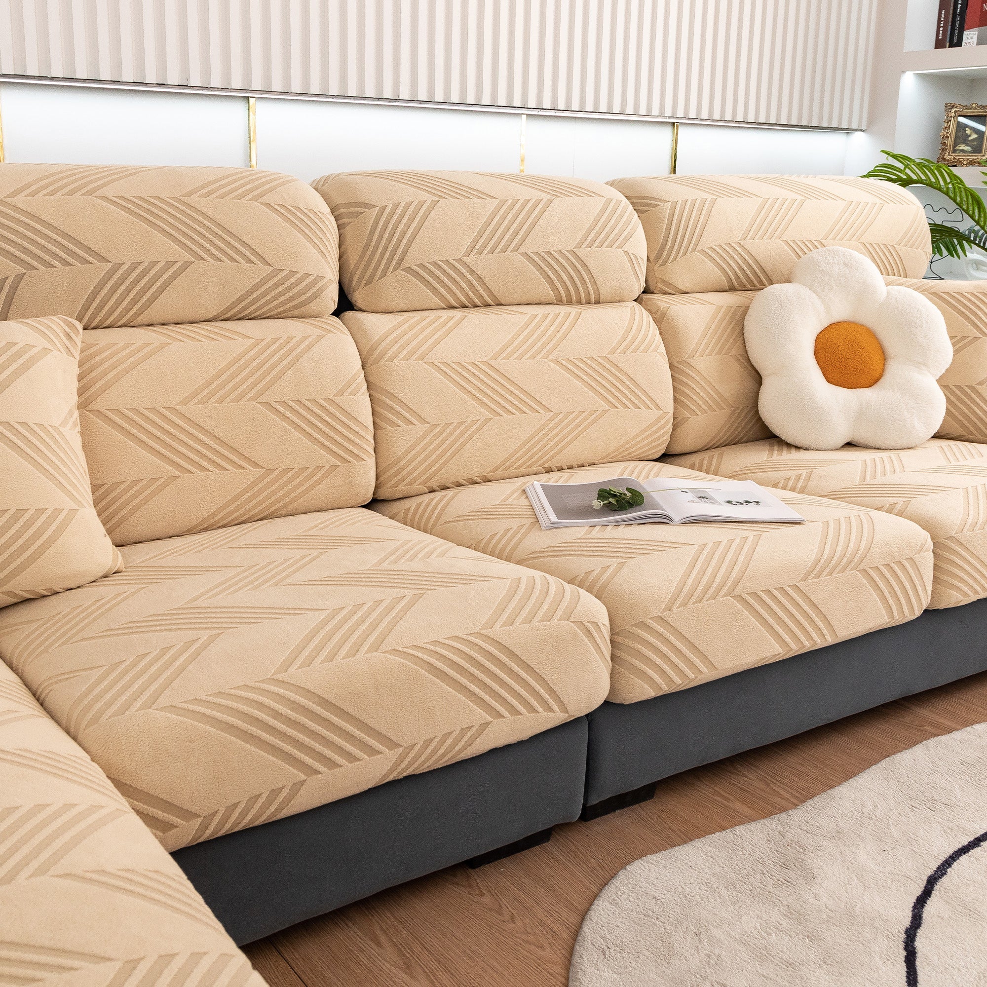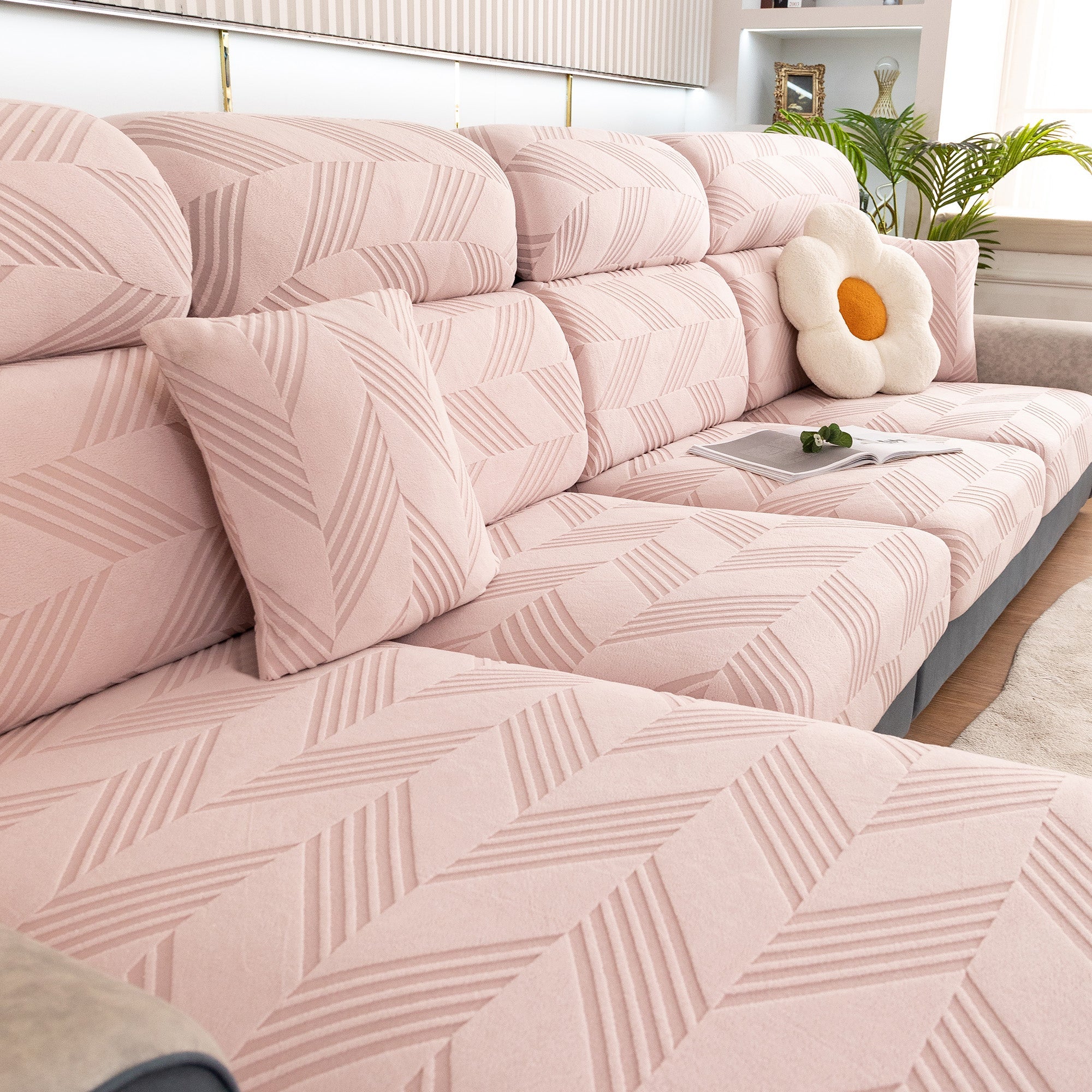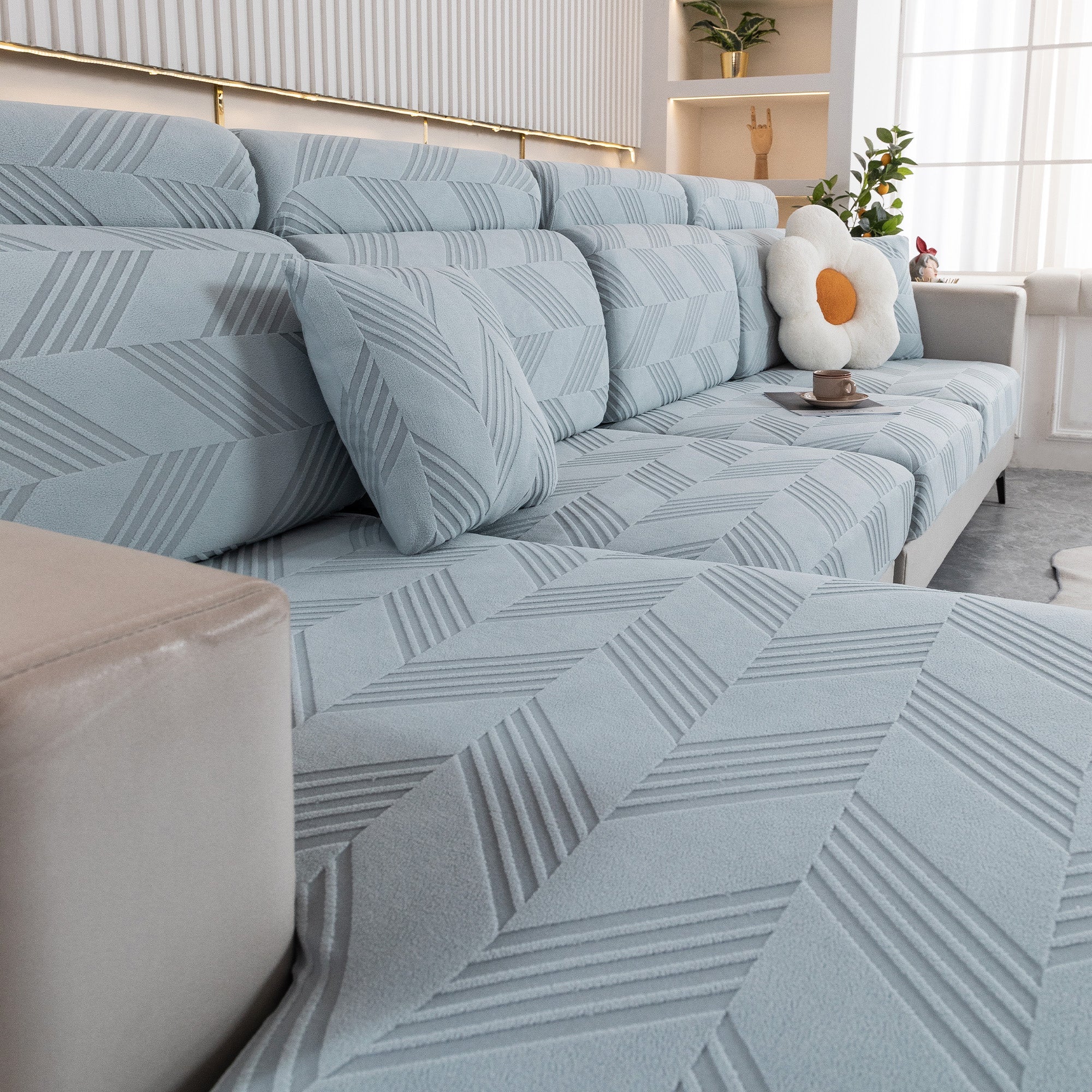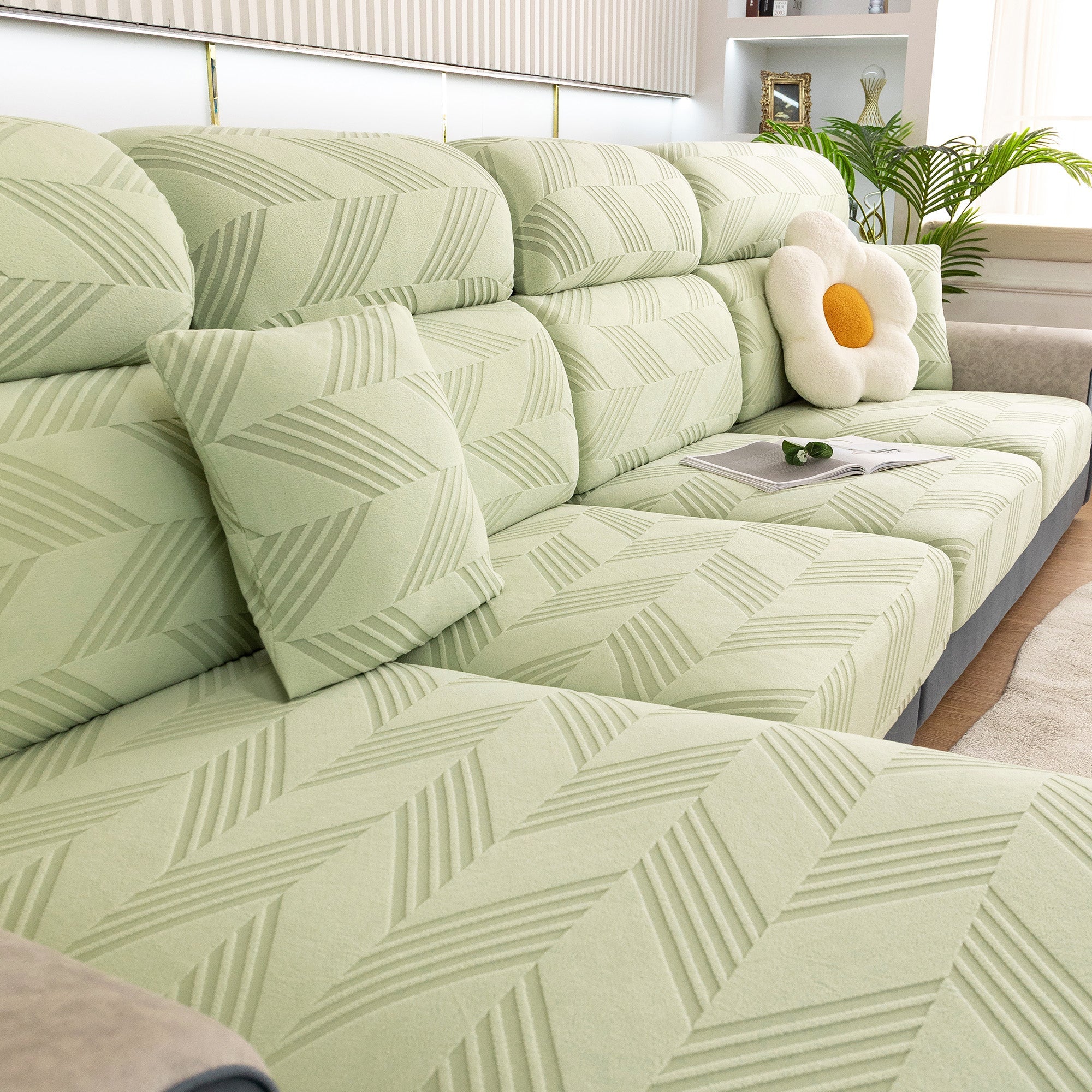 Skydda din soffa bekvämt och elegant med vårt helt nya ChevronEase Jacquard Stretch-sofföverdrag – tillverkat med hantverksskicklighet, designat för verkliga livet. Oavsett om dina husdjur hoppar, slappar eller klöser, ger detta heltäckande överdrag enkelt skydd med en förfinad estetik.