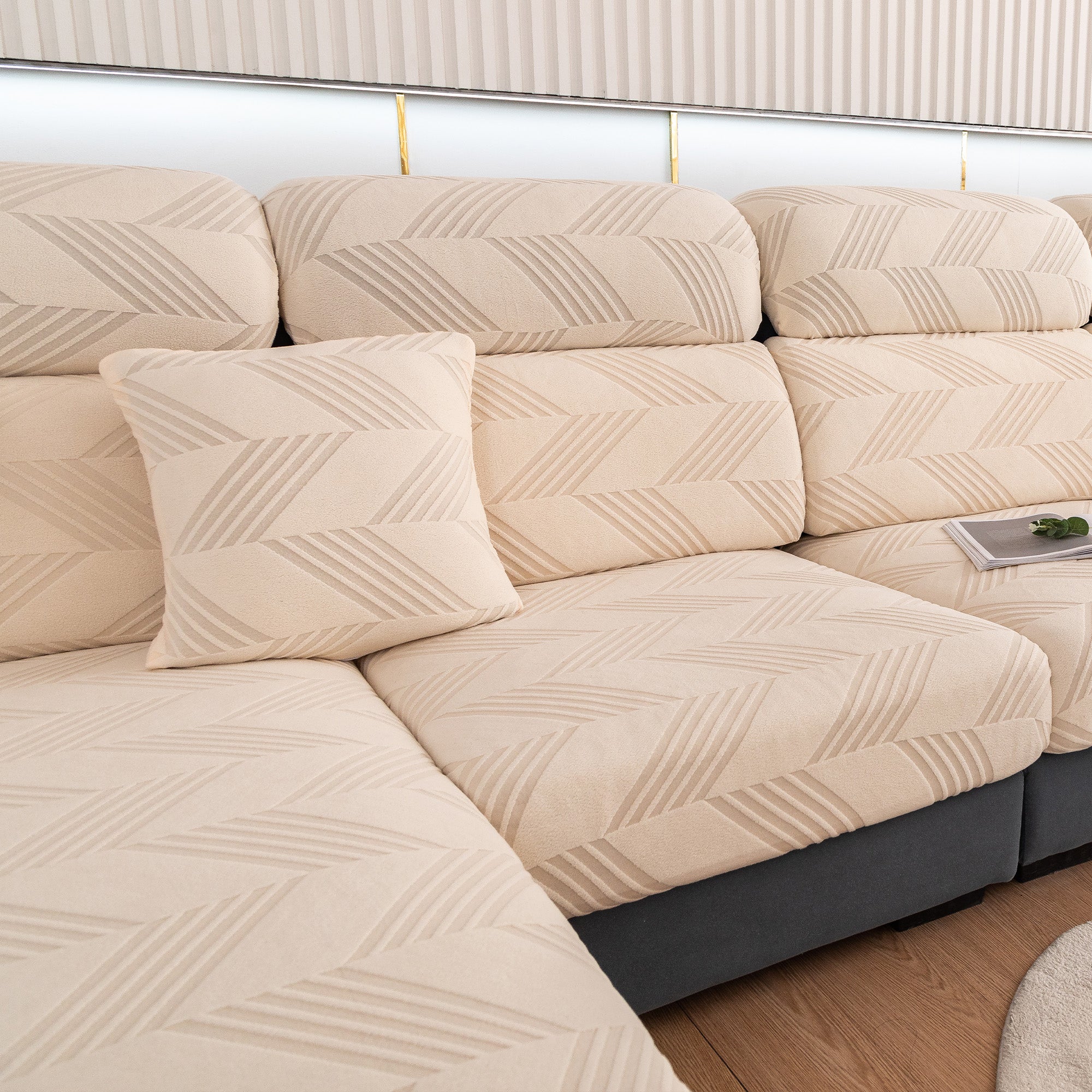 ChevronEase Jacquard Stretch Sofföverdrag – Reptåligt, Heltäckande Husdjursskydd