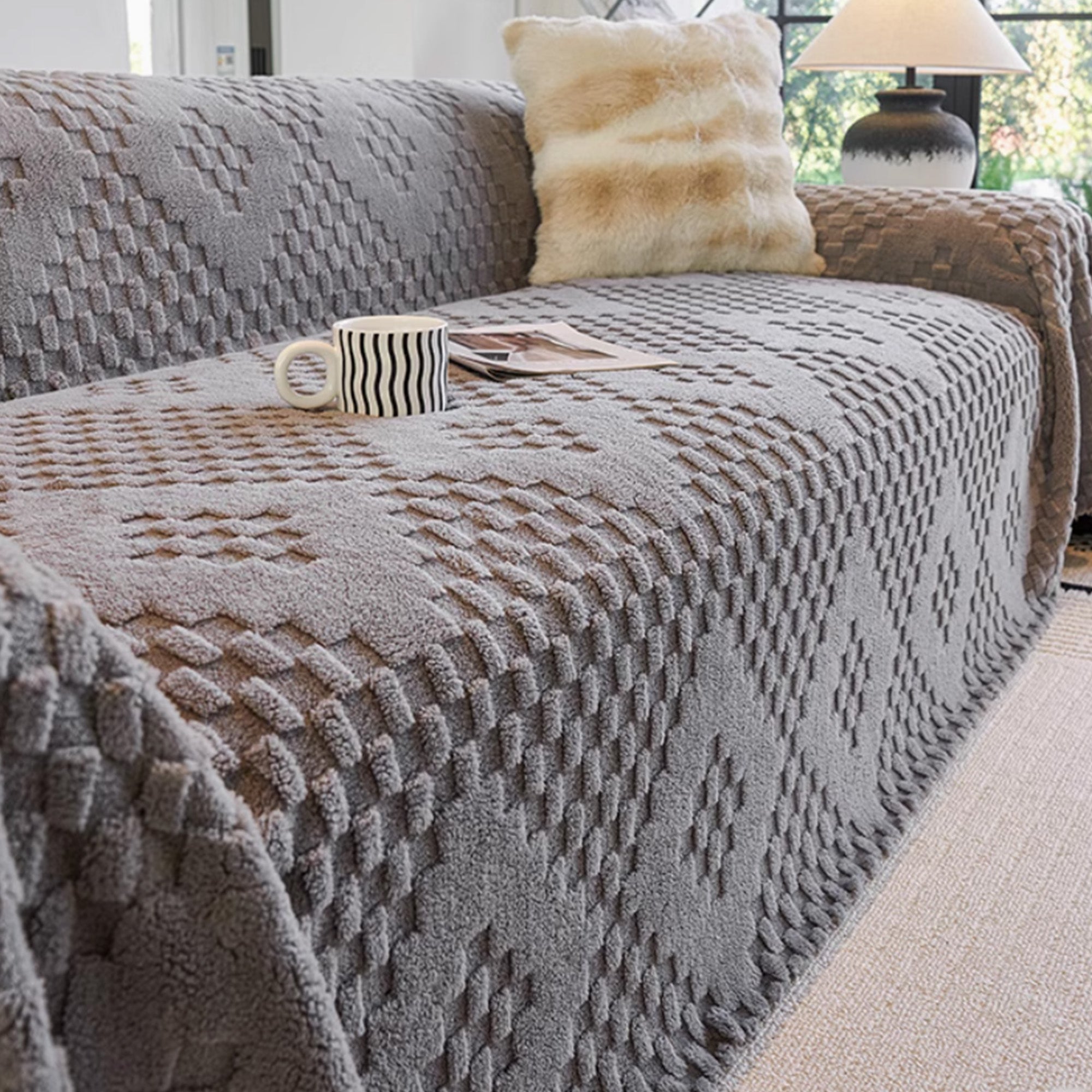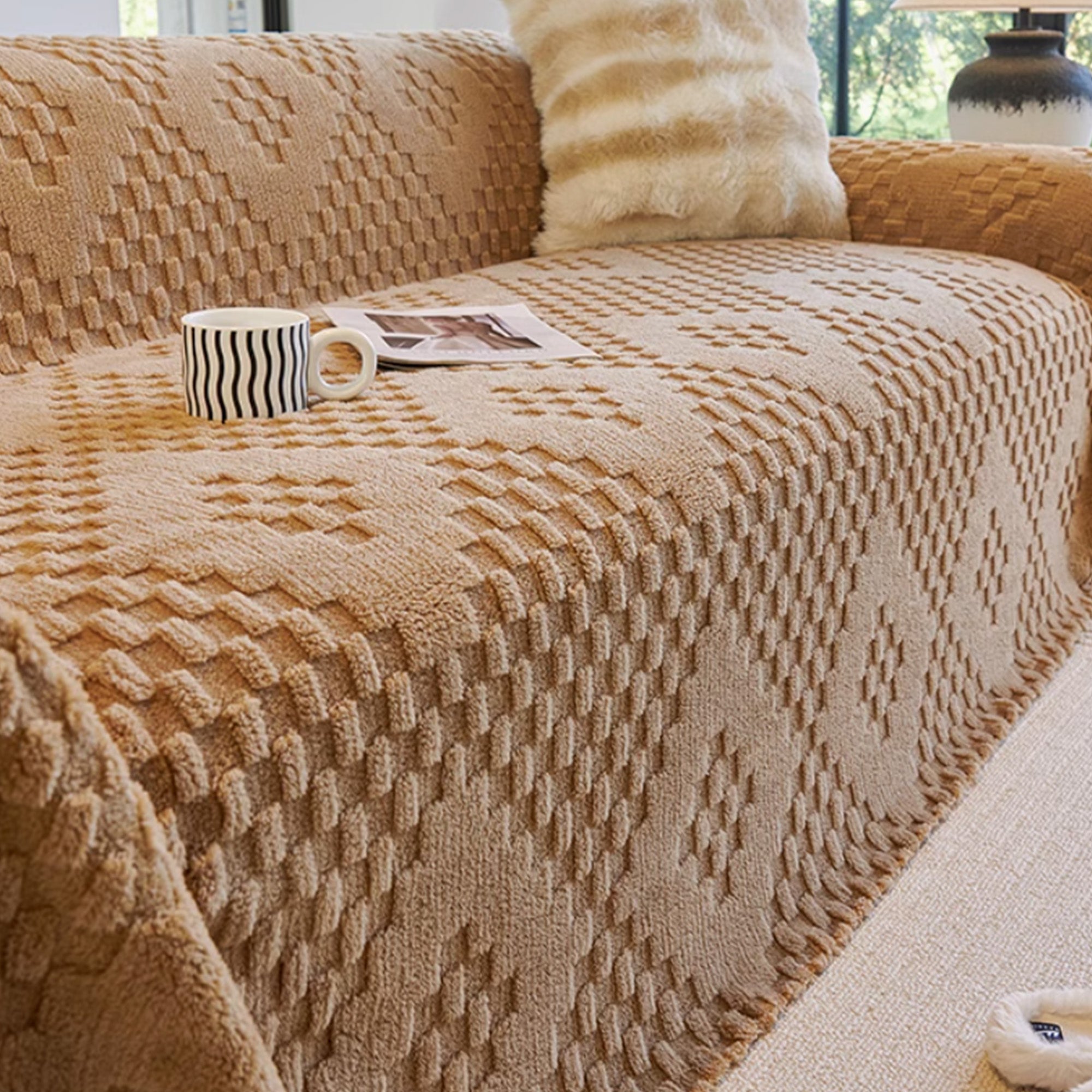 Förhöj ditt vardagsrum med sofföverdraget Cozy Diamond Texture, ett elegant och mysigt tillskott till din inredning. Med ett unikt, upphöjt diamantmönster ger detta överdrag visuellt intresse och en plyschig känsla till din sittgrupp. Tillverkat i en varm, neutral ton smälter det enkelt in i olika inredningsstilar samtidigt som det ger ett lager av skydd till din soffa.