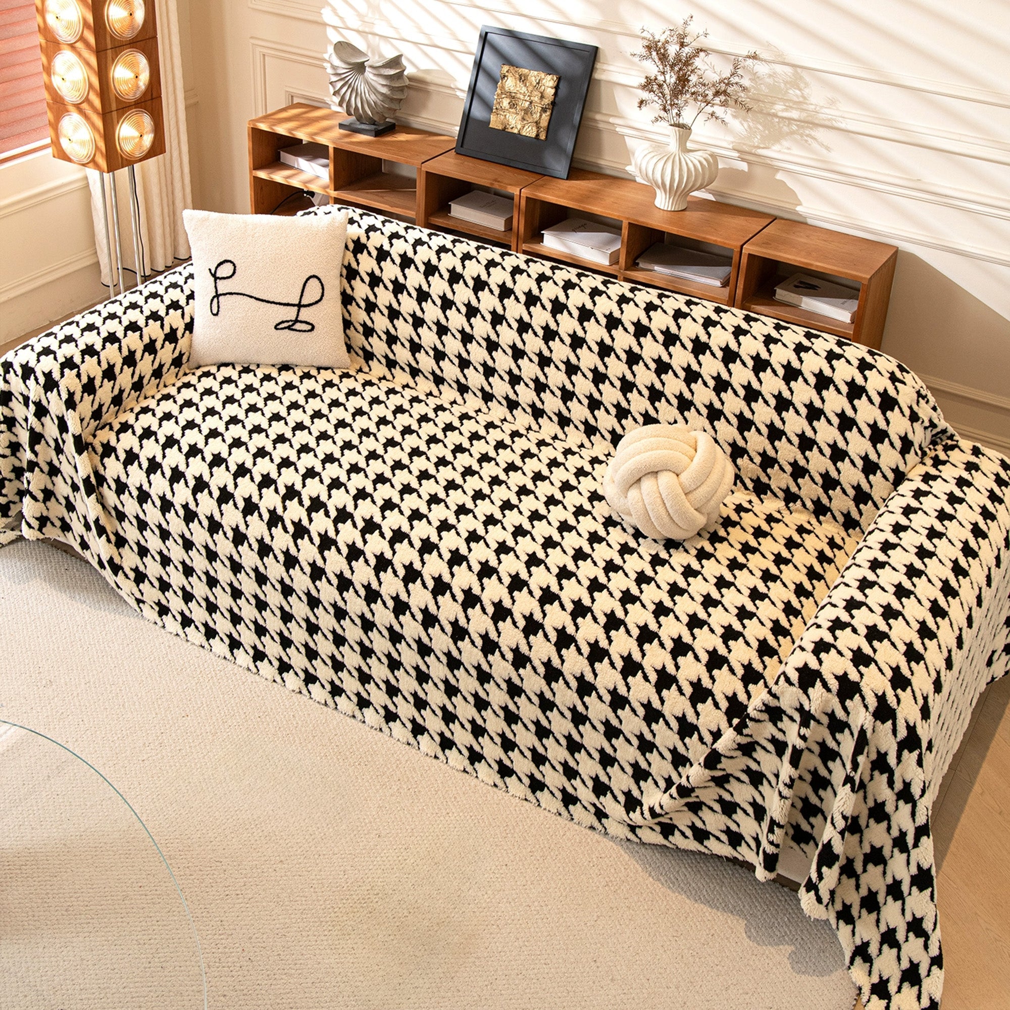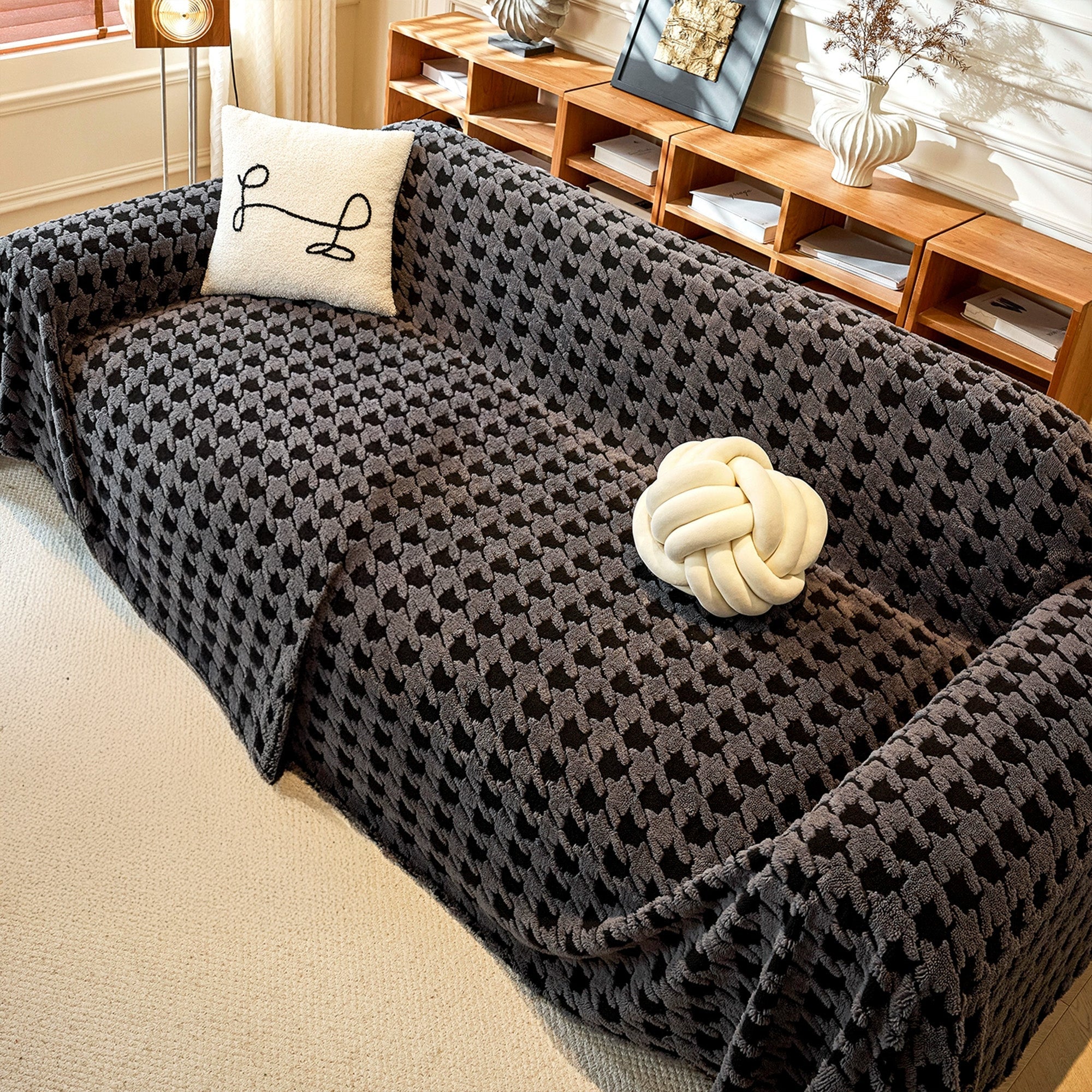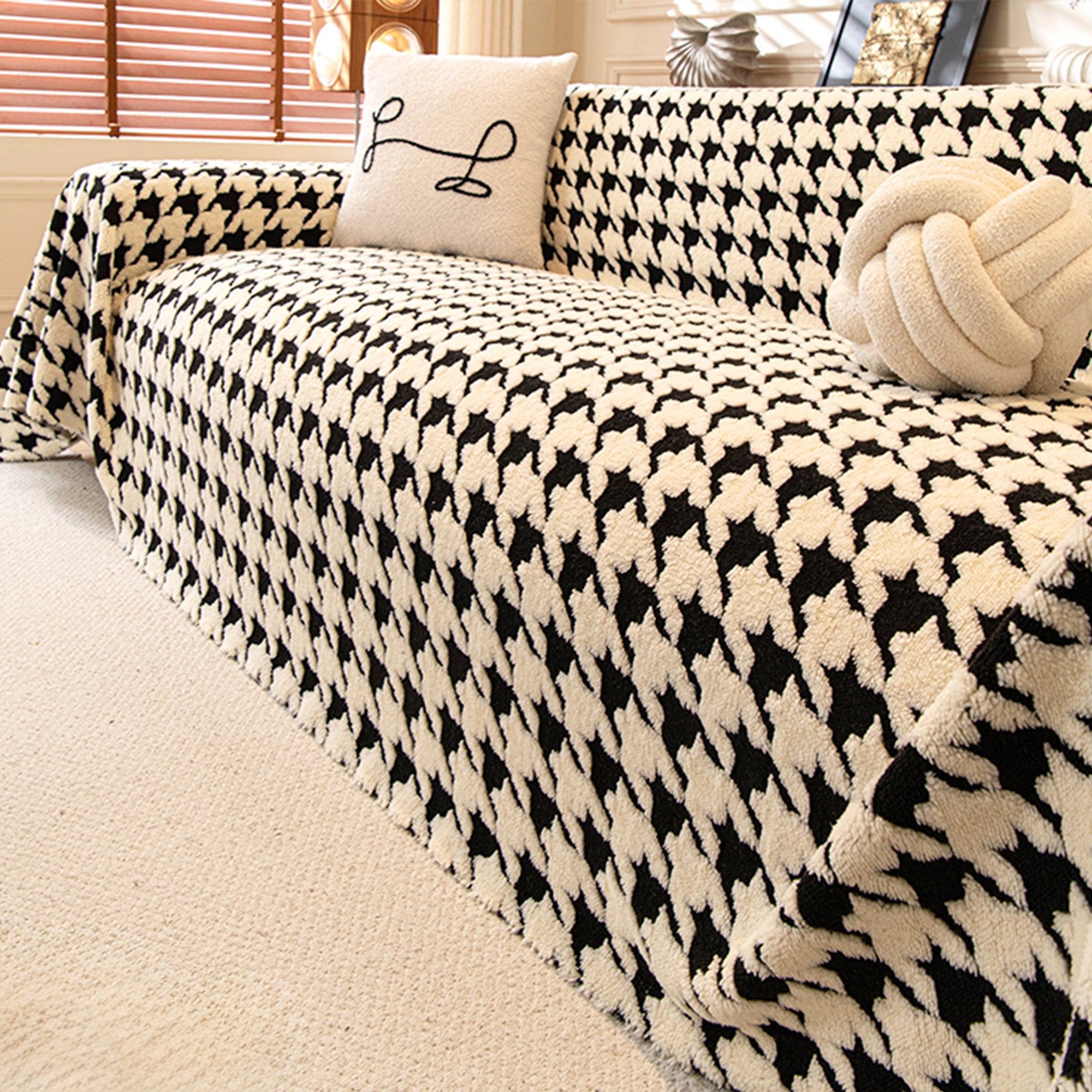 Mysigt hundtandsmönster sofföverdrag i plysch
