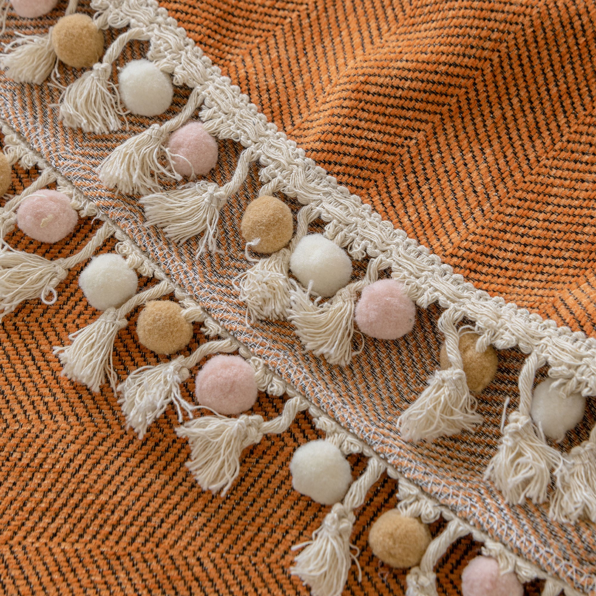 Ge ditt utrymme en touch av bohemisk charm med vårt husdjursvänliga sofföverdrag med fiskbensmönster och tofsar längs kanterna. Detta överdrag är designat med ett subtilt fiskbensmönster och prydt med lekfulla tofsar längs kanterna, vilket ger textur och personlighet till vilket rum som helst. Tillverkat av ett slitstarkt, husdjursvänligt tyg, lyfter det inte bara din inredning utan skyddar även din soffa från vardagligt slitage, inklusive husdjurspäls och klor.
