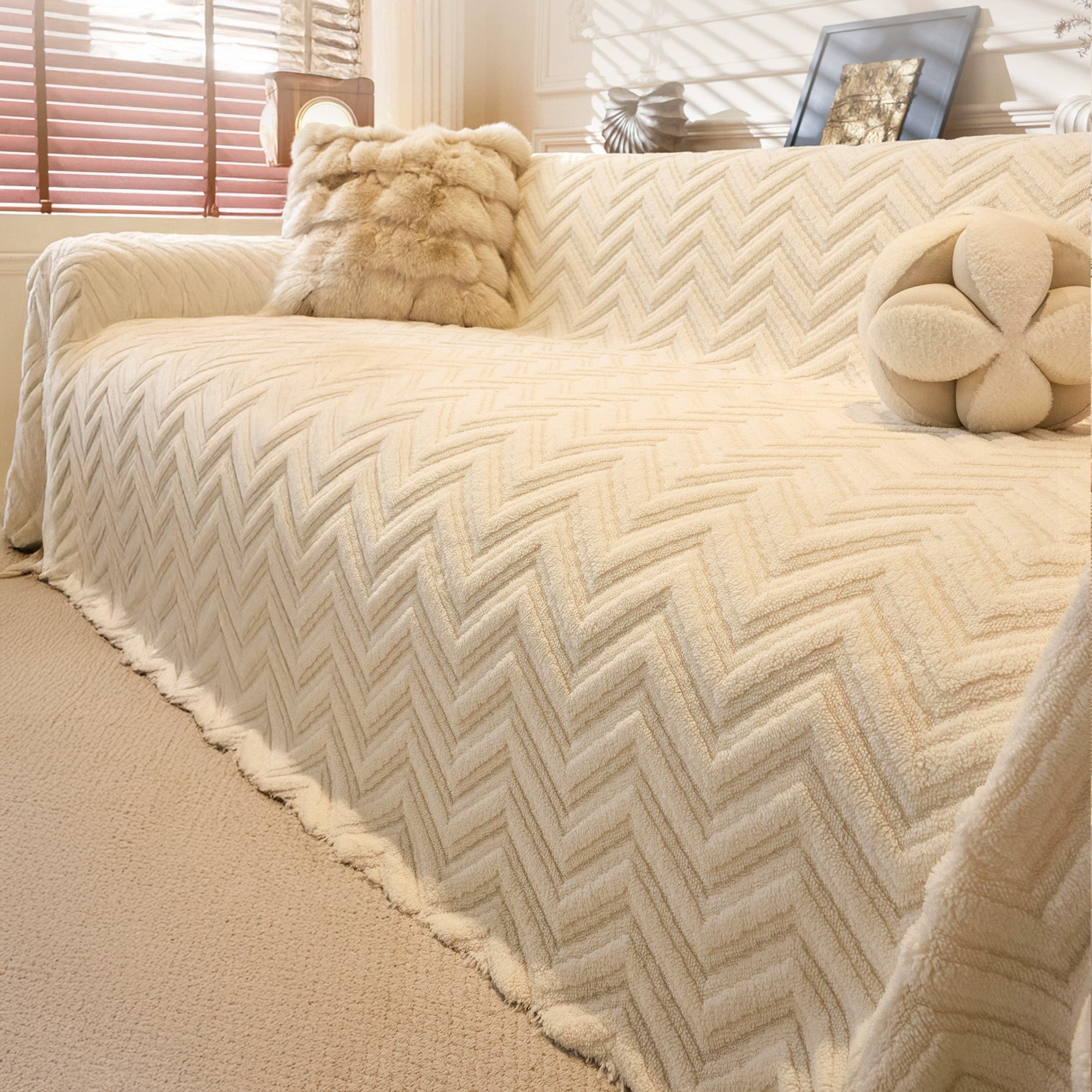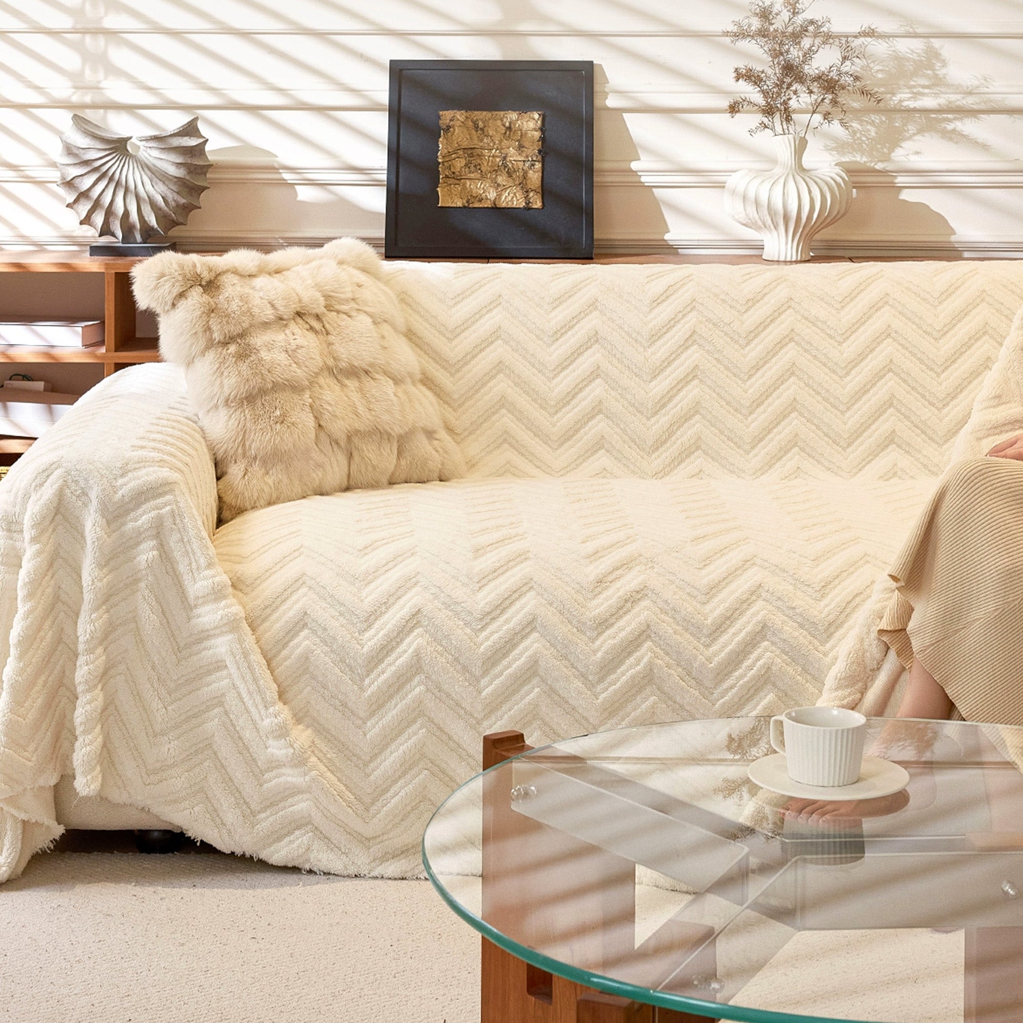 Halkfritt sofföverdrag i plyschig fiskbensmönster