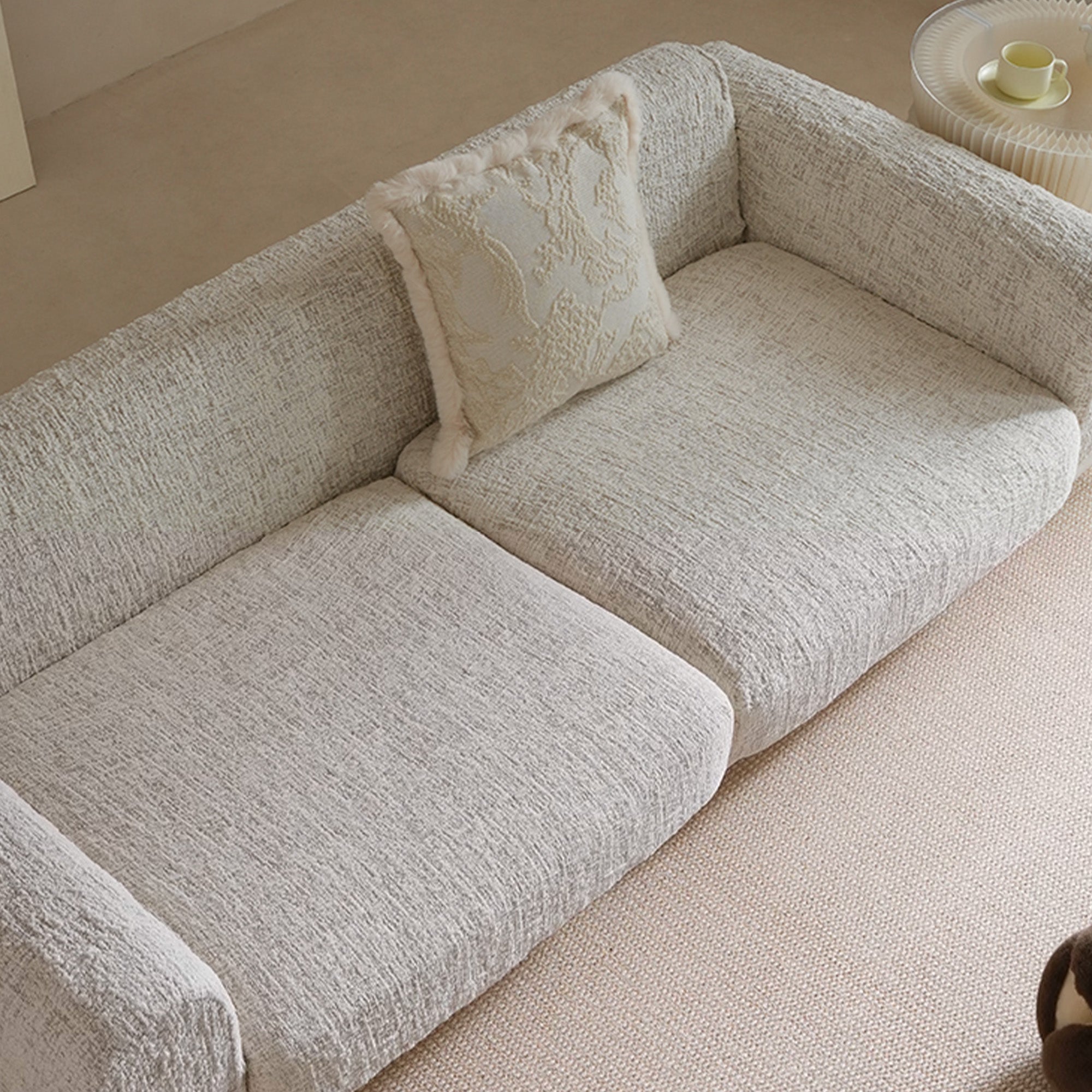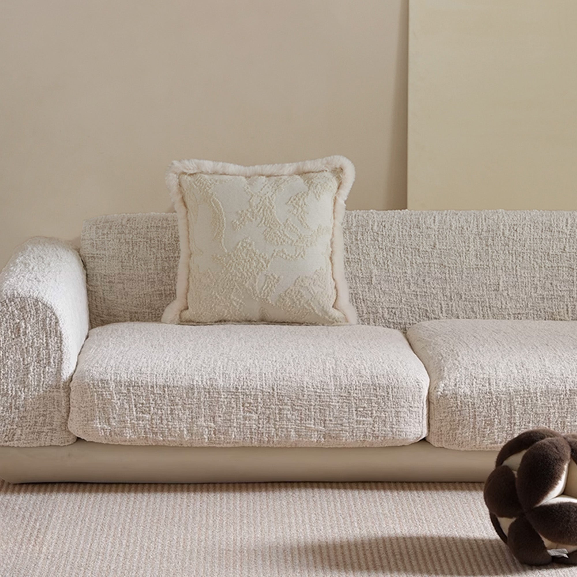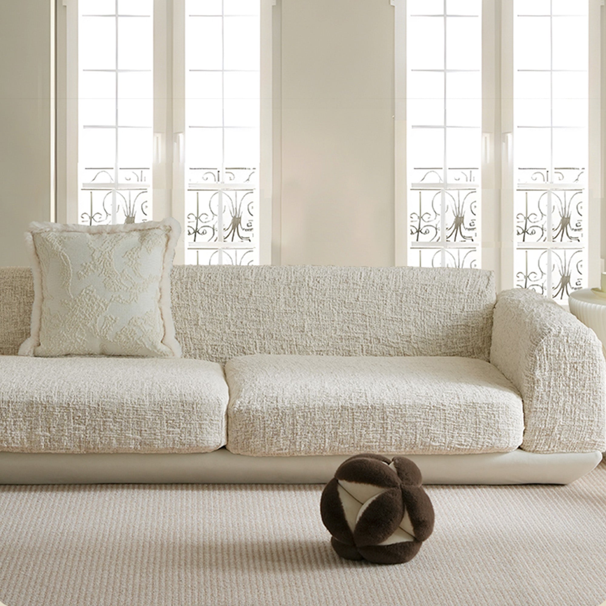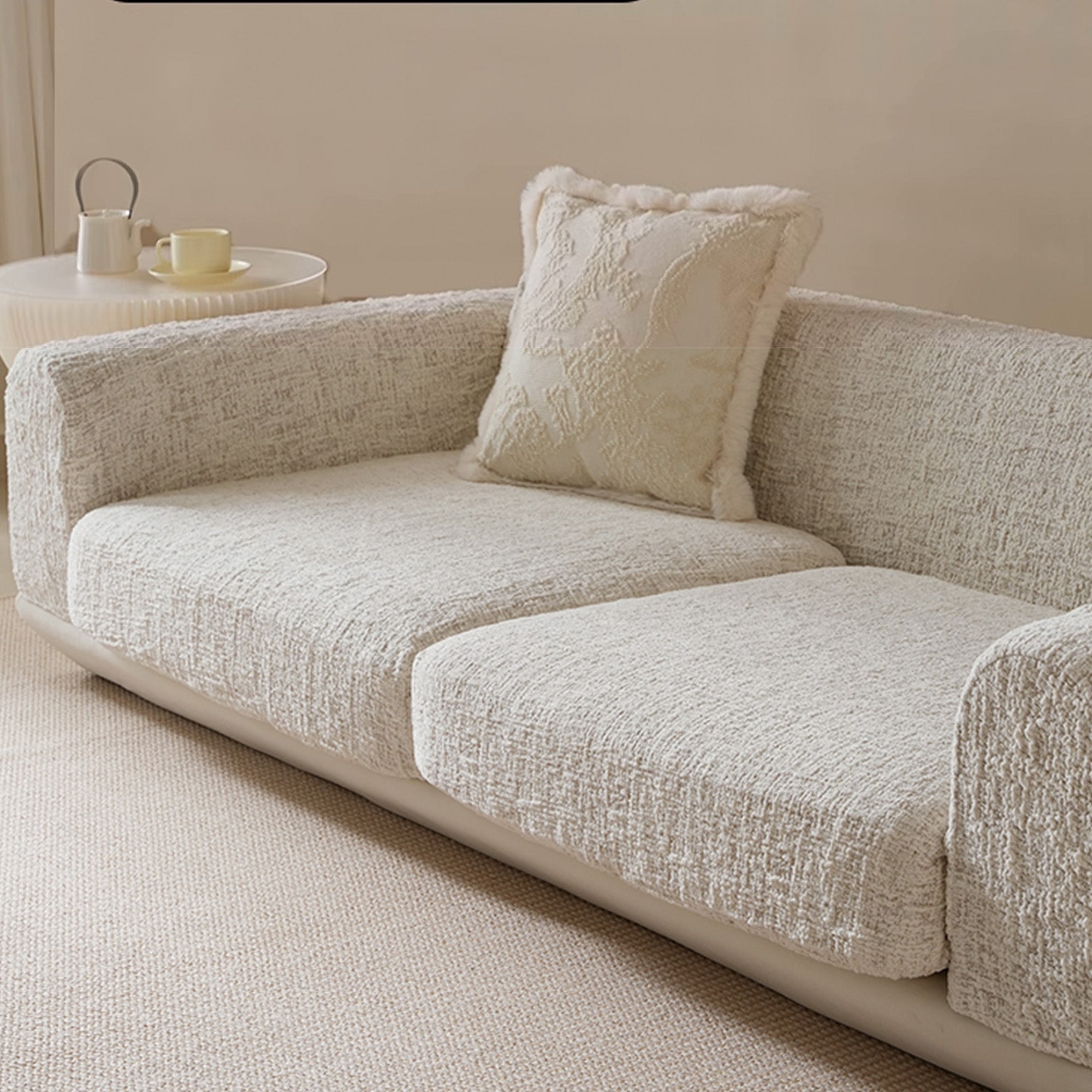 Förhöj din bostadsyta med vårt lyxiga skulpterade stretchsofföverdrag i elfenbensväv. Detta högdensitetsjacquardöverdrag är tillverkat för både skönhet och motståndskraft och omsluter hela soffan med lyxig mjukhet, tät textur och oöverträffat grepp. Oavsett om du slappar, hoppar eller bor med energiska husdjur, sitter överdraget felfritt på plats – inga halkar, inget krångel.