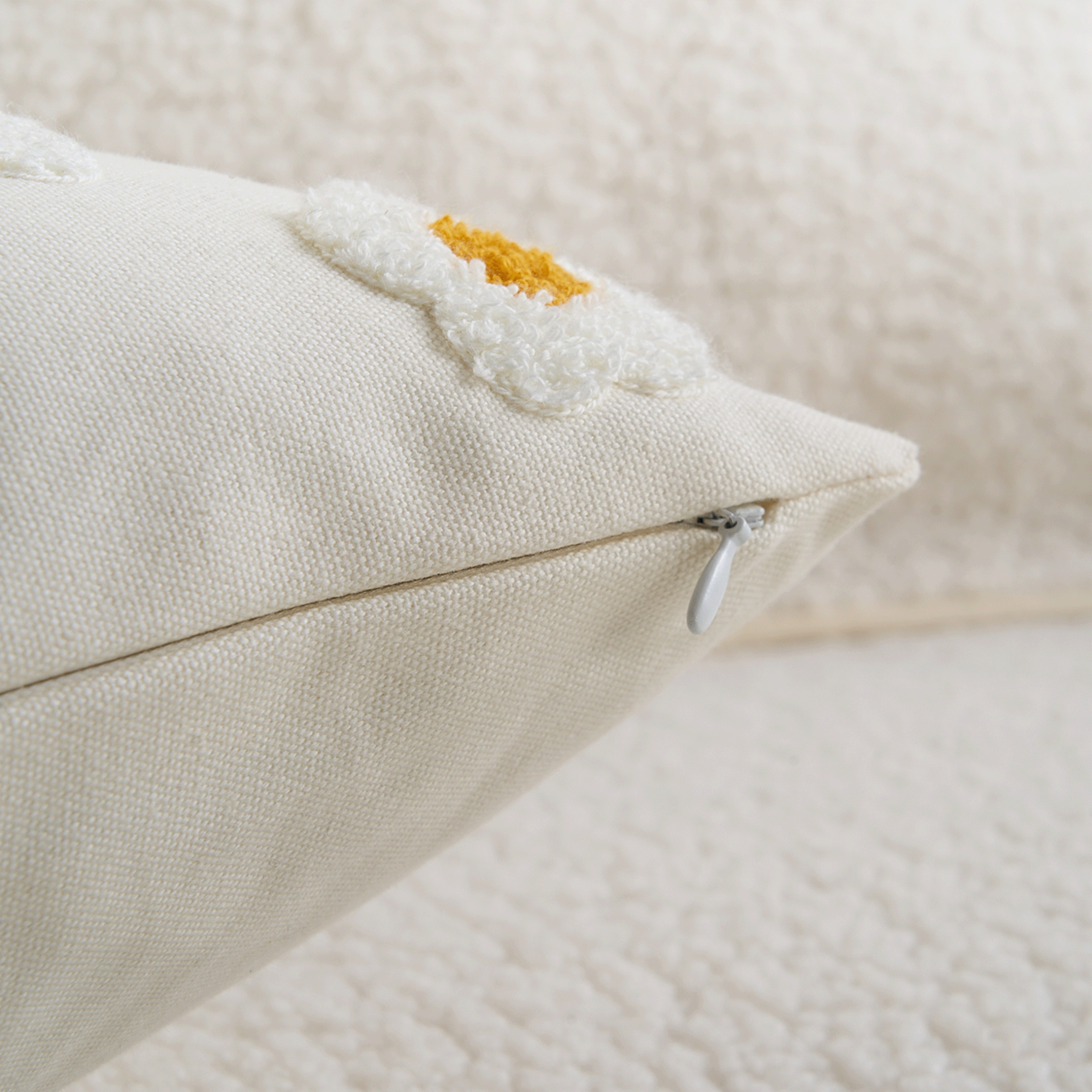 Kliv in i en äng av lugn med Daisy Dreams soffkudden, där varje mysstund känns som att slappa i ett blomsterfält. Denna prydnadskudde går utöver bara dekoration; den är ett taktilt äventyr, utformad för att lugna med sin mjuka omfamning och texturerade glädje. Föreställ dig kronblad mot din hud, vilket erbjuder en unik sensorisk upplevelse som även fungerar som en charmig stresslindrare. Dekorerad med livfulla, tredimensionella broderade prästkragar, fyller den vilket utrymme som helst med vårens fräschör. Den är som en bukett av komfort för din soffa och tar med sig ett prästkragefyllt underland direkt in i ditt hem.