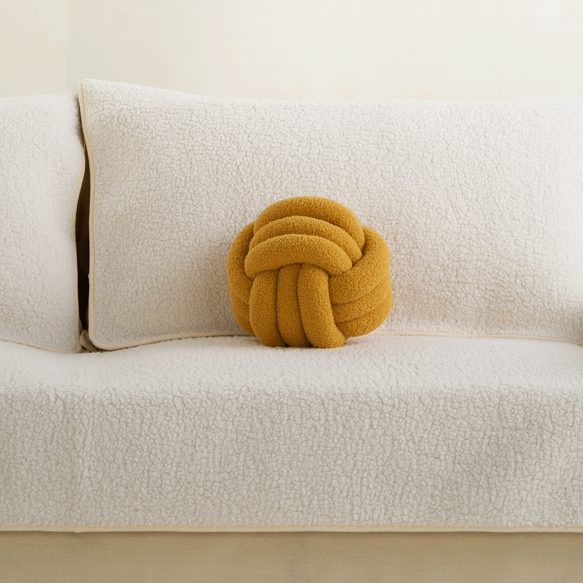 Omfamna den unika charmen hos Knotted Fleece Orb Sofa Pillow, ett snyggt och mysigt tillskott som ger en touch av kreativitet till vilket utrymme som helst. Tillverkad av mysig Berberfleece, det är som att krama ett moln som kramar dig tillbaka under filmkvällar eller tupplurar. Med sin udda knutna boll-look är den här kudden inte bara en kudde; det är ett iögonfallande smycke som säger "Hej, här bor kul!". Det är den ultimata presenten till dina vänner, barn eller till och med din kamera, redo att pigga upp vilken plats som helst från din soffa till din hemliga läshörna med en touch av mysig elegans.